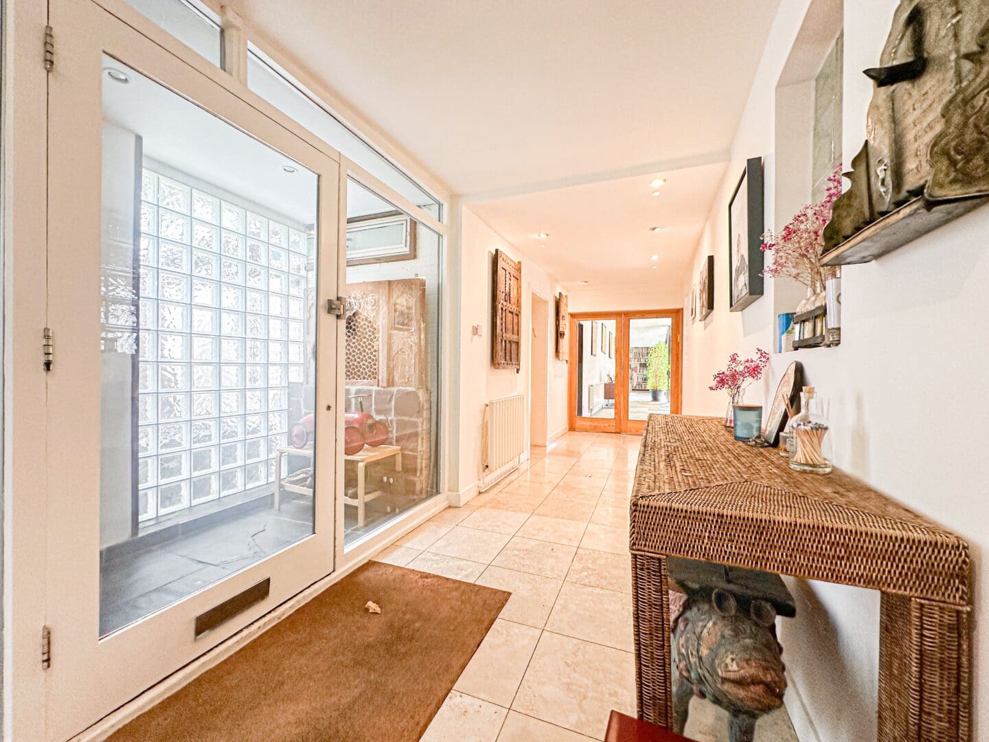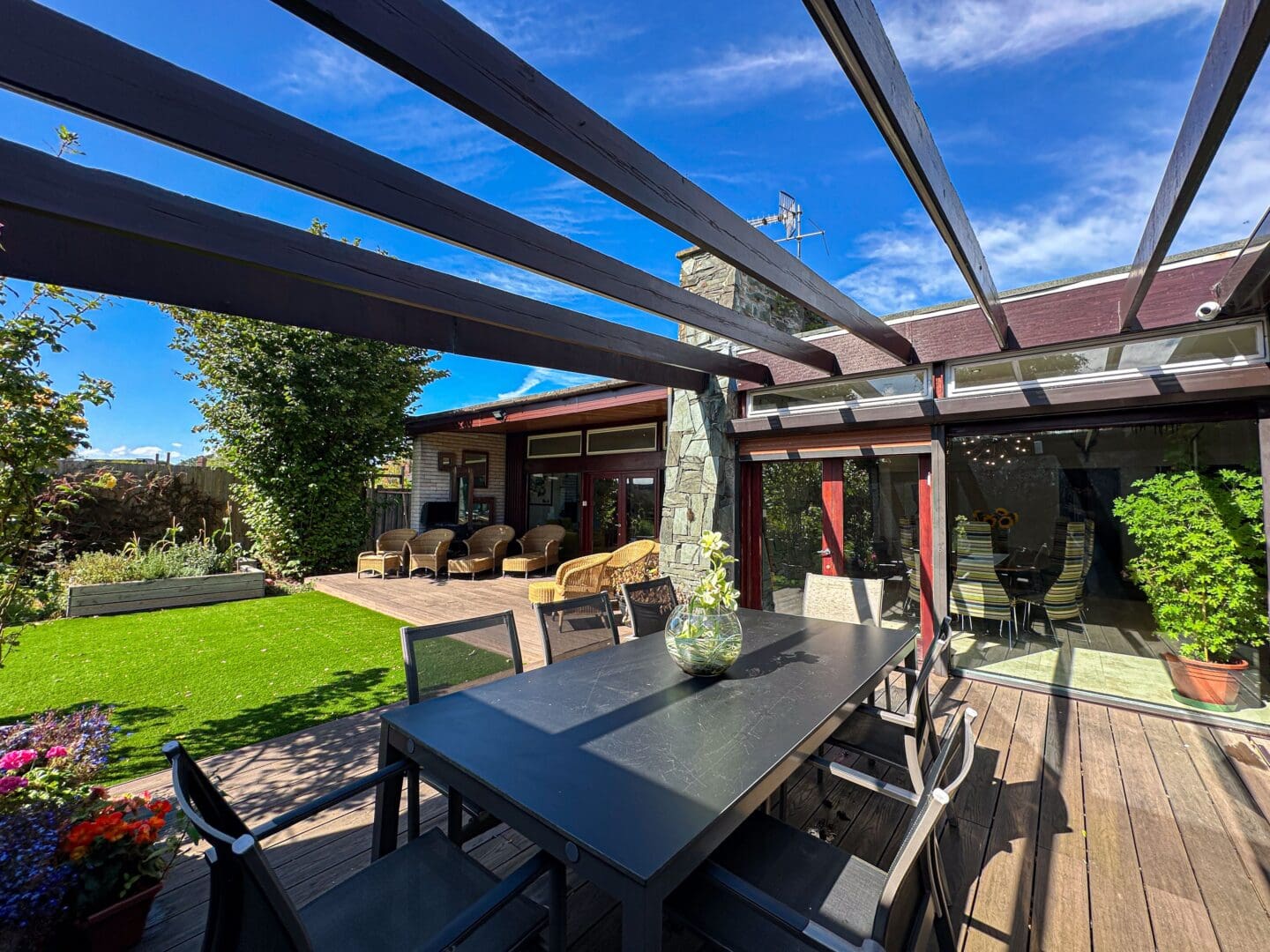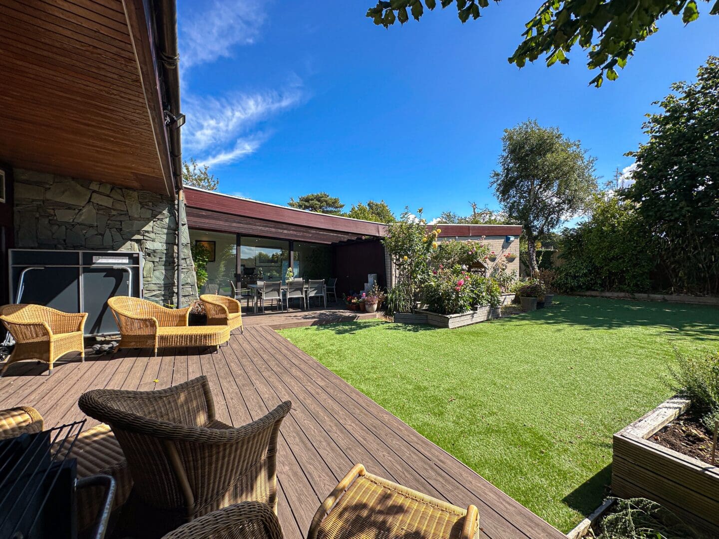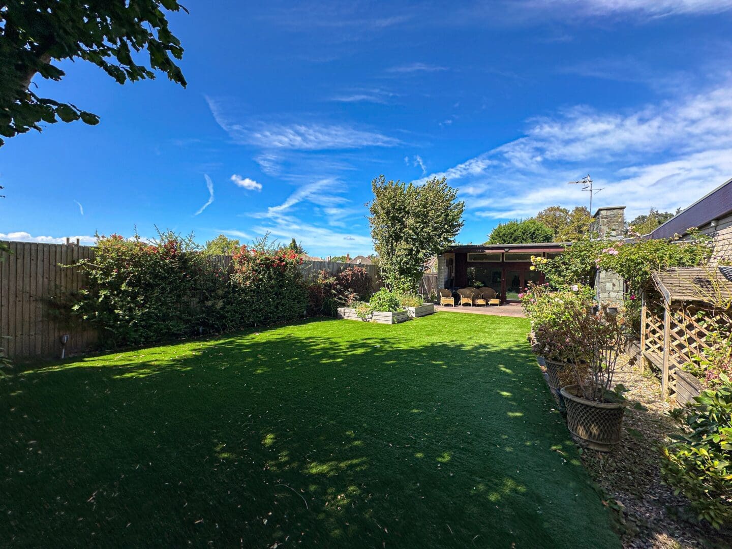 Externally, the property is further enhanced by a substantial south-facing rear garden, providing a charming outdoor oasis which enjoys a sunny aspect throughout the day. Low-maintenance artificial grass offers plenty of room for recreational activities, surrounded by decking areas which present serene spots for al-fresco dining and entertaining. To the front, a driveway provides ample off-road parking, accessed via a sweeping driveway leading up to the property, whilst a double garage offers an abundance of storage space.