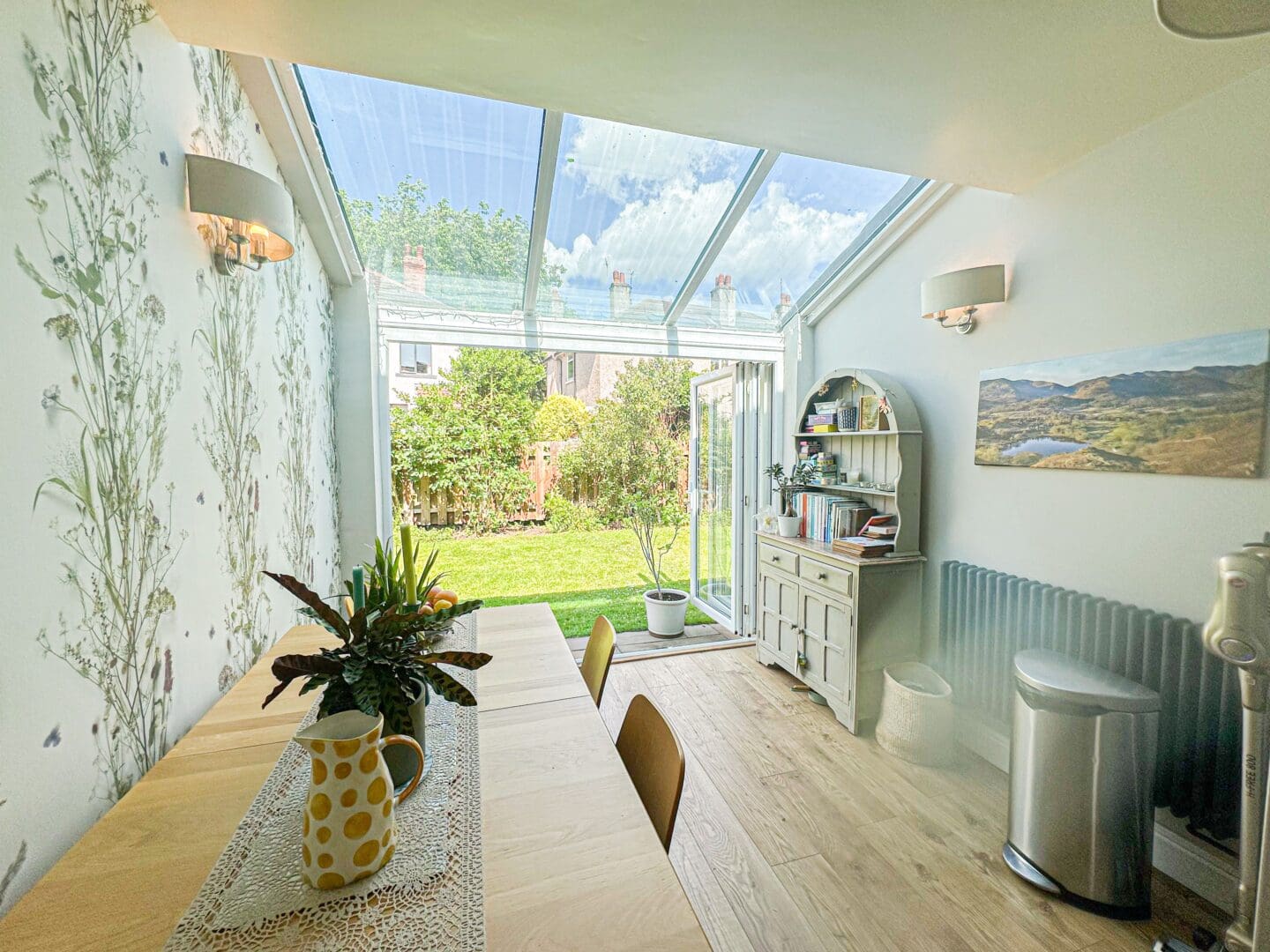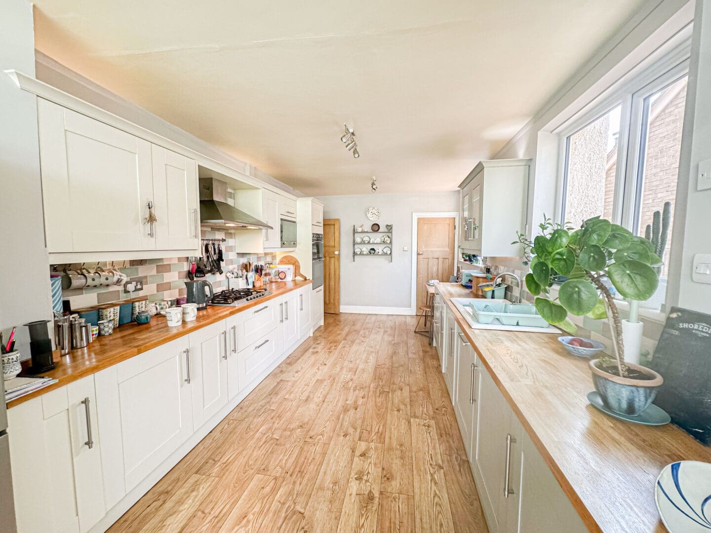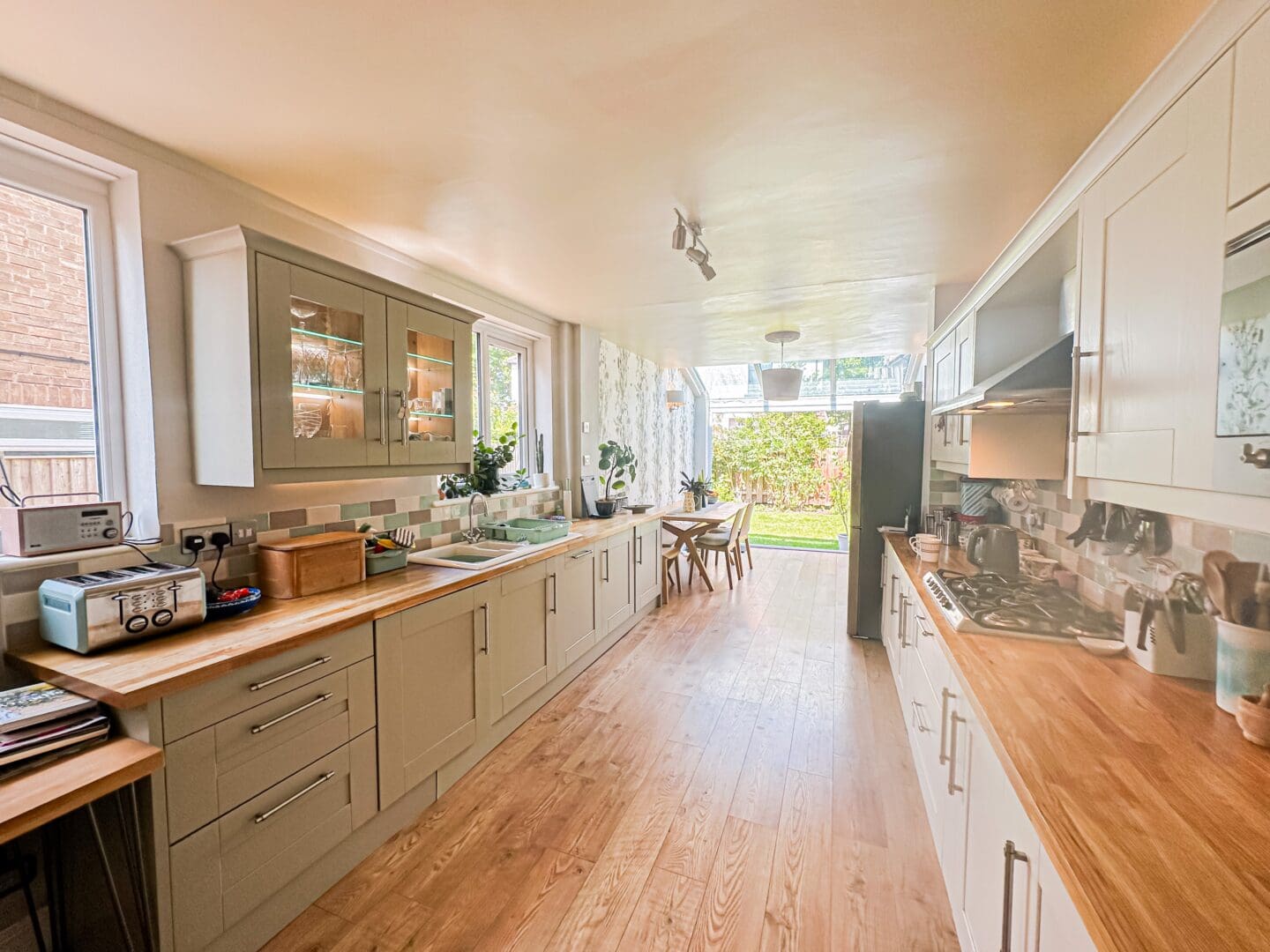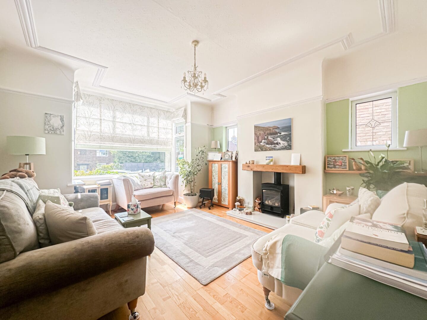 Upon entering, you are greeted by an inviting entrance hall which leads through to a spacious family lounge, flooded with natural light courtesy of a box bay window. Impeccably finished in a tasteful décor which complements the ornate ceiling décor, attractive wood style flooring, and an eye-catching wood burner, this presents a welcoming and elegant space to entertain guests. This is followed by a second substantial reception room, where the beautiful presentation continues, featuring a set of french doors to the rear, offering a tranquil setting to relax and unwind where views of the garden can be enjoyed. Concluding the ground floor is an extended kitchen diner complete with a range of stylish fitted base and wall units, complementary worktops providing plentiful surface space, and a selection of integrated appliances. With ample room to accommodate a dining table to the rear of the space where a set of bi-fold doors provide seamless access out to the garden, and skylights above illuminate the room in daylight, this provides a delightful social setting for cooking in company and enjoying family mealtimes.