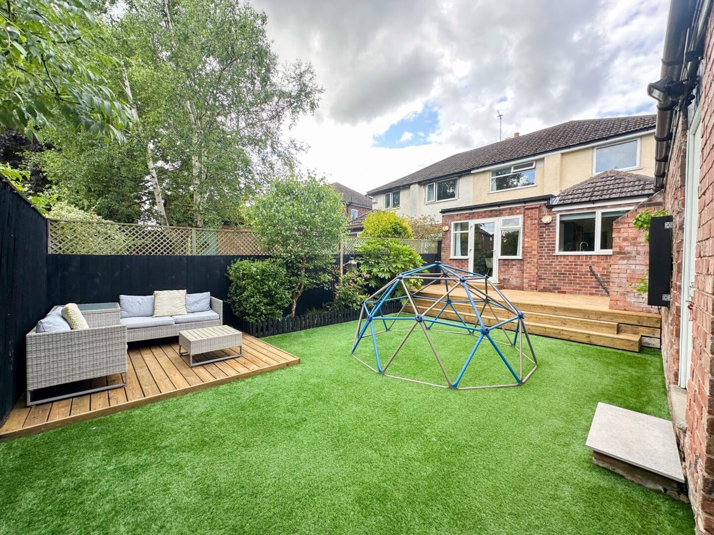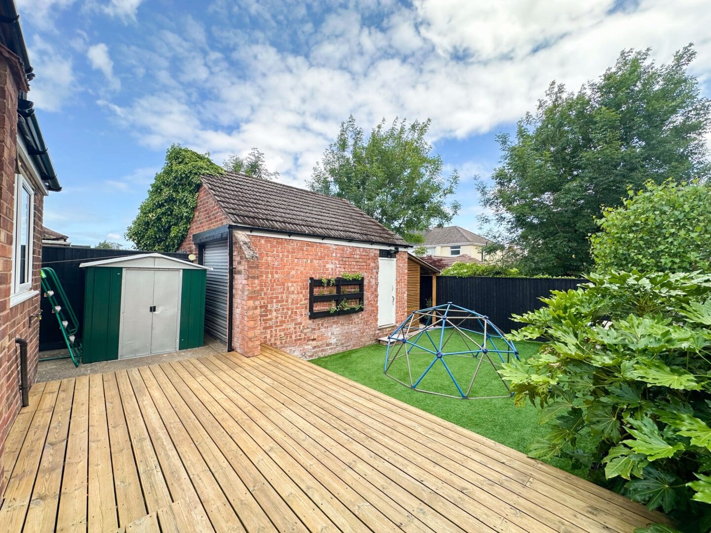 Externally, the property further benefits from a sizable rear garden made up of a low maintenance artificial lawn, raised decking and a covered barbecue area, presenting a charming space for enjoying al-fresco dining and entertaining.