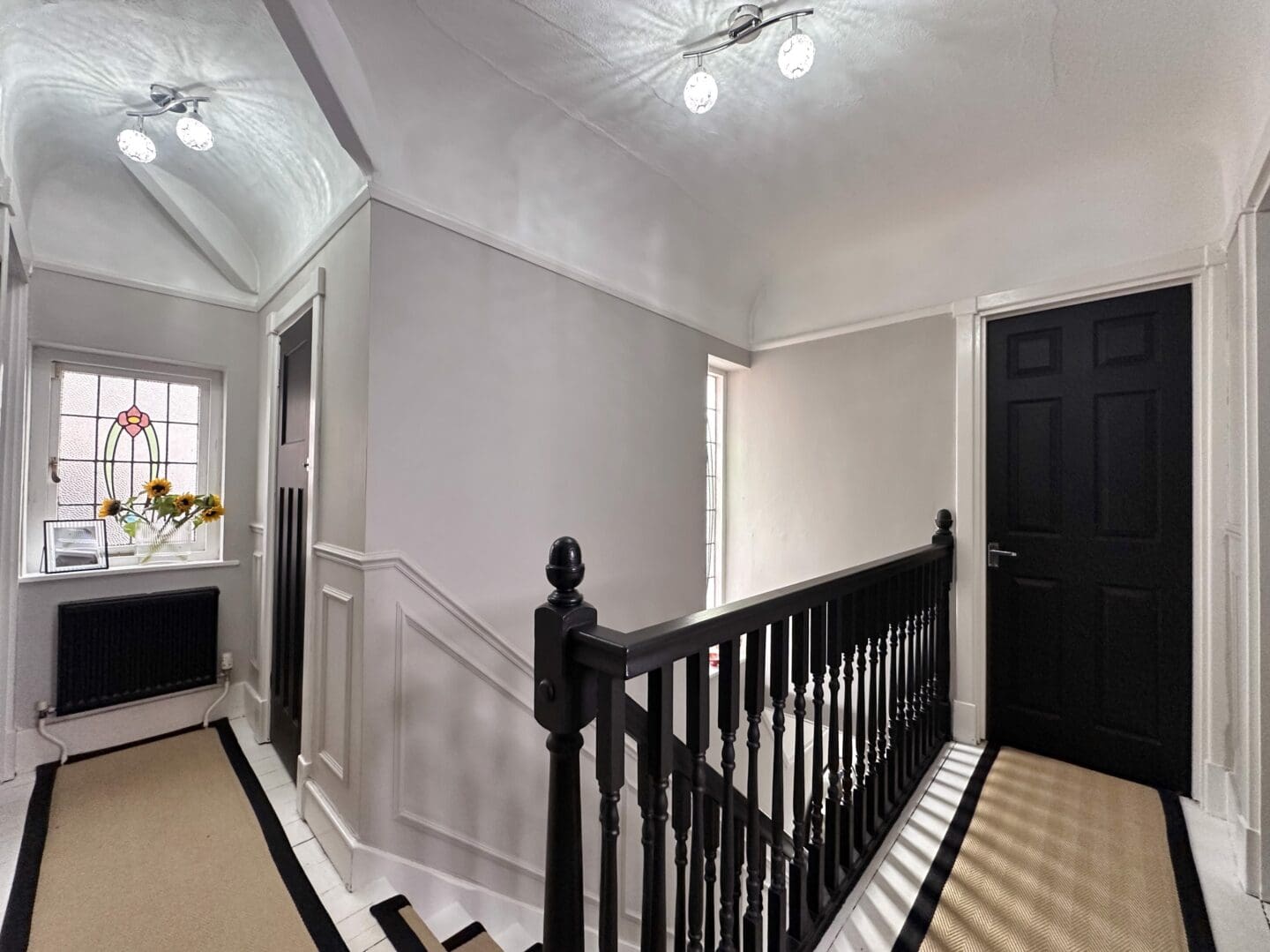 Upstairs, the master bedroom benefits from sliding mirrored wardrobes, while the second double bedroom also offers fitted wardrobes. The third bedroom is ideal as a child’s room or home office, and the modern bathroom features both a shower cubicle and bath, with a separate W.C.