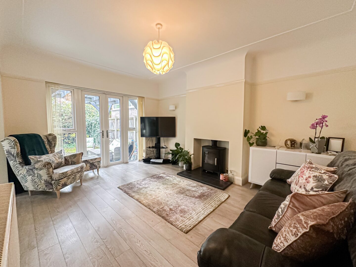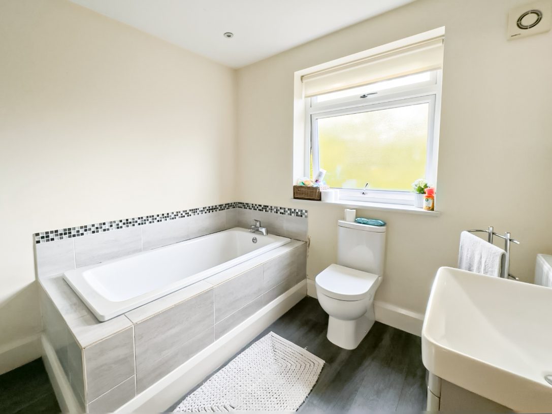 Externally, the property is further enhanced by a delightful rear garden, consisting of a neatly maintained lawn and smartly flagged patio area presenting an idyllic spot for enjoying al-fresco dining and entertaining. To the front, a substantial driveway provides ample off-road parking.