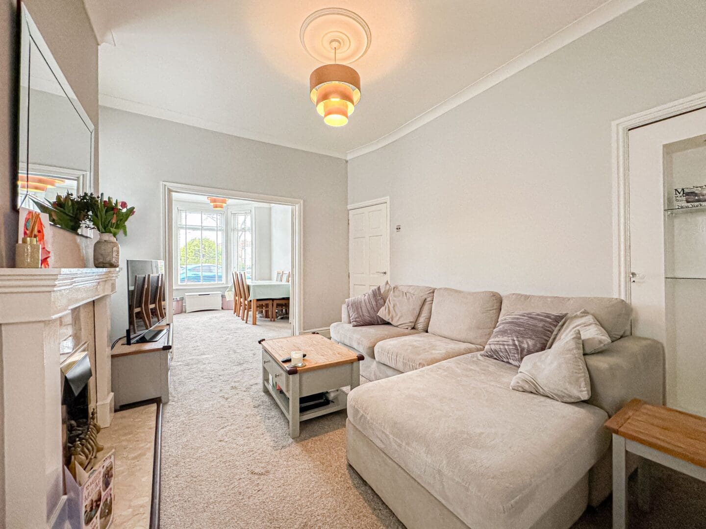 Following through the inviting entrance hall you are led into the first of two spacious reception rooms, each enjoying a tasteful décor and plush carpeting, providing welcoming and stylish spaces to relax and entertain guests. The front lounge boasts a bay window which floods the room with natural light, whilst the rear sitting room showcases a feature fireplace. Following this is a sizable kitchen complete with a range of fitted base and wall units and plentiful surface space, along with a sunroom to the side which provides access into the garden, and completing the ground floor is a four-piece family bathroom suite.