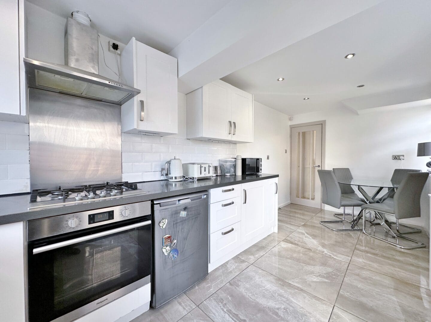 The accommodation briefly comprises a welcoming hallway leading to a front lounge featuring a striking fireplace, and a rear reception room with patio doors opening onto the delightful rear garden. The well fitted kitchen diner provides a practical and inviting space for family meals and entertaining. To the first floor, there are three sizeable bedrooms, three piece family bathroom and a separate shower room, providing ample space for a growing family or guests. The aforementioned garden is mainly laid to lawn, complemented by a patio area that is ideal for relaxing outdoors or entertaining friends and family. With its thoughtful design and exceptional presentation, this property offers a wonderful opportunity to acquire a home ready to move into.