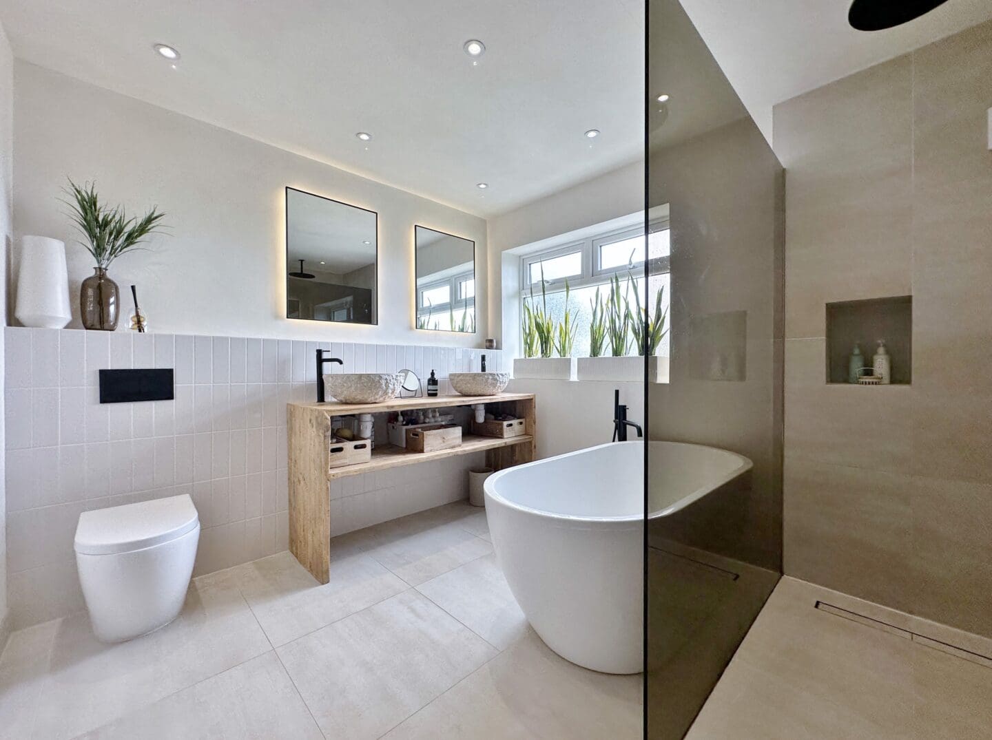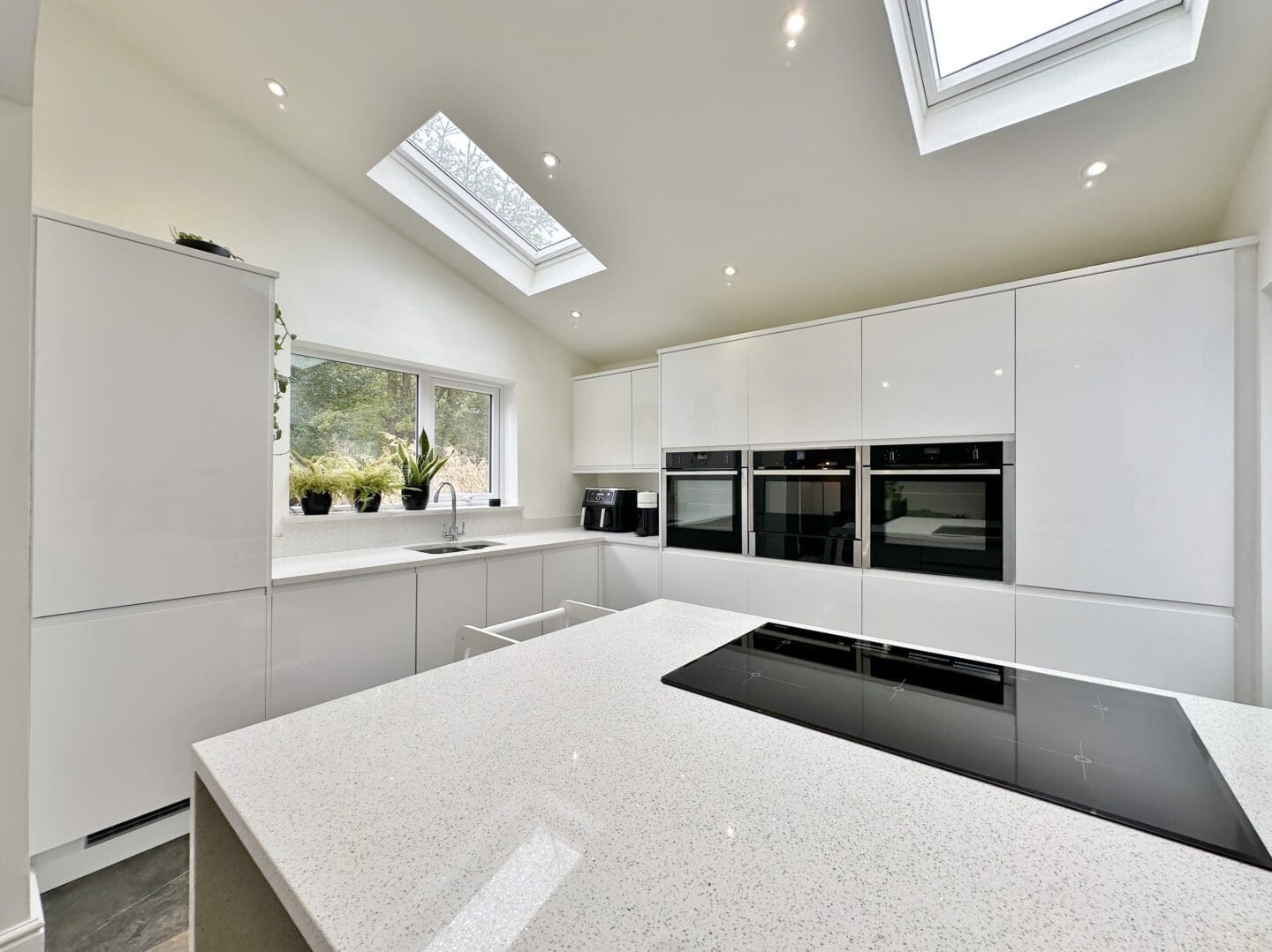 Stepping inside, you are welcomed by an inviting hallway that sets the tone for the rest of the home. To the front, a spacious reception room provides the perfect retreat, while the rear opens into a stunning lounge flowing into a bright sitting area. Here, patio doors frame delightful views of the garden, inviting natural light to flood the space. At the very heart of the property lies the showpiece open plan kitchen and dining area, complete with a bespoke fitted kitchen, central island, and high specification integrated appliances. The dining area also benefits from direct garden access via a second set of patio doors, making this the perfect hub for family life and entertaining. A practical utility room adds further convenience. The first floor continues to impress, offering four generously proportioned double bedrooms, each thoughtfully designed to provide comfort and style. The centrepiece of the upper floor is the luxurious bathroom suite, featuring a walk in shower, freestanding bath, and elegant his and hers sinks. The property also has a newly fitted top of the range Worcester boiler.