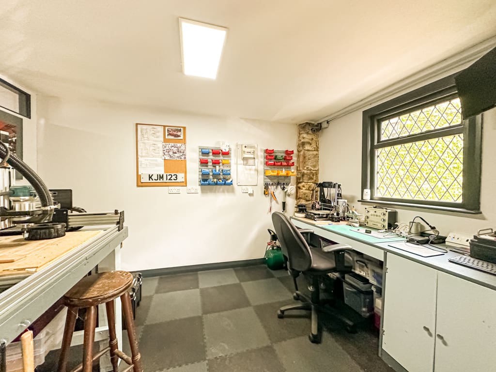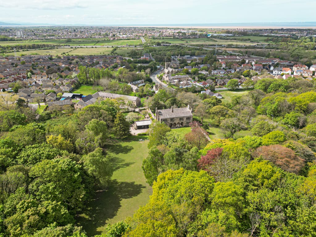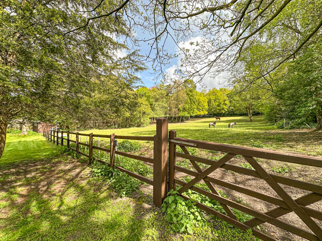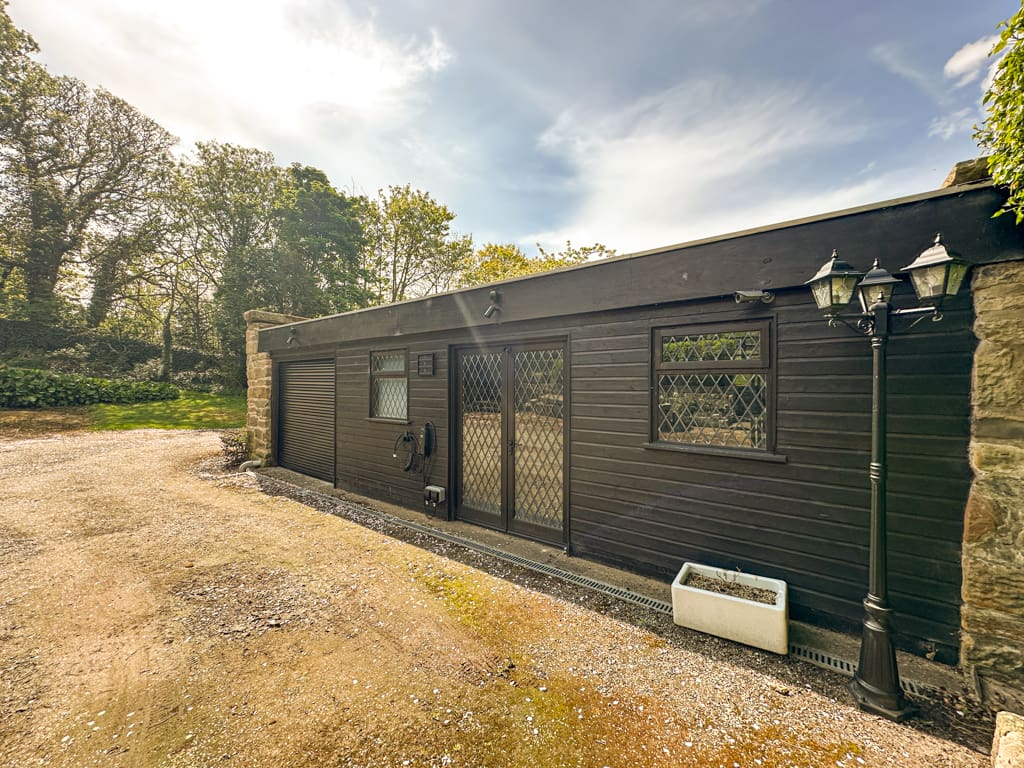 Nestled on an expansive plot spanning approximately 2 acres of grounds including paddock, with an elevated position enjoying superb views across Wirral towards the Dee Estuary and Welsh Hills. Double gates open to a sweeping driveway which leads to the attractive property frontage with ample off road parking, turning area and original stone well. Stone steps lead down to a stone built detached building currently arranged as a single garage, workshop, office and gym.