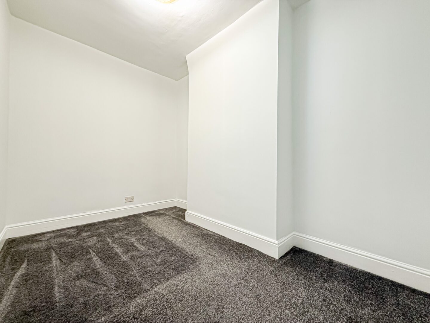 To the first floor, the property boasts two generous bedrooms. The main bedroom spans the full width of the home, offering excellent space for furnishings, while the second bedroom is ideal as a guest room, home office, or child’s bedroom. Completing the accommodation is a well-proportioned bathroom positioned to the rear of the property.