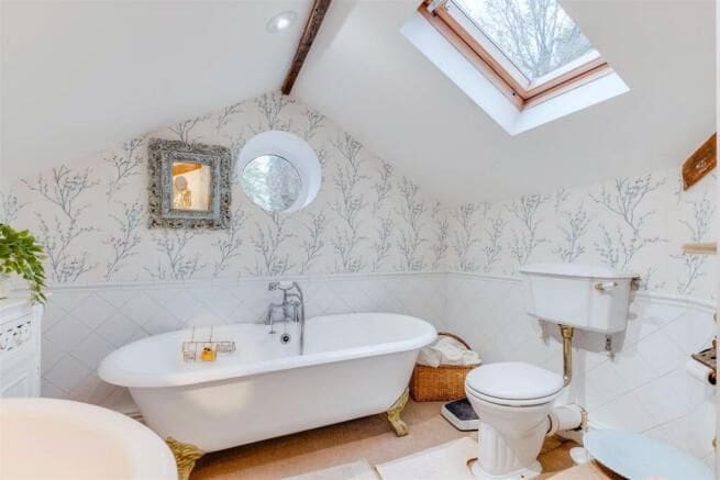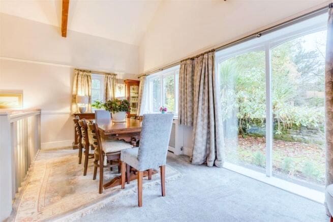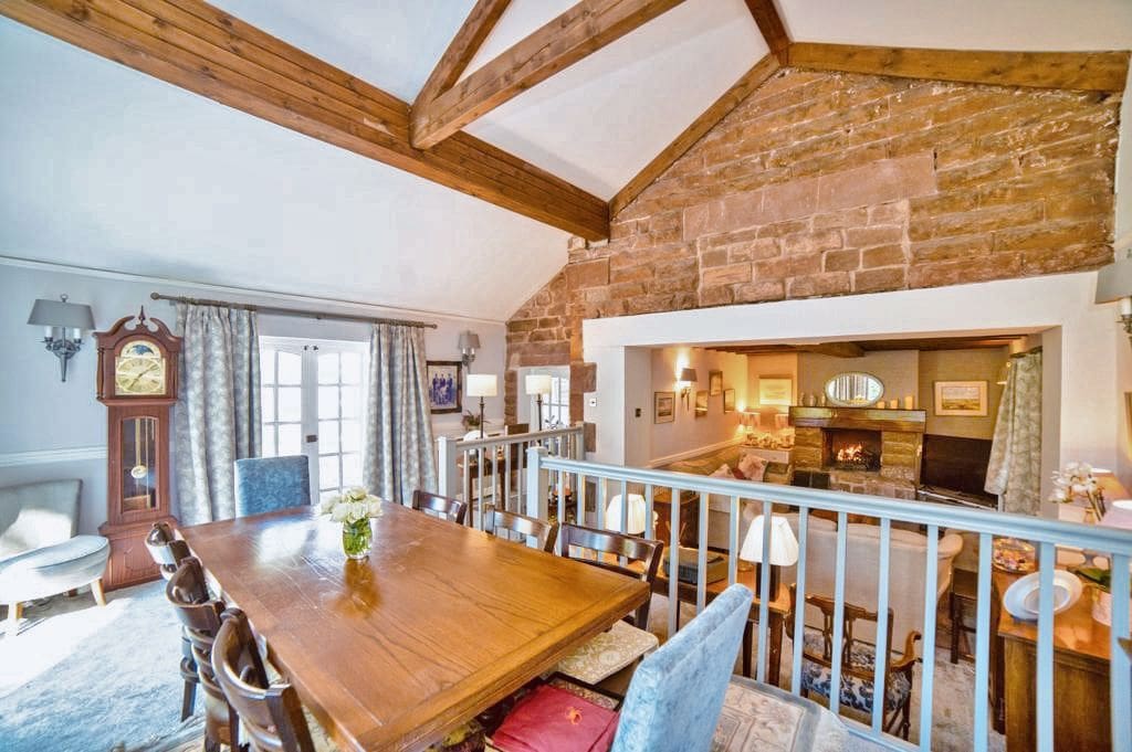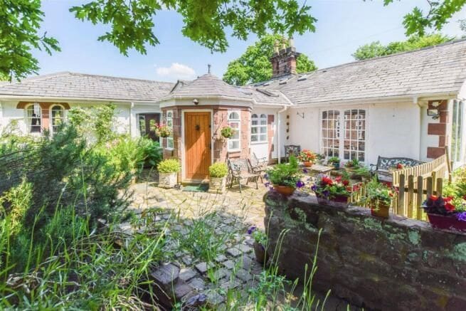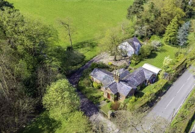 The lodge is entered via an impressive oriel style sandstone vestibule which in turn opens to a welcoming reception hallway with exposed beams and vaulted ceiling. From the hallway you have a large reception room, currently used as a dining room with steps leading down to a cosy lounge area with exposed sandstone walls and open fireplace. On the opposite side of this magnificent property, you have a sitting room with fireplace and steps leading up to a kitchen, fitted with a comprehensive range of units including a pantry and a range of integrated appliances. Double doors open onto the beautiful gardens from the kitchen. The ground floor is completed by a double bedroom with dressing room and en suite. To the first floor you have two further double bedrooms with built in storage and a modern bathroom with freestanding bath and feature circular window overlooking the grounds.
