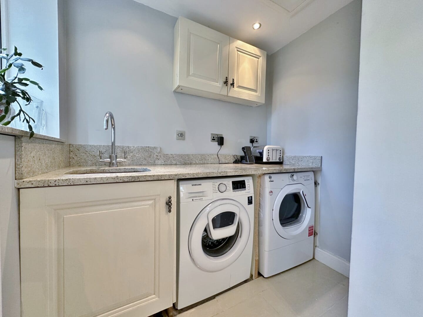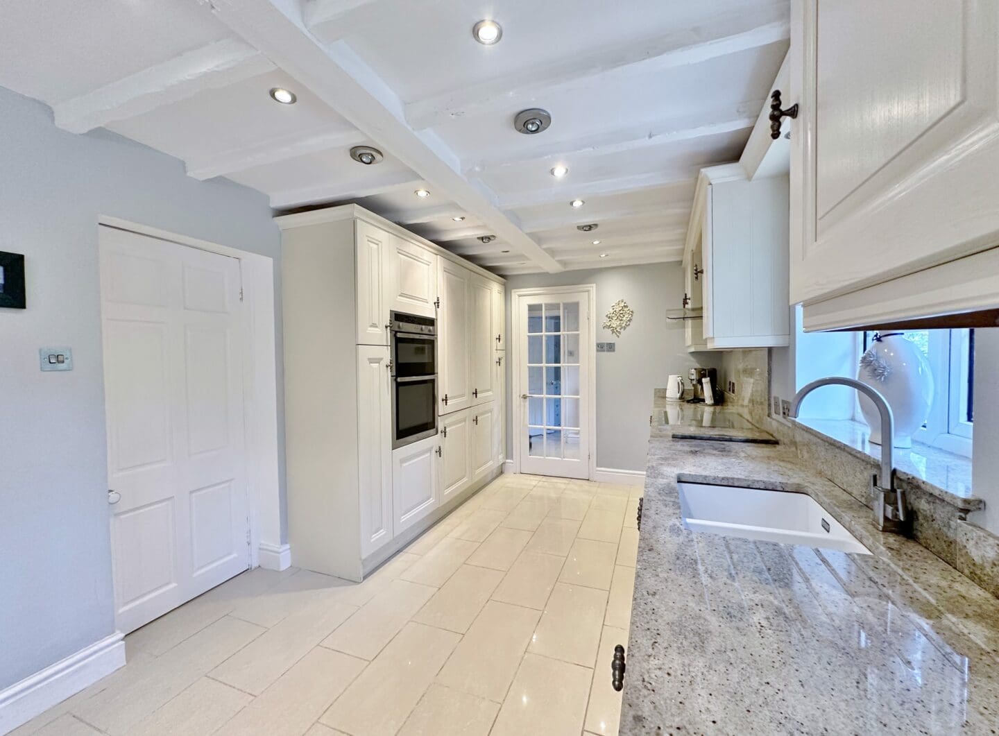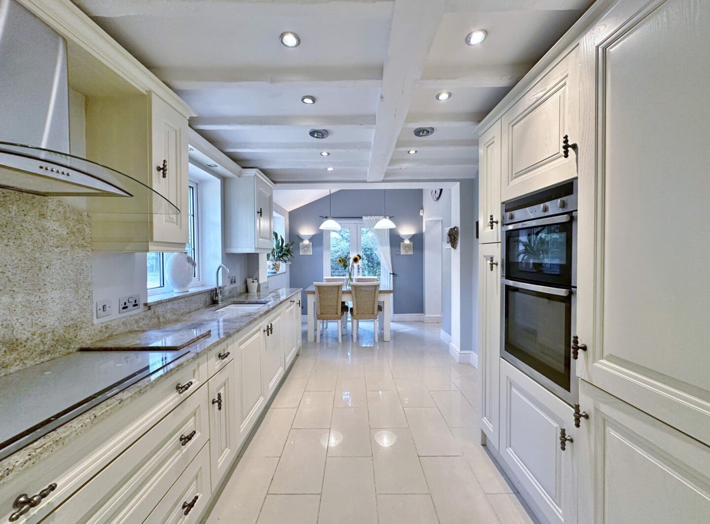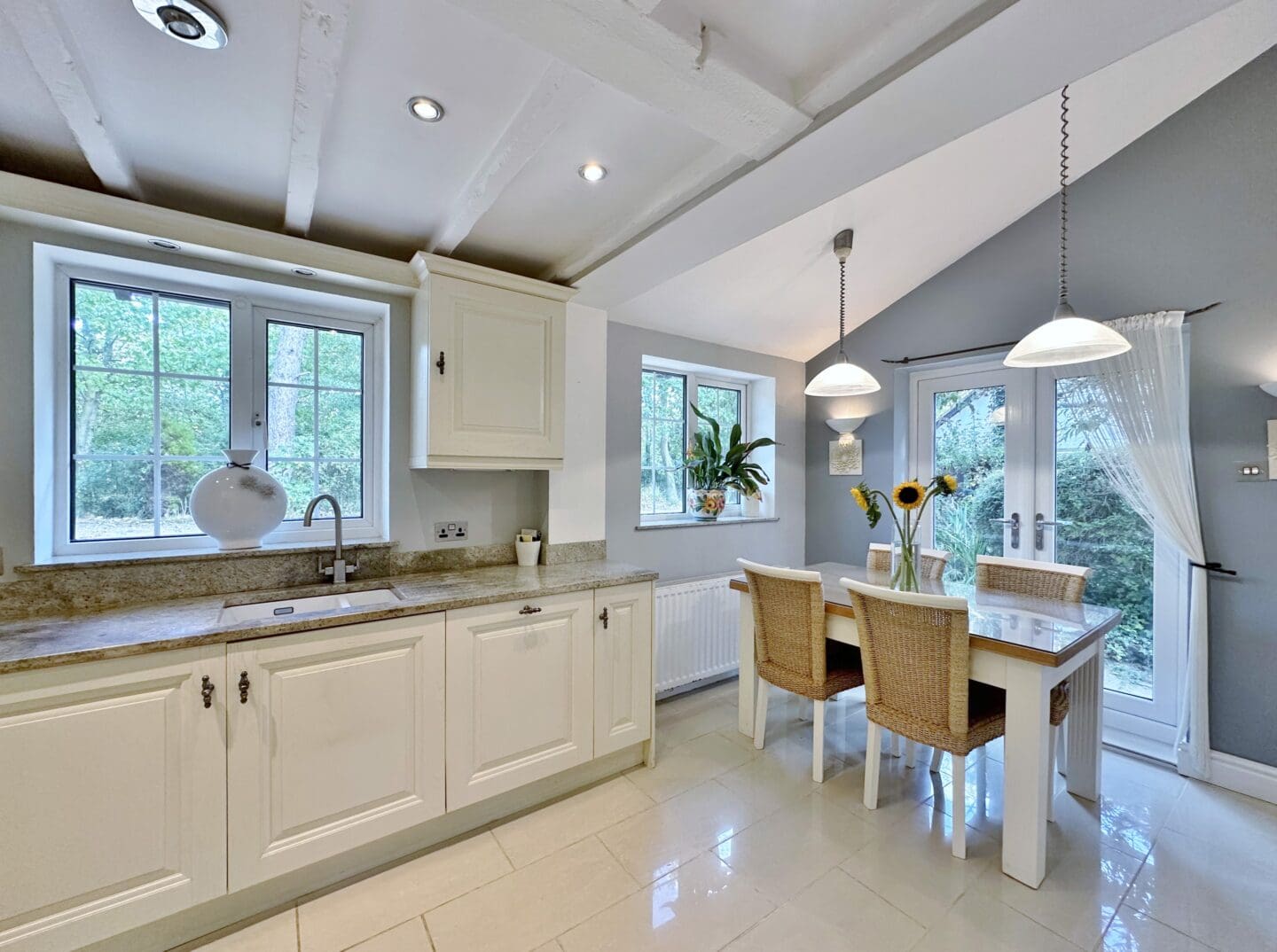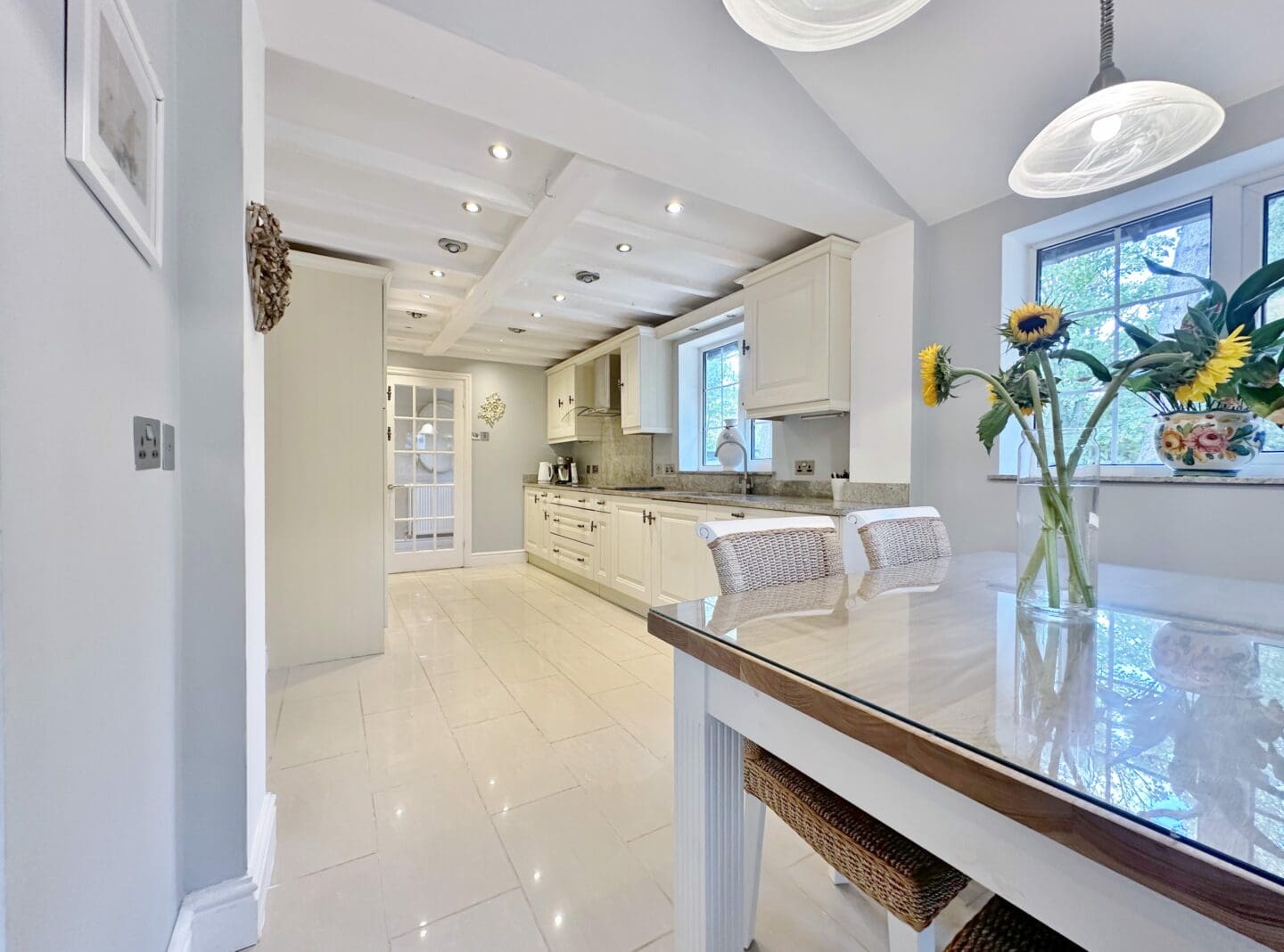 The internal accommodation extends to over 1,800 square feet, boasting generous proportions and a thoughtfully designed layout. A welcoming hallway leads you into the elegant lounge, complete with a charming feature fireplace, while the formal dining room provides an ideal space for entertaining and benefits from stairs to the first floor as well as direct access into the conservatory. Bathed in natural light, the conservatory captures stunning views over the expansive gardens, creating a perfect spot to unwind and take in the surroundings. From the hallway, you will also find a stylish four piece bathroom and a modern fitted kitchen, complemented by a utility room offering further practicality.