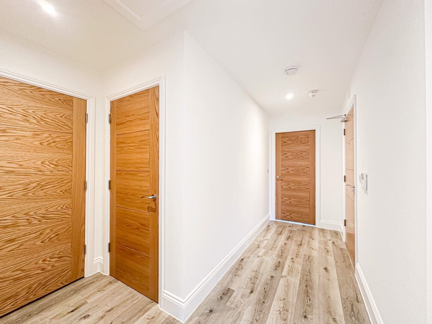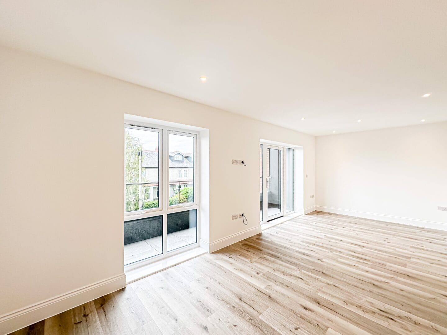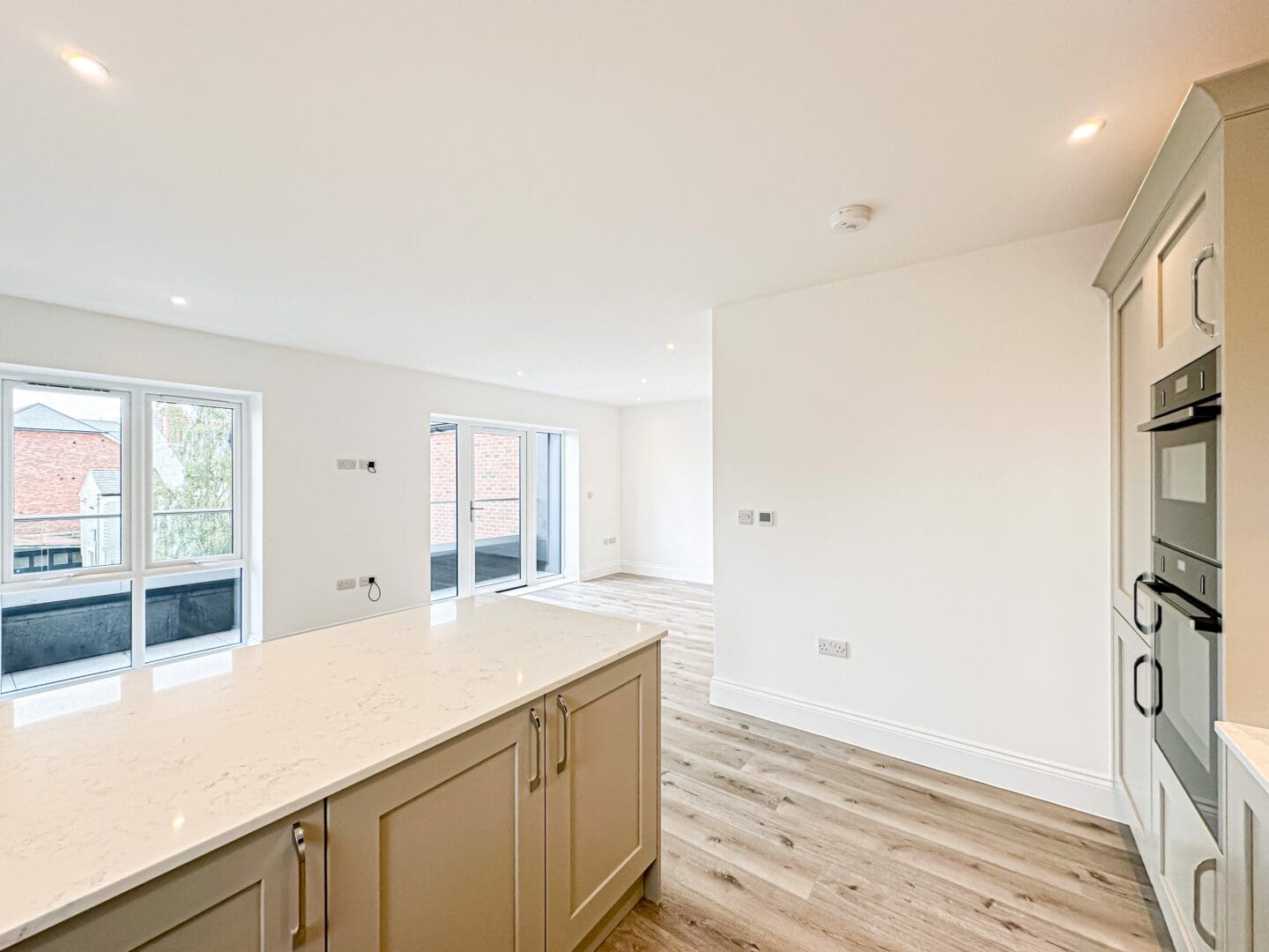 Apartment Nine is a two bedroom second floor property with front facing aspect, each unit will benefit from one allocated parking space. Internally you have a hallway with storage cupboard, spacious open plan living kitchen diner with bespoke fitted kitchen and access to a front balcony. Two double bedrooms, one with ensuite and a separate bathroom.