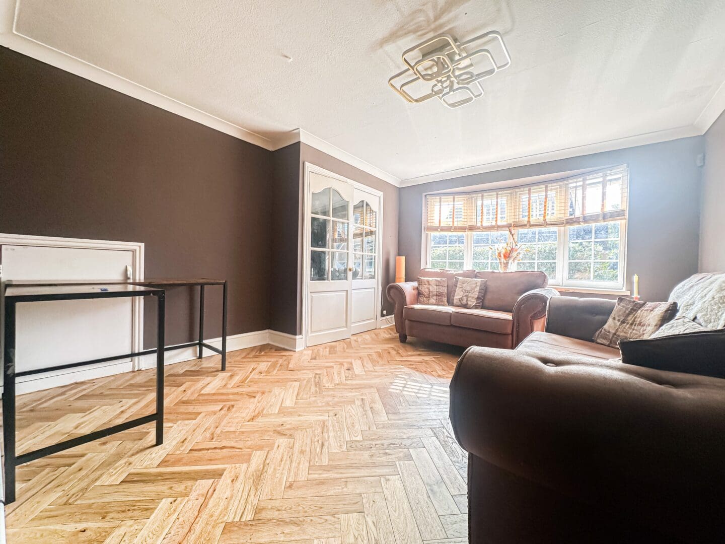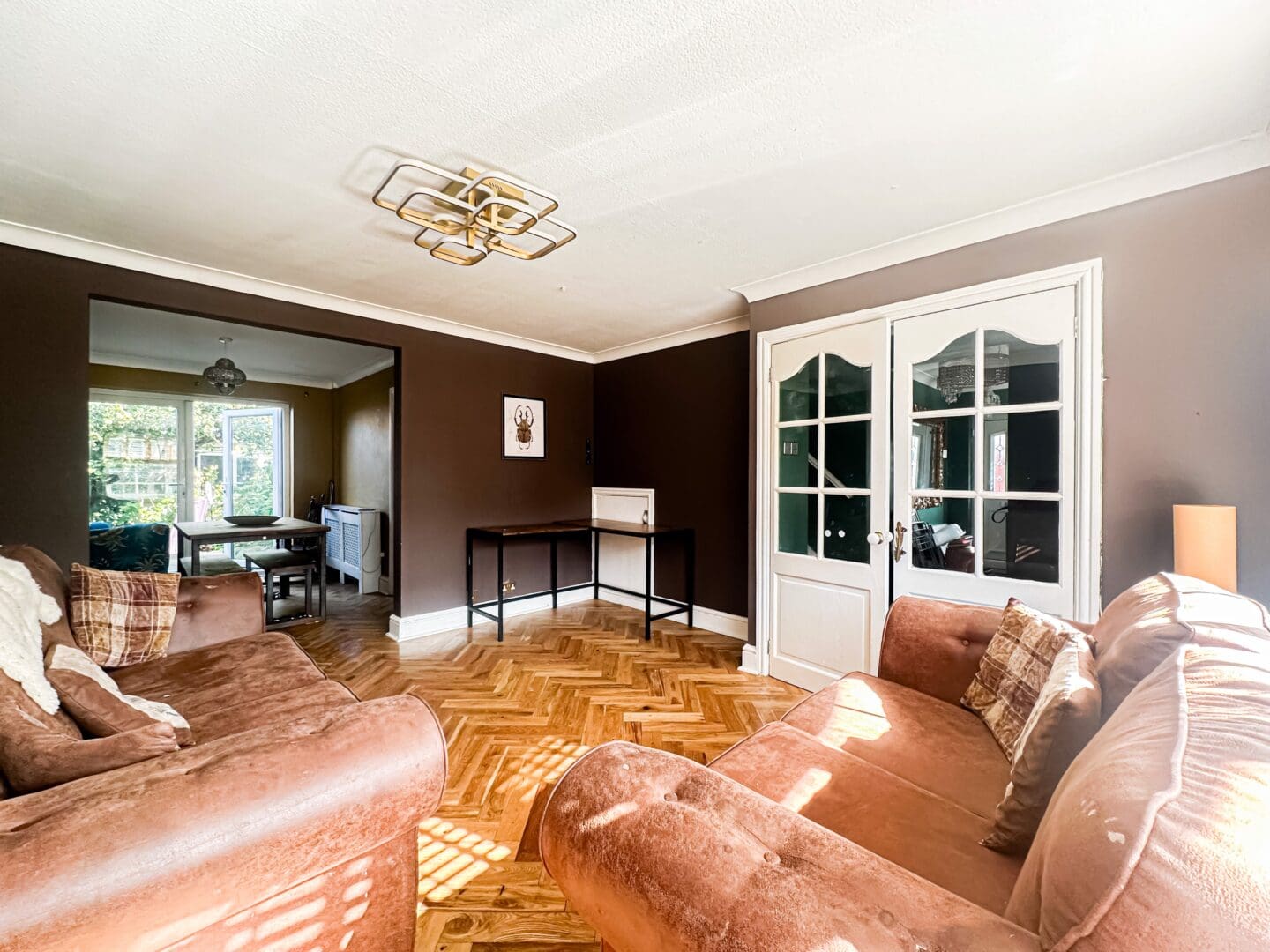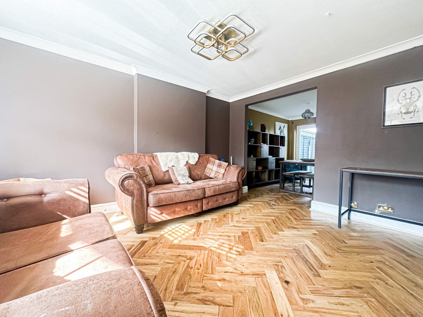 An entrance hall greets you into the property, leading through to a delightful playroom, which could also be used as a home office, followed by a bright and spacious family lounge. Awash with natural light and finished in a tasteful décor featuring parquet style flooring, this presents a welcoming space to relax and unwind. The lounge flows seamlessly into a dining area which enjoys a set of French doors providing views and access out to the rear garden, offering a charming setting for enjoying family mealtimes and entertaining guests. Continuing through you will find a substantial modern kitchen diner complete with a range of fitted base and wall units and plentiful surface space. With ample room to also accommodate a dining/sitting area, this presents a social setting for cooking in company. Concluding the extensive ground floor is a convenient WC.