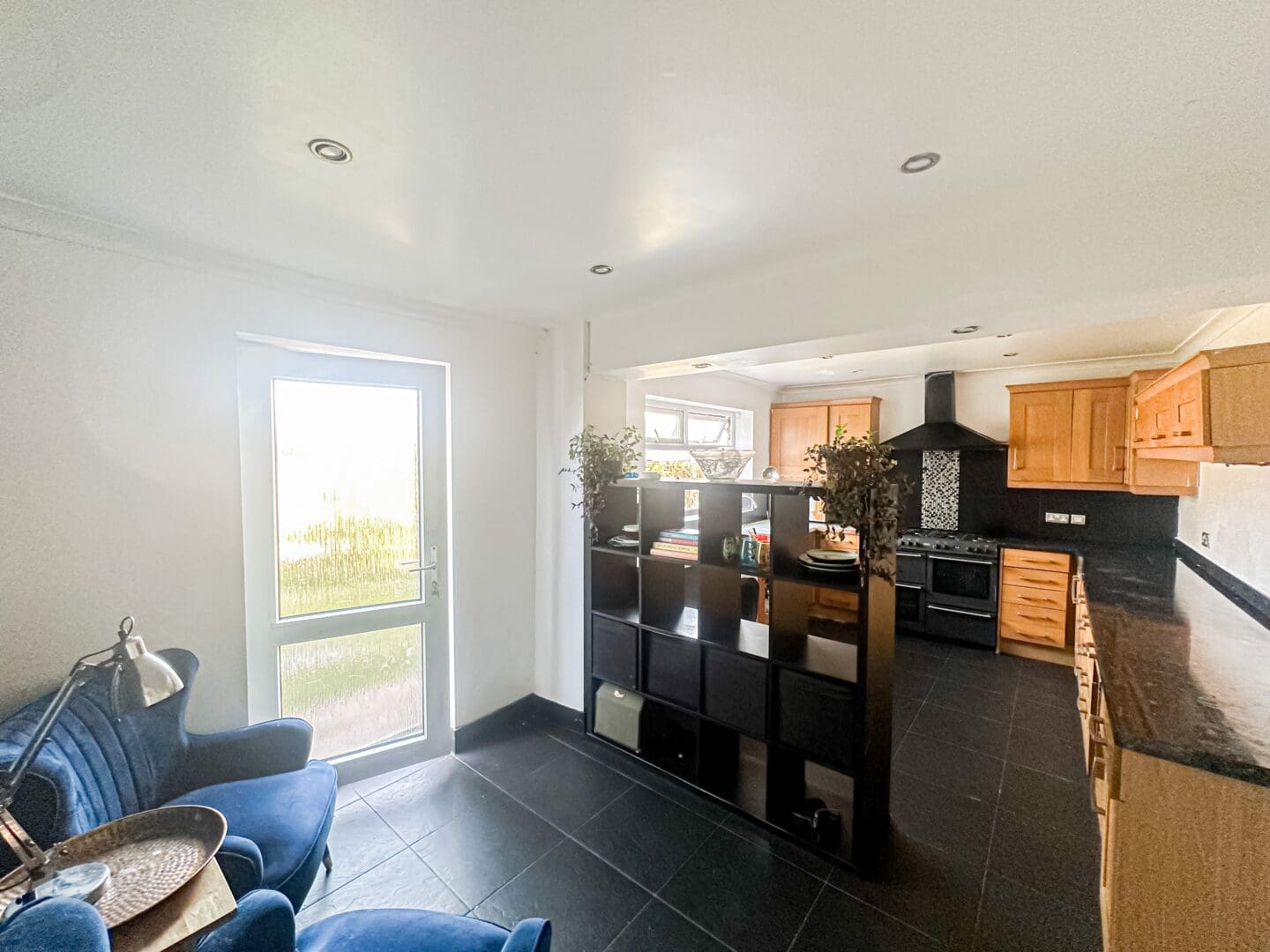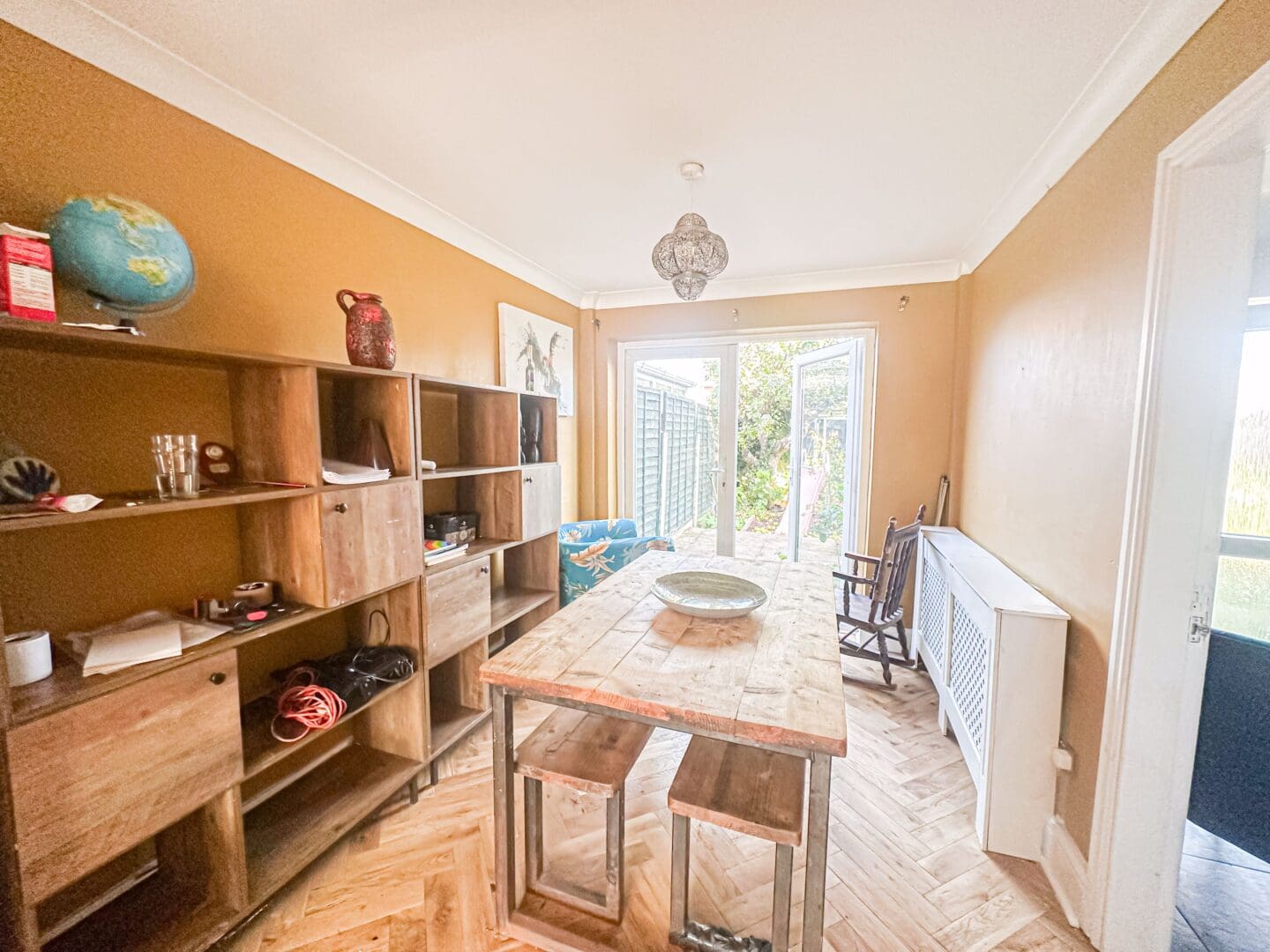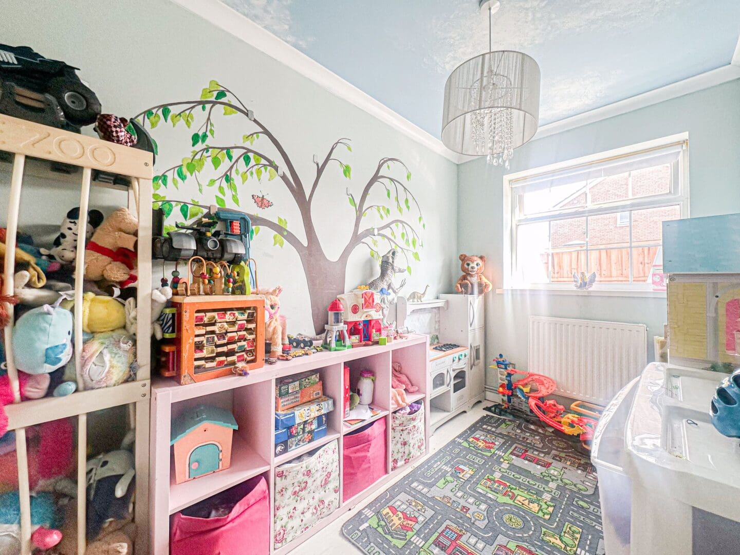 An entrance hall greets you into the property, leading through to a delightful playroom, which could also be used as a home office, followed by a bright and spacious family lounge. Awash with natural light and finished in a tasteful décor featuring parquet style flooring, this presents a welcoming space to relax and unwind. The lounge flows seamlessly into a dining area which enjoys a set of French doors providing views and access out to the rear garden, offering a charming setting for enjoying family mealtimes and entertaining guests. Continuing through you will find a substantial modern kitchen diner complete with a range of fitted base and wall units and plentiful surface space. With ample room to also accommodate a dining/sitting area, this presents a social setting for cooking in company. Concluding the extensive ground floor is a convenient WC.