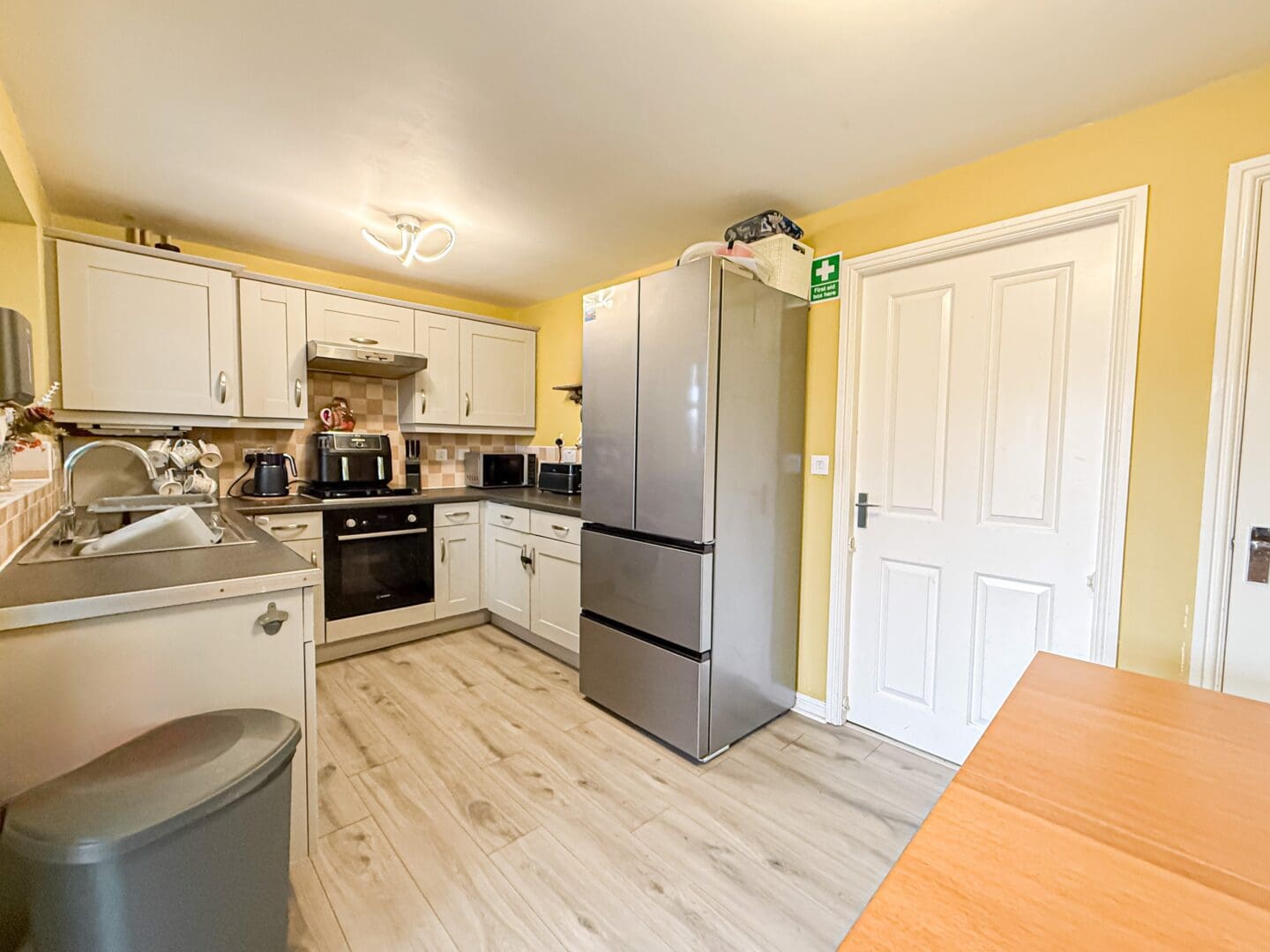 You are greeted into the property by an entrance hall which leads through to a bright and beautifully presented family lounge. Featuring attractive wood style flooring, this provides a welcoming space to relax and unwind. The living room is followed by a substantial kitchen diner complete with a range of fitted base and wall units, plentiful worktop space and ample room to accommodate a dining table, offering a social setting for enjoying family mealtimes and cooking in company. The kitchen flows seamlessly into a well-maintained conservatory which provides a charming alternative sitting area, and concluding the ground floor is a convenient WC.