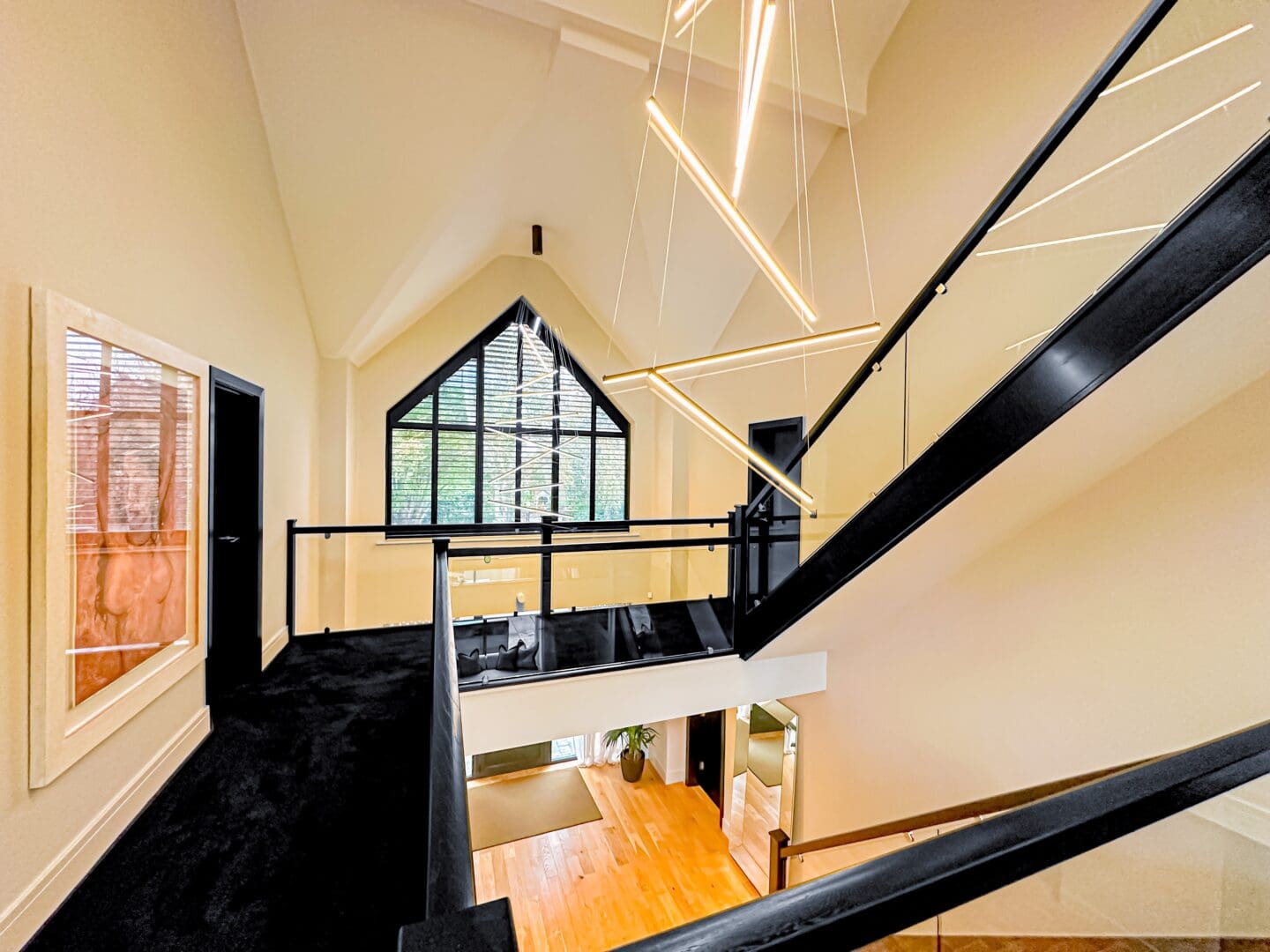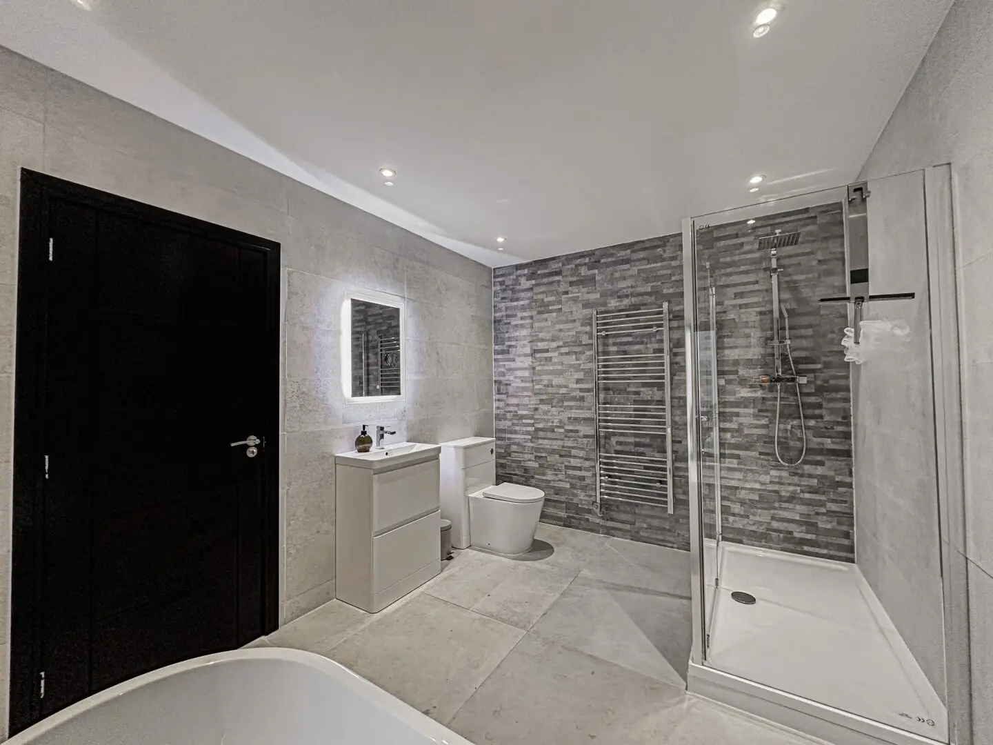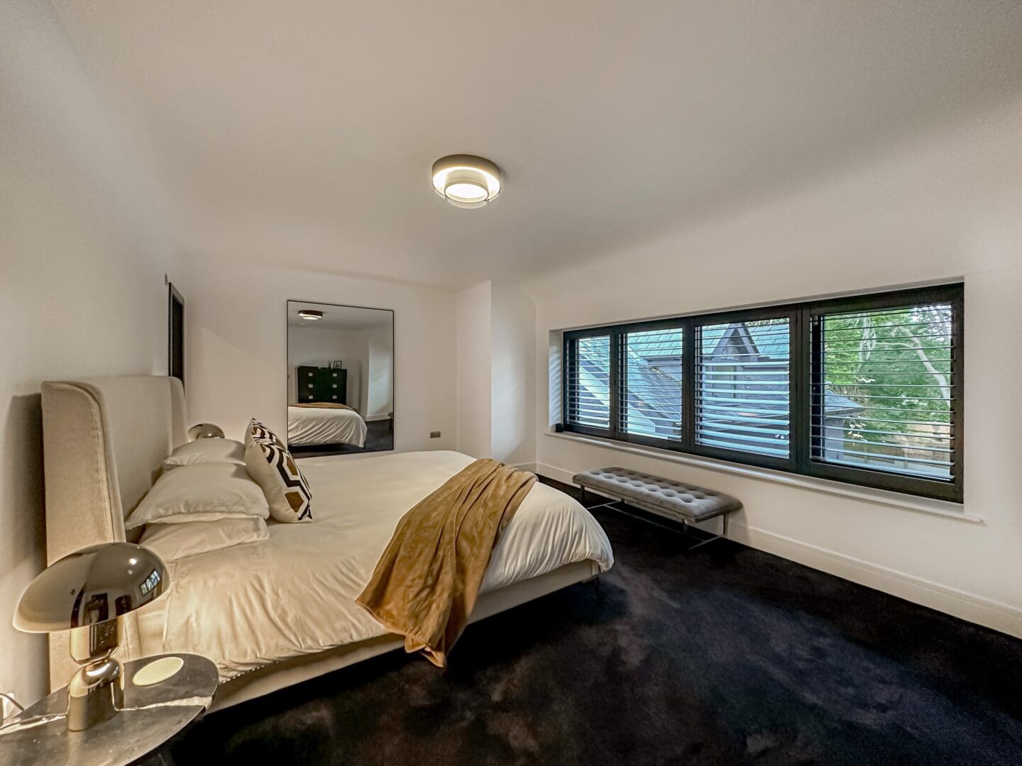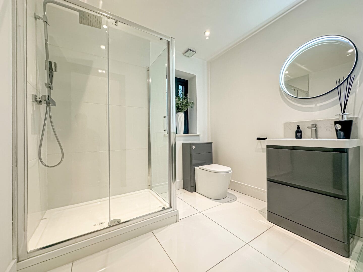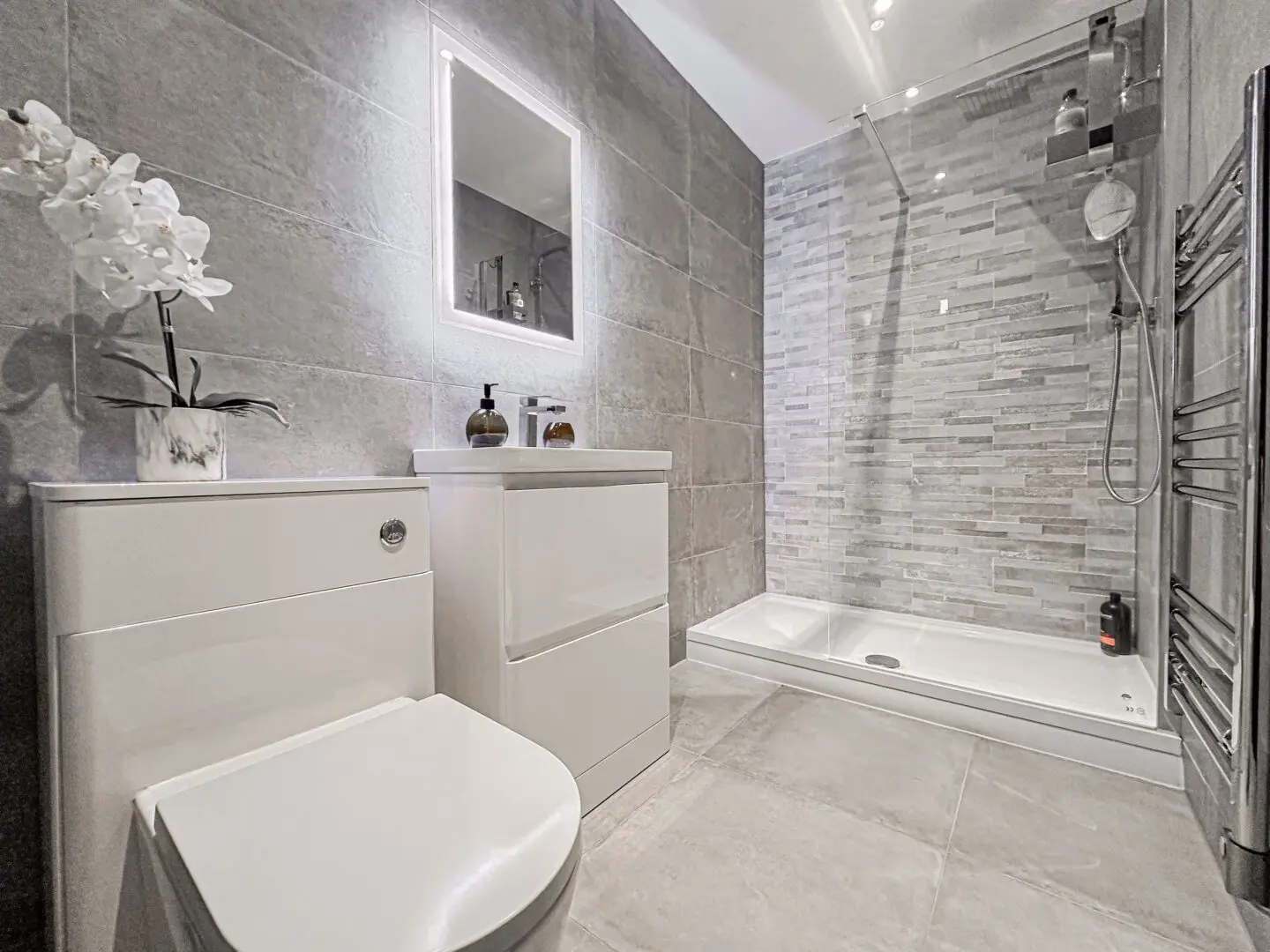 Upon entering, you are greeted by a grand triple height entrance hallway featuring a striking suspended landing and impressive double height windows. The ground floor offers a spacious lounge, a dedicated cinema room and a gym with bi-folding doors opening onto the beautifully landscaped rear garden. At the heart of the home lies the stunning open plan kitchen, living, and dining area, an expansive 1,100 square feet space showcasing a bespoke fitted kitchen and statement windows that create a perfect blend of elegance and functionality. Completing the ground floor are a cloakroom, W.C, plant room, utility room and an inner hallway leading to a shower room.
