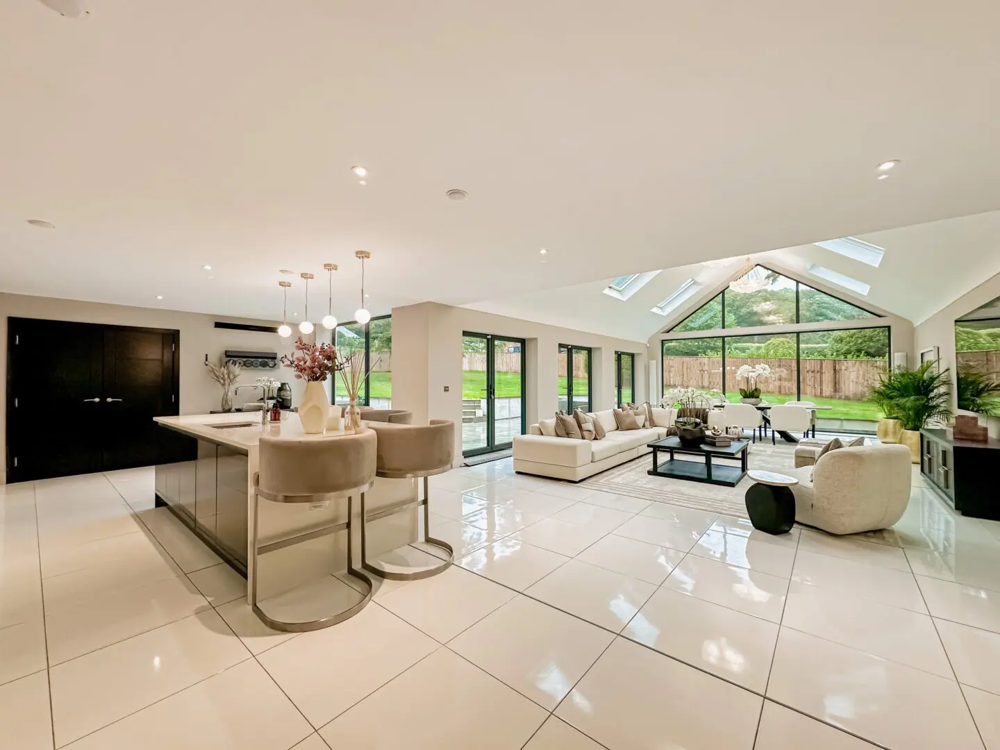 Sumptuous six bedroom, six bathroom architectural masterpiece. This exceptional detached family residence offers approximately 6,800 square feet of exquisite living space, meticulously designed and finished to the highest standards. Every detail has been thoughtfully considered to create a home that exudes sophistication, flooded with natural light and adorned with luxurious finishing touches throughout.