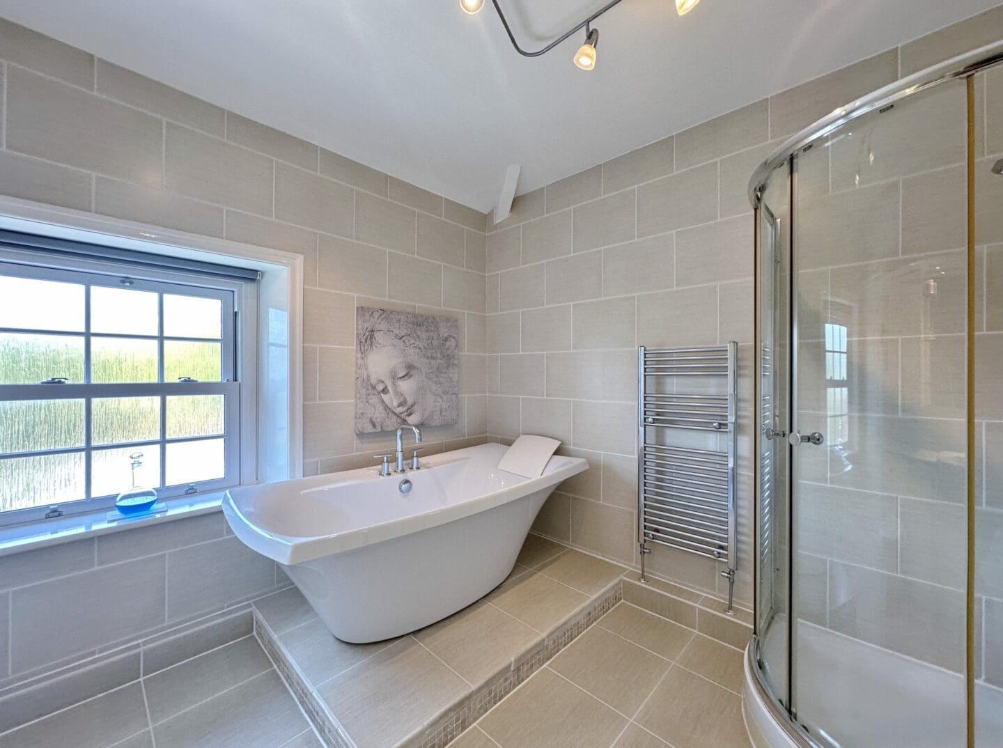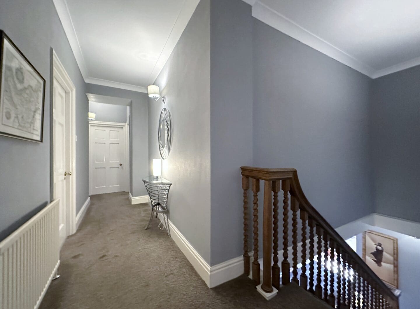 Upstairs, the home continues to impress with an expansive layout offering six double bedrooms. Three benefit from stylish en-suite bathrooms, including a luxurious master suite with a walk-in dressing area and a large en-suite. The family bathroom features a freestanding bath and separate shower, maintaining the high-end finish throughout.