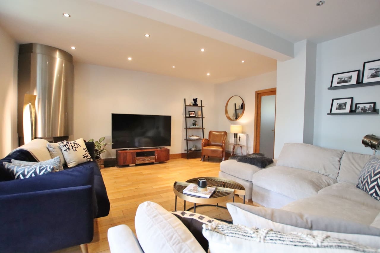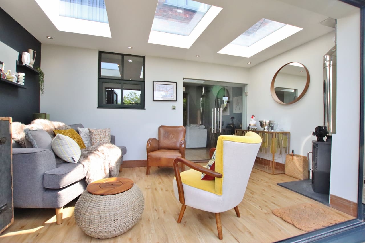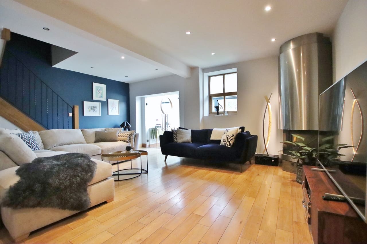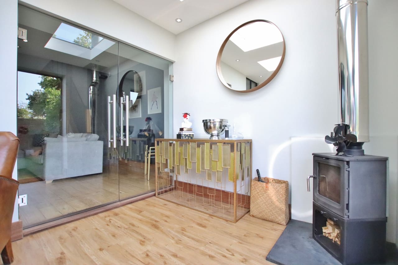 Offered for sale with no onward chain, in brief you have a utility hallway with integrated appliances, bespoke high quality fitted kitchen and a generous sized lounge diner to the rear of the property with feature wood burning fireplace and an impressive garden room off with further wood burning fireplace, feature skylight windows and delightful views over the rear garden. To the first floor you have a master bedroom with Juliette balcony and en suite shower room. Two further bedrooms and a contemporary bathroom with freestanding bath. To the second floor you have a large fourth bedroom.