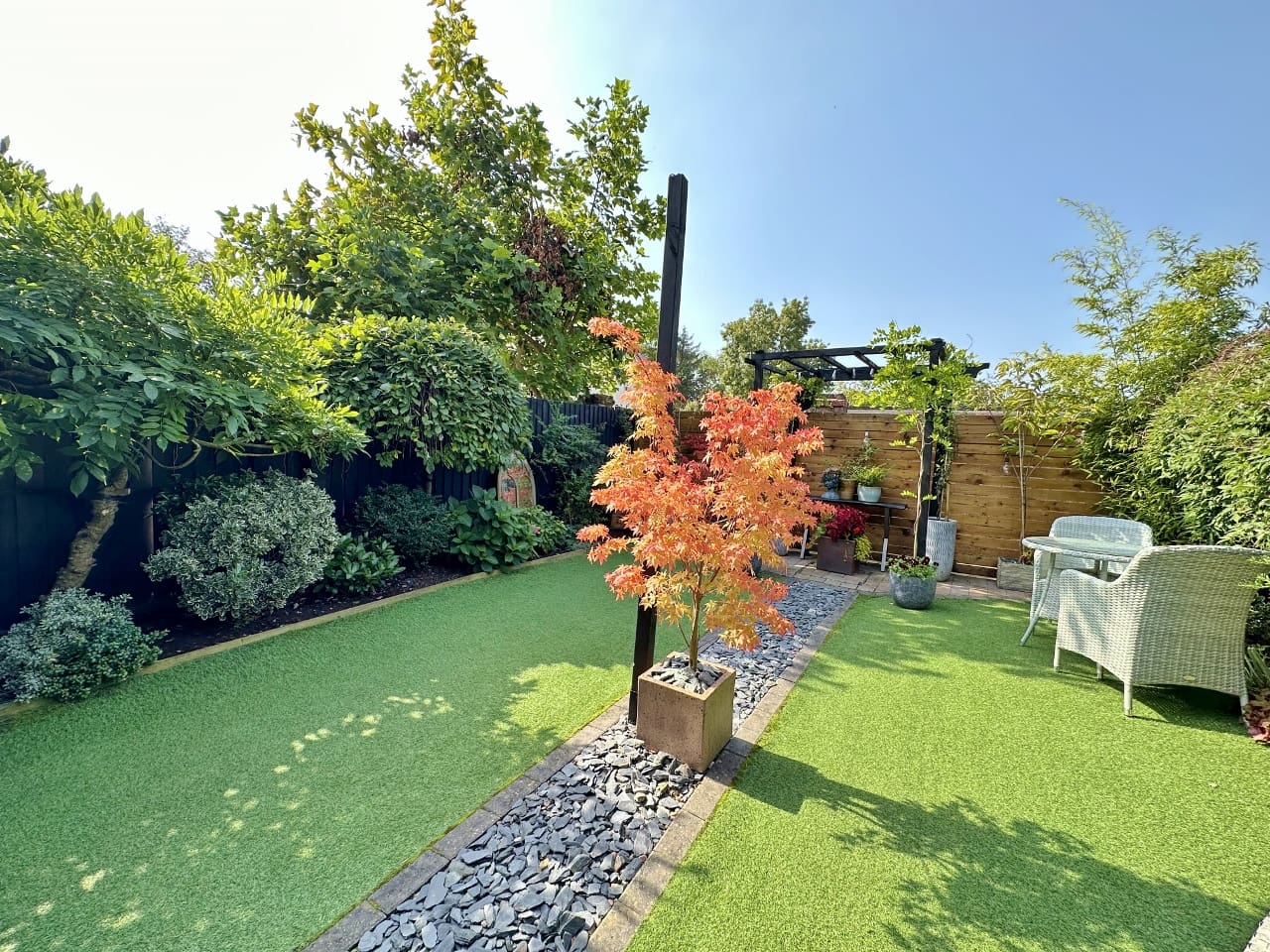 Completing this home perfectly is the beautifully tendered rear garden, designed for ease of maintenance with artificial lawn and mature planting beds. Further benefiting from two allocated parking spaces on the front communal driveway with EV charging point, independent LPG supply managed and maintained by Flo Gas and a waste bio system for all three properties.