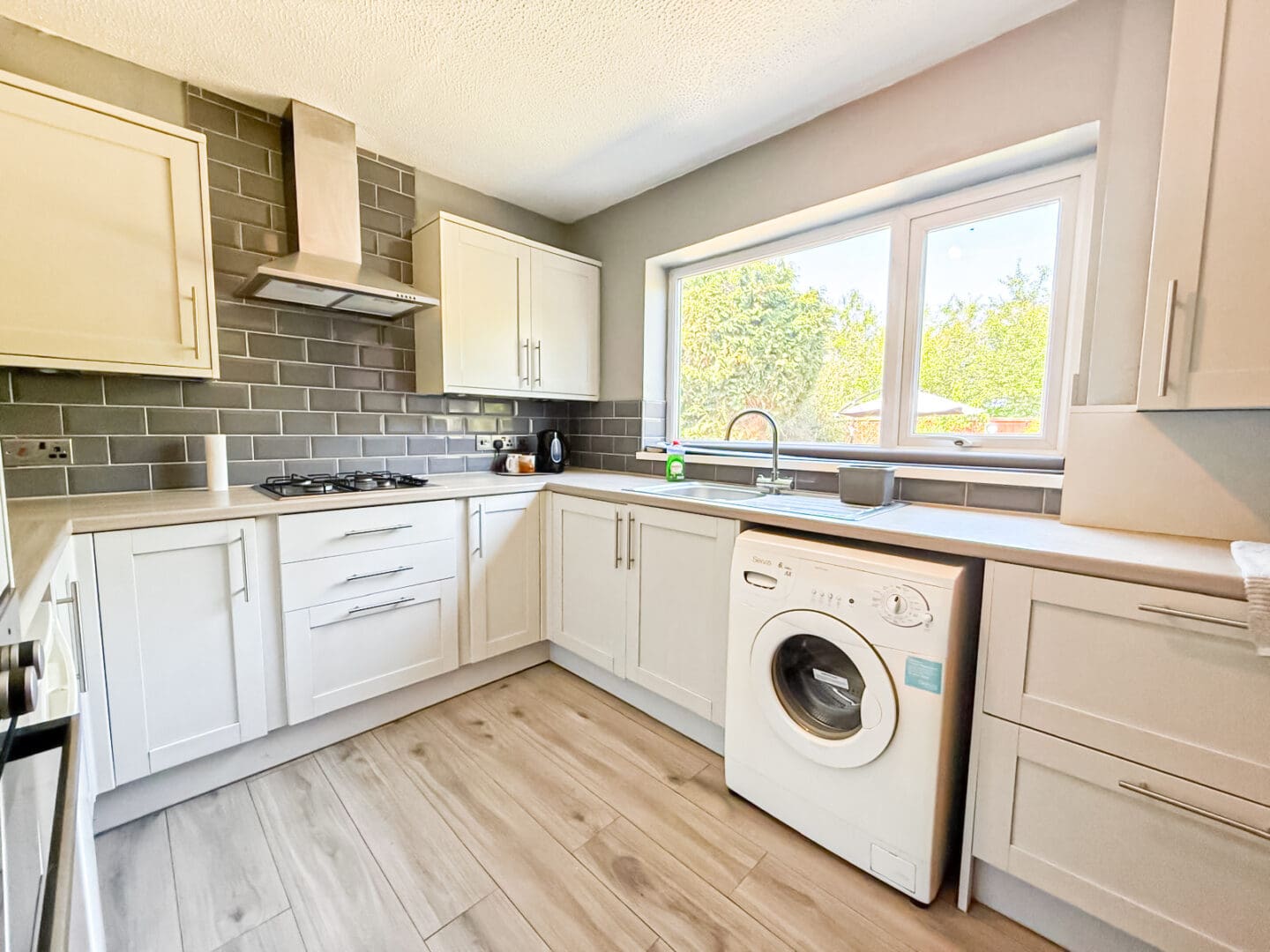 Following through the entrance hall, you are led into a generously sized reception room, comfortably accommodating both a sitting and dining area, which enjoys a set of sliding doors providing views and access out to the rear garden and flooding the space with natural light. This flows seamlessly into a modern kitchen complete with a range of attractive fitted base and wall units and complementary worktops offering plenty of surface space. The sleeping accommodation consists of two spacious bedrooms, each finished to an excellent standard featuring plush carpeting, and receiving plenty of daylight. Adding the finishing touch to the interior of this wonderful home is a deluxe three-piece family bathroom suite.