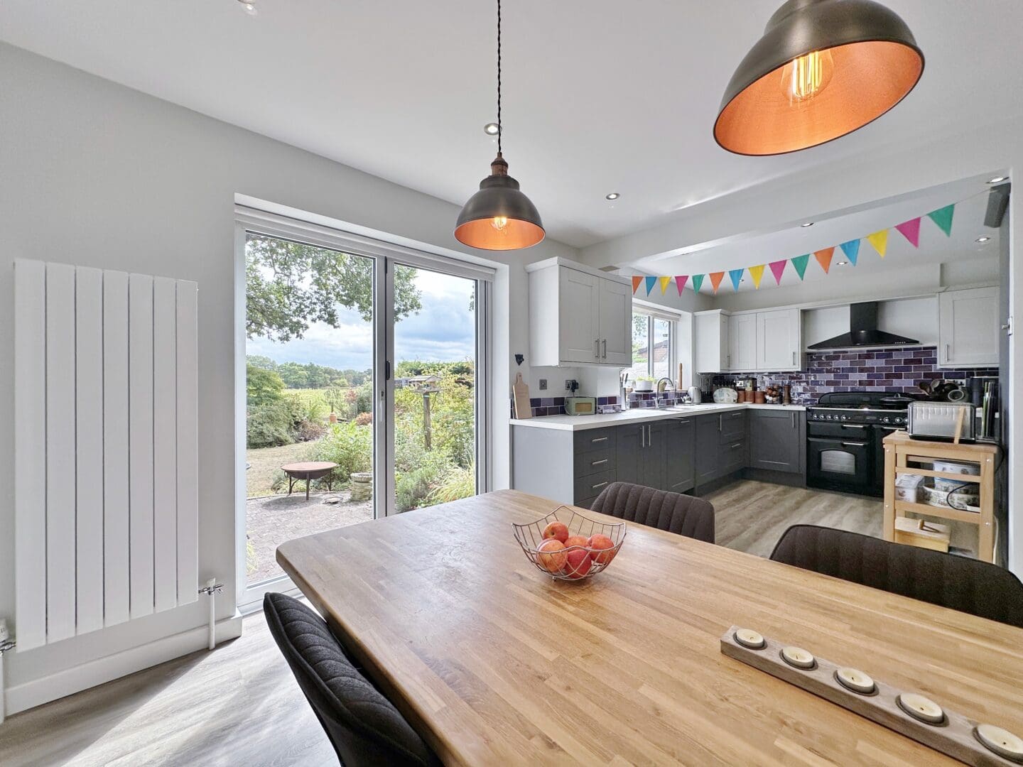 One of the property’s most remarkable features is the uninterrupted rear views across peaceful farmland, with occasional glimpses of the Dee Estuary and Wales from the garden. The private rear garden backs directly onto these rolling fields, providing a serene outdoor space for relaxation. A driveway and garage complete the offering, ensuring ample parking in this highly sought after location.