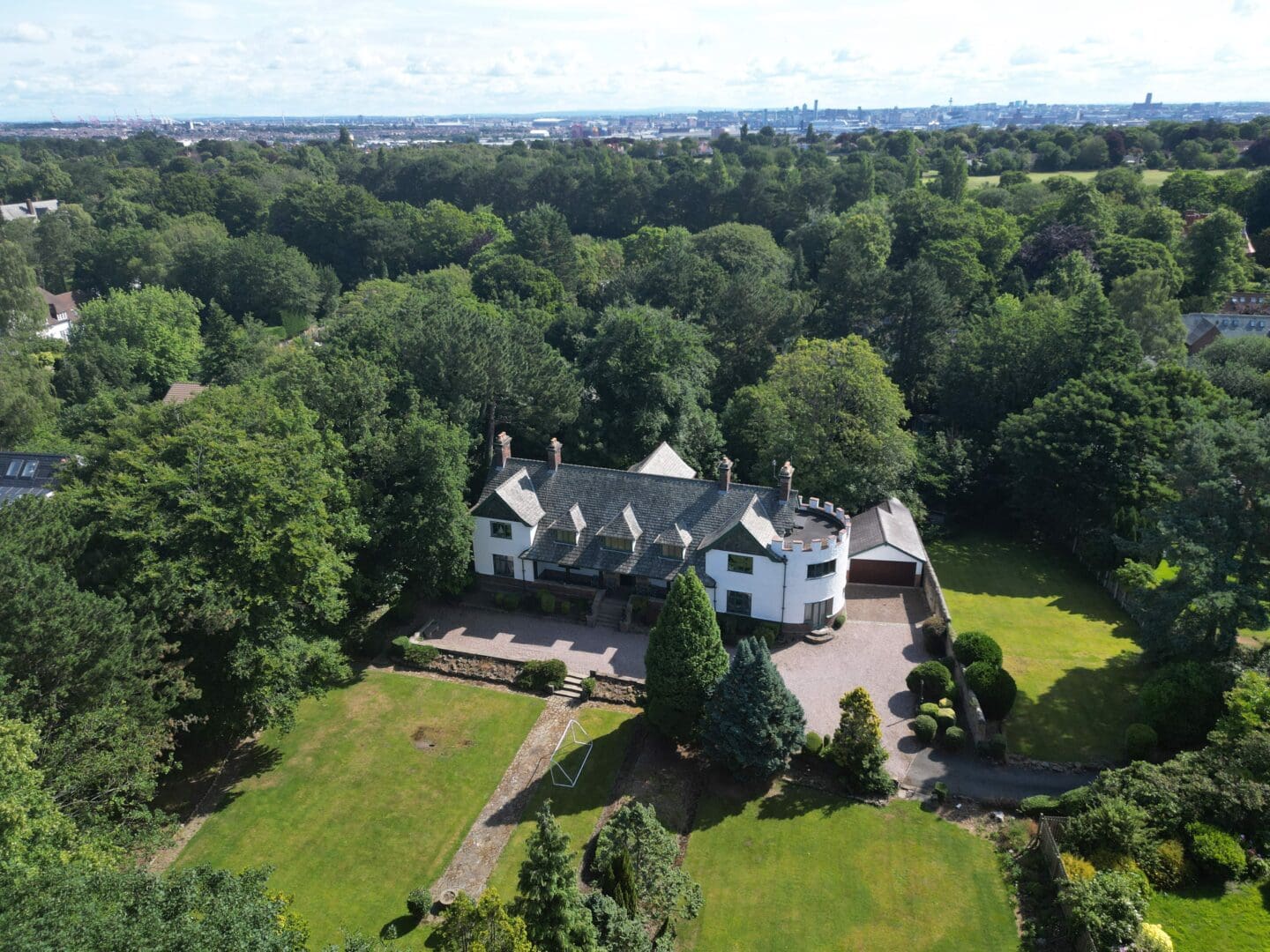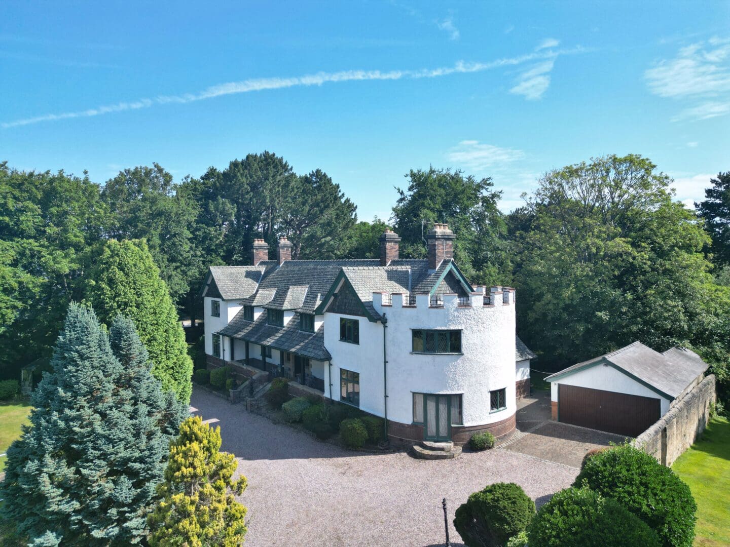 Set within extensive and beautifully secluded grounds, this striking four bedroom detached home, originally crafted in 1928, offers a rare blend of character, privacy, and space. Tucked away behind mature greenery and approached via a discreet entrance, the property enjoys an enviable sense of seclusion while making a bold architectural statement.