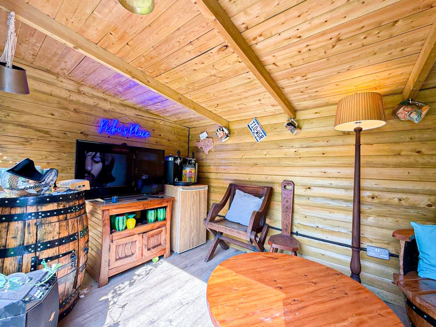 Externally, the property further benefits from a meticulously maintained rear garden which provides a fantastic outdoor space for the whole household to enjoy. A neatly manicured lawn offers plenty of room for recreational activities, whilst a patio area presents a serene spot for al-fresco dining. To the rear is an outbuilding, currently in use as a bar, which is certain to be at the centre of outdoor entertaining events. To the front, a sizable driveway provides ample off-road parking.
