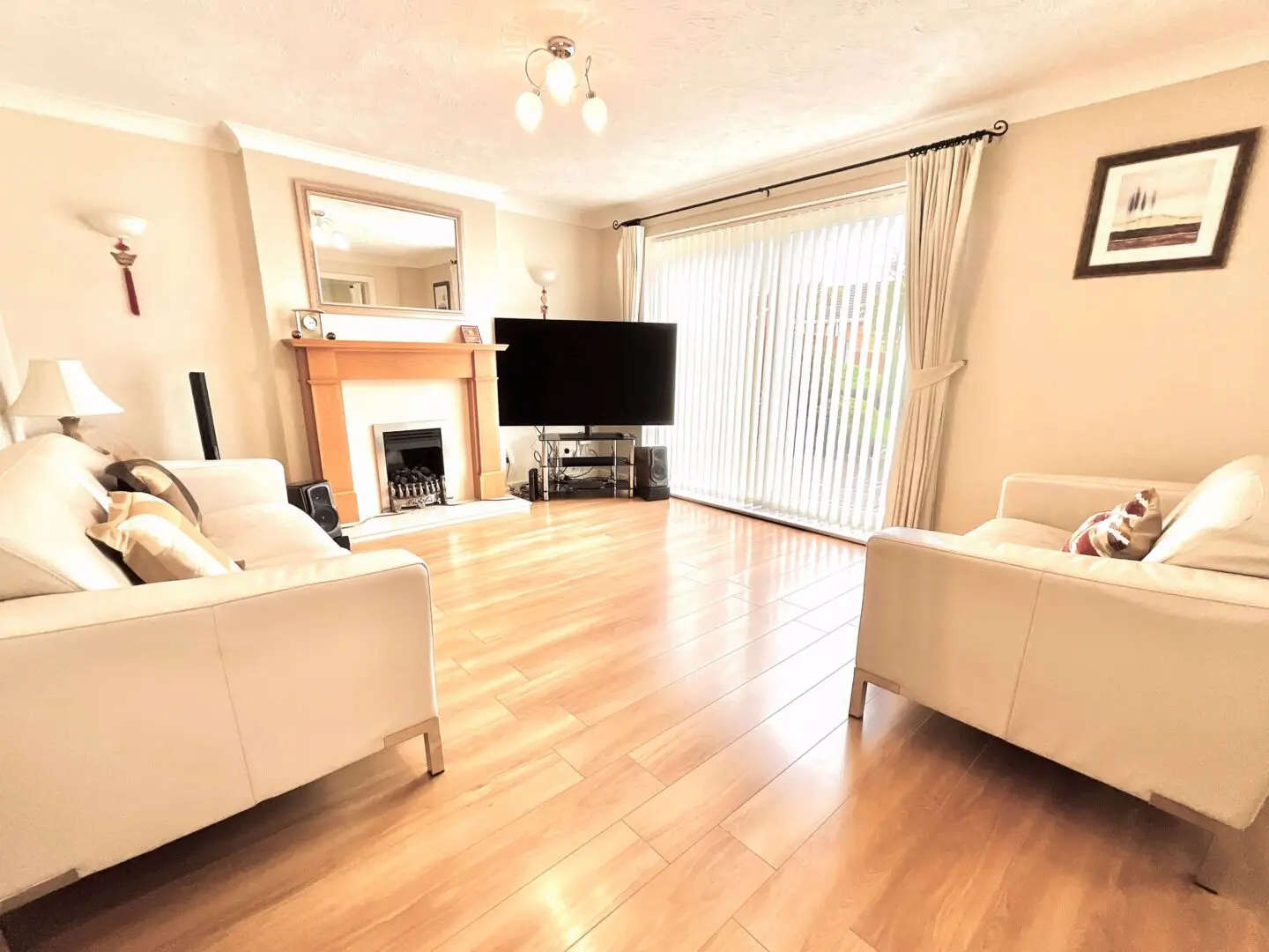 Upon entering the residence, you are greeted by an entrance hall which leads through to a substantial kitchen complete with a range of fitted base and wall units and plentiful surface space. This is followed by a spacious family lounge which enjoys a set of sliding doors to the rear providing seamless access into the garden and flooding the space with natural light. Finished in a neutral décor which complements the wood style flooring and feature fireplace, this presents a welcoming space to relax and unwind. The lounge flows seamlessly into a dining room which offers a delightful setting for enjoying family mealtimes and entertaining guests, and concluding the ground floor is a convenient WC.