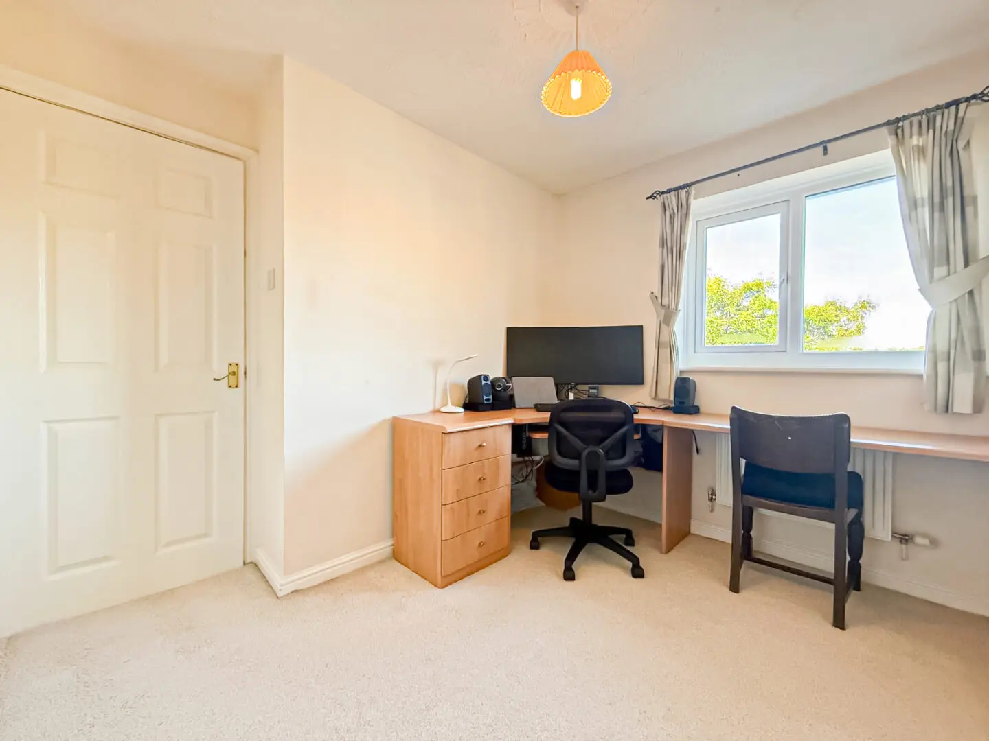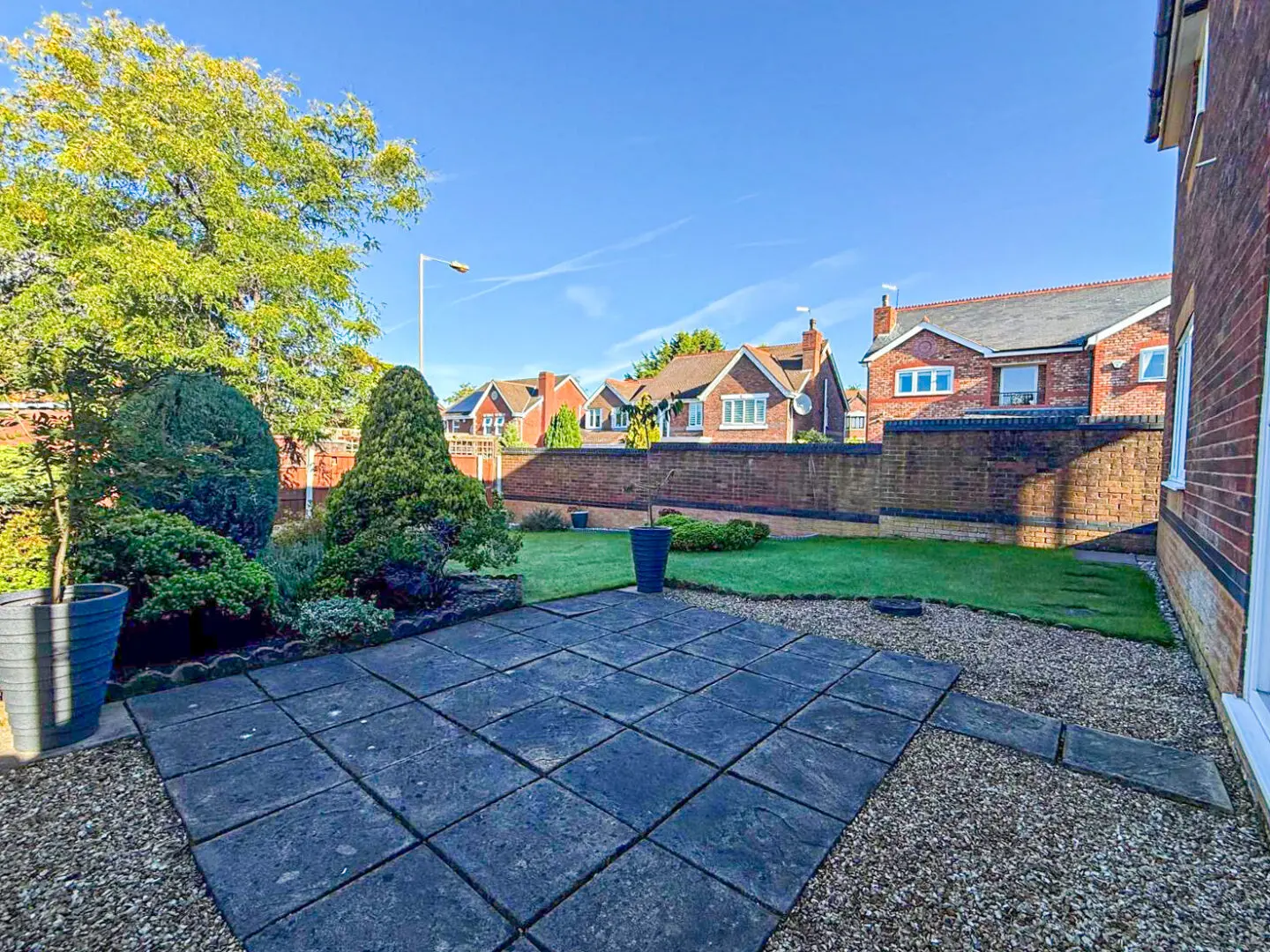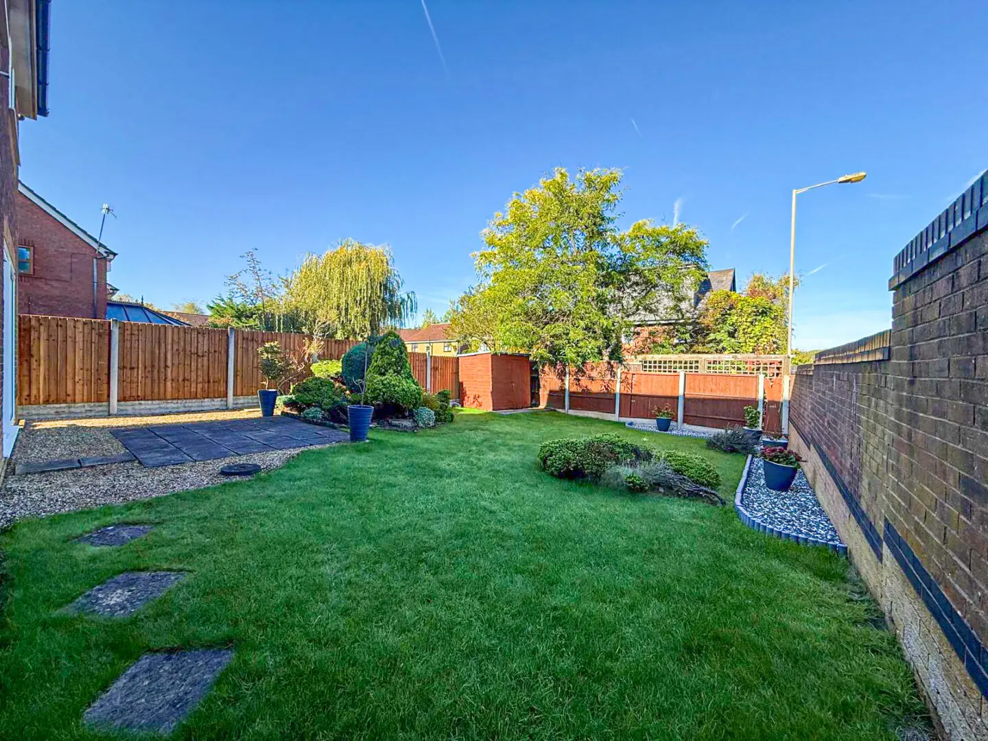 Externally, the property further benefits from a meticulously maintained rear garden which provides a delightful outdoor space for the whole household to enjoy. A neatly manicured lawn offers ample room for recreational activities, whilst a patio area presents a serene setting for al-fresco dining. To the front, a garden area enhances the property’s kerb appeal, whilst a driveway provides ample off-road parking and a garage offers additional storage space.