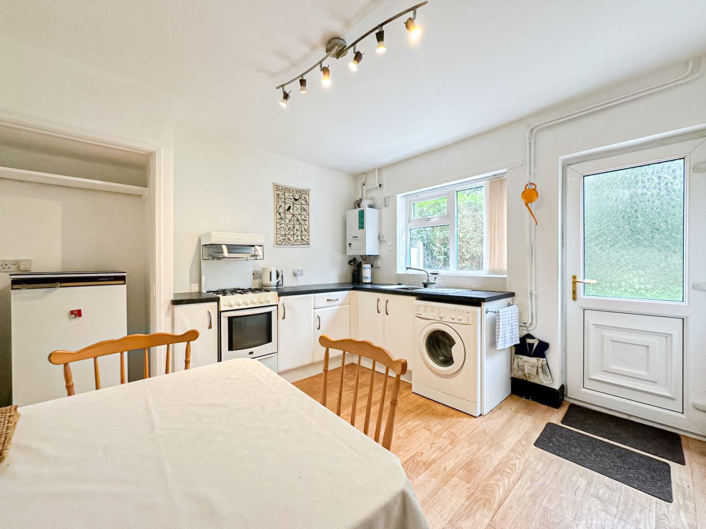 Following through the porch and entrance hall, you are led into an inviting sitting room which presents a peaceful space to relax and unwind. This is followed by a second substantial reception room which boasts a huge window flooding the room with natural light. Finished in a neutral décor featuring plush carpeting and an eye-catching fireplace, this provides a welcoming setting for entertaining guests where views of the garden can be enjoyed. Concluding the ground floor is a sizable kitchen complete with a range of fitted units, plentiful worktop space, and a utility room.
