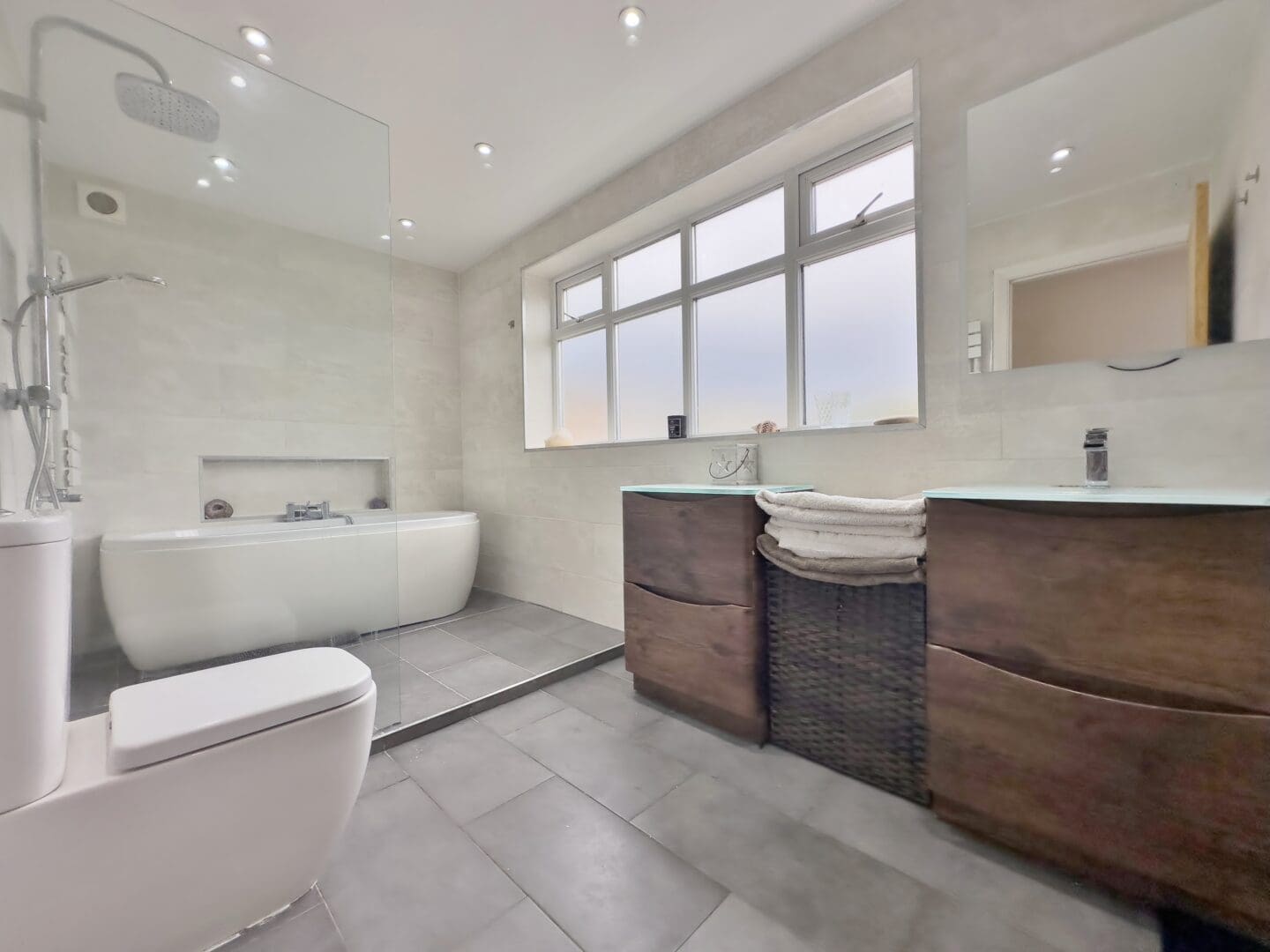 This executive four bedroom double fronted detached residence occupies a secluded plot in the highly prestigious area of Lower Heswall, boasting views across the Dee Estuary and towards the Welsh Hills. Immaculately presented and thoughtfully updated throughout, this exceptional home offers over 1,800 square feet of elegant and versatile living space, ideal for modern family life. The property is further enhanced by ample off road parking, an integral garage, a beautifully maintained lawned front garden, and a private, landscaped rear garden providing a peaceful retreat.