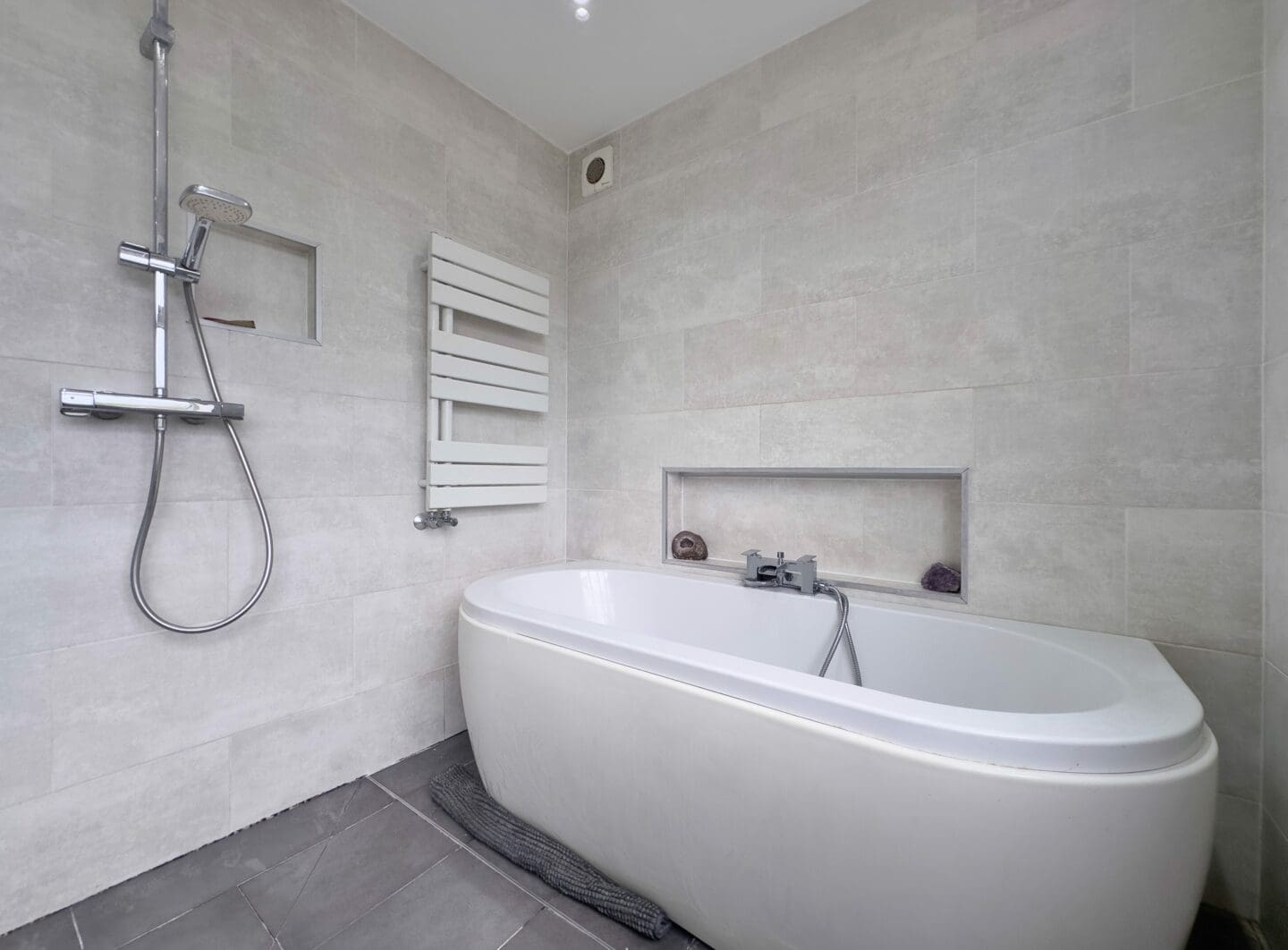 On entering the home, you are welcomed by a spacious entrance hallway that sets the tone for the bright and airy interiors. The welcoming entrance hallway opens directly into the dining room, which features patio doors giving access to the rear garden and providing a wonderful flow of natural light. To the left of the property, a spacious formal lounge with a feature fireplace creates an inviting retreat. At the heart of the home lies a breathtaking open plan living kitchen diner, fitted with a bespoke kitchen comprising a comprehensive range of units and high quality appliances, seamlessly blending style and functionality. Completing the ground floor you have an office/snug, together with a practical utility room that leads through to a convenient W.C. To the first floor, a light filled landing leads to four well presented bedrooms, each offering comfort and flexibility for a growing family. The accommodation is completed by a luxurious four piece family bathroom, fitted with a contemporary suite including a free standing bath and open shower.