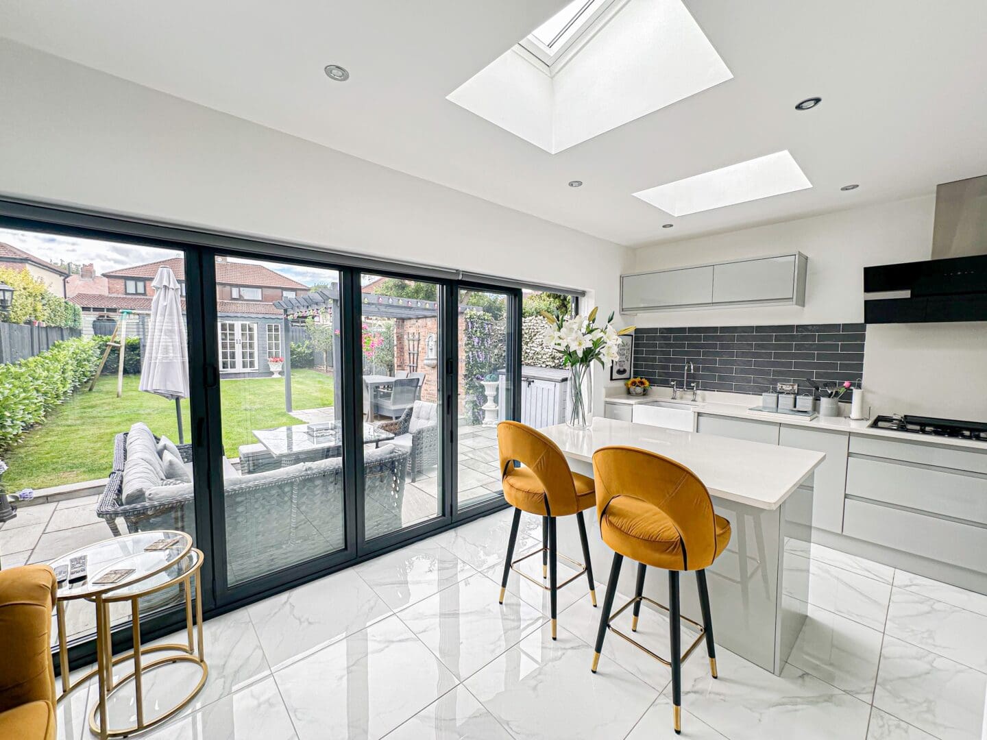 You are greeted into the residence by an inviting entrance hall, which leads through to a bright and spacious family lounge. Impeccably presented featuring parquet flooring and a wood burning stove, this presents a welcoming and elegant space to relax and unwind. At the heart of the home is a spectacular extended open plan kitchen diner which is certain to impress even the most discerning of buyers, enjoying a set of bifold doors to the rear providing seamless access into the garden, and skylights above illuminating the space in natural light. The kitchen is complete with a range of sleek fitted base and wall units, complementary worktops providing plentiful surface space, and a variety of integrated appliances. The centre island incorporates a breakfast bar, presenting the ideal spot for casual dining, and with ample room to accommodate a sitting/dining area, this presents the ultimate social setting for enjoying family mealtimes and entertaining guests. Concluding the ground floor is a convenient WC.