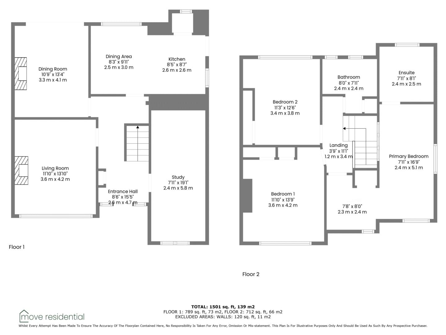 An inviting entrance hall greets you into the residence, leading through two bright and spacious reception rooms, each presenting welcoming spaces for relaxing and entertaining, with the latter enjoying a set of sliding doors providing views and access out to the rear garden and flooding the space with natural light. Across the hall is a substantial study, ideal for those who work remotely, and concluding the extensive ground floor is a sizable fitted kitchen complete with a breakfast bar and ample room to accommodate a dining table, providing a social setting for enjoying family mealtimes and cooking in company.