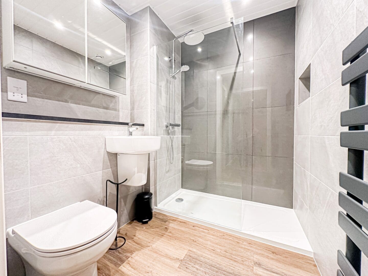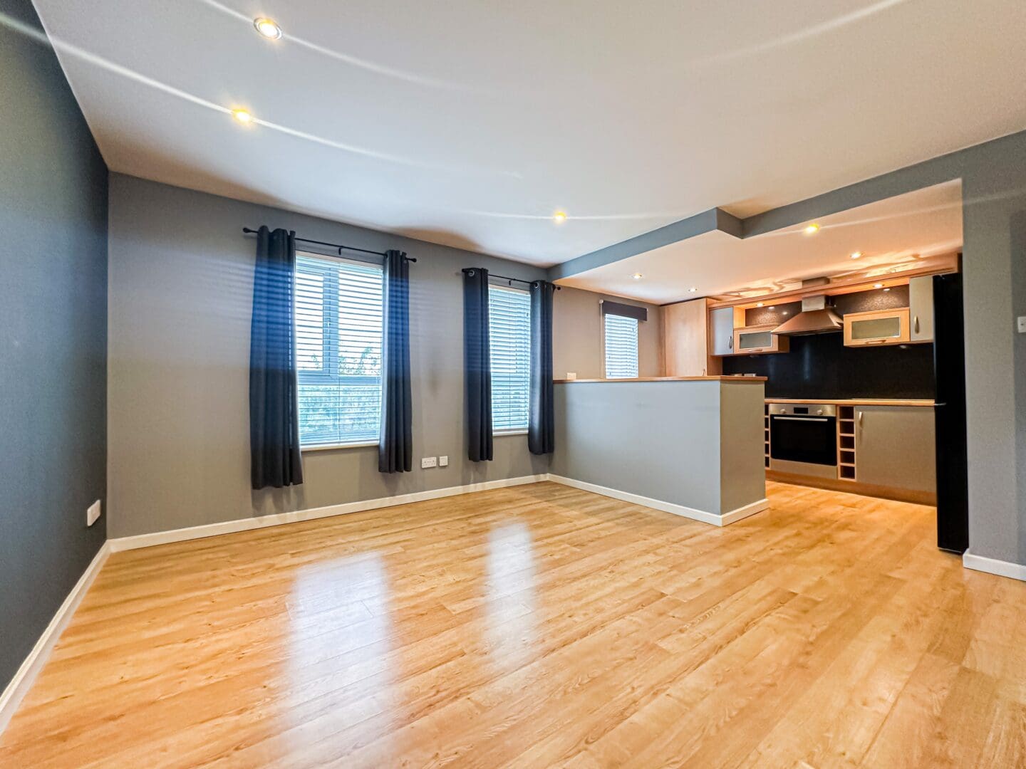 You are greeted into the apartment by an inviting entrance hall which leads through to a spacious open plan kitchen and living area, providing a welcoming social setting for relaxing and entertaining. The kitchen is complete with a range of stylish fitted base and wall units and complementary worktops providing plentiful surface, whilst the living area has been finished in a tasteful décor which complements the attractive wood style flooring. The sleeping accommodation consists of two generously sized double bedrooms, each finished to an excellent standard and receiving plenty of natural light, and concluding the interior of this fantastic apartment is a deluxe family shower room featuring a walk-in shower unit.