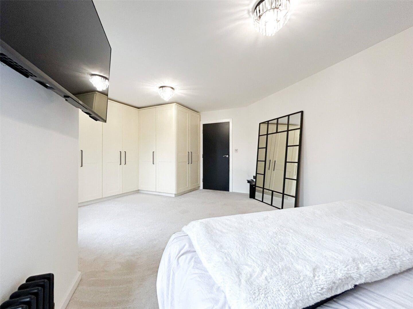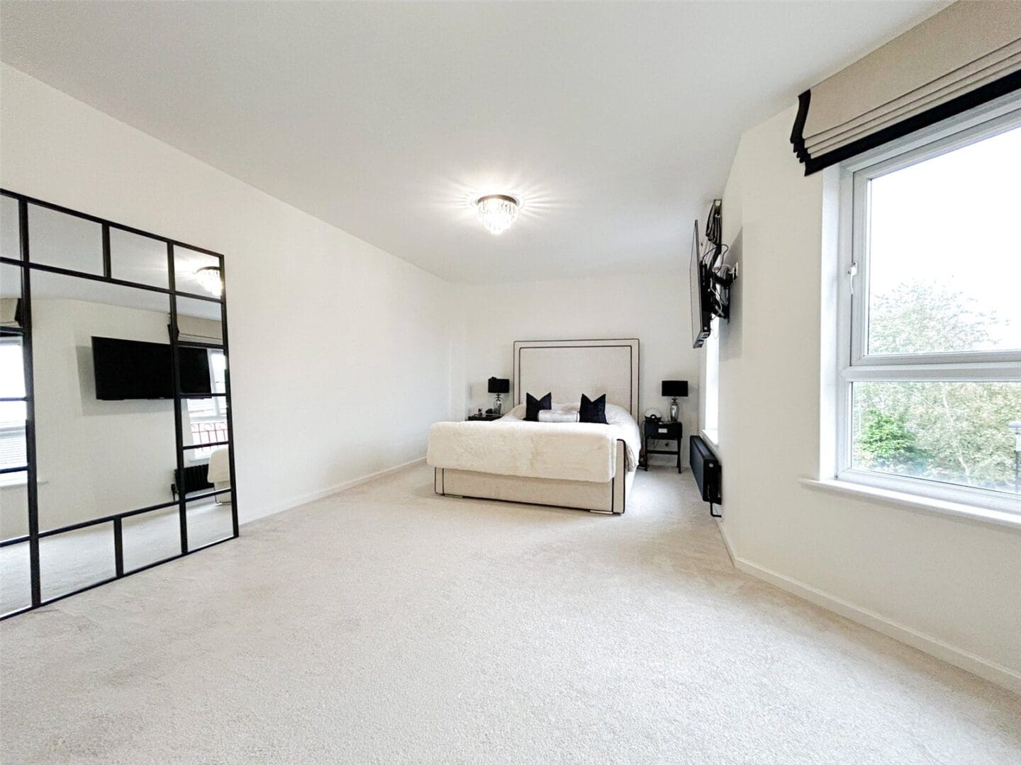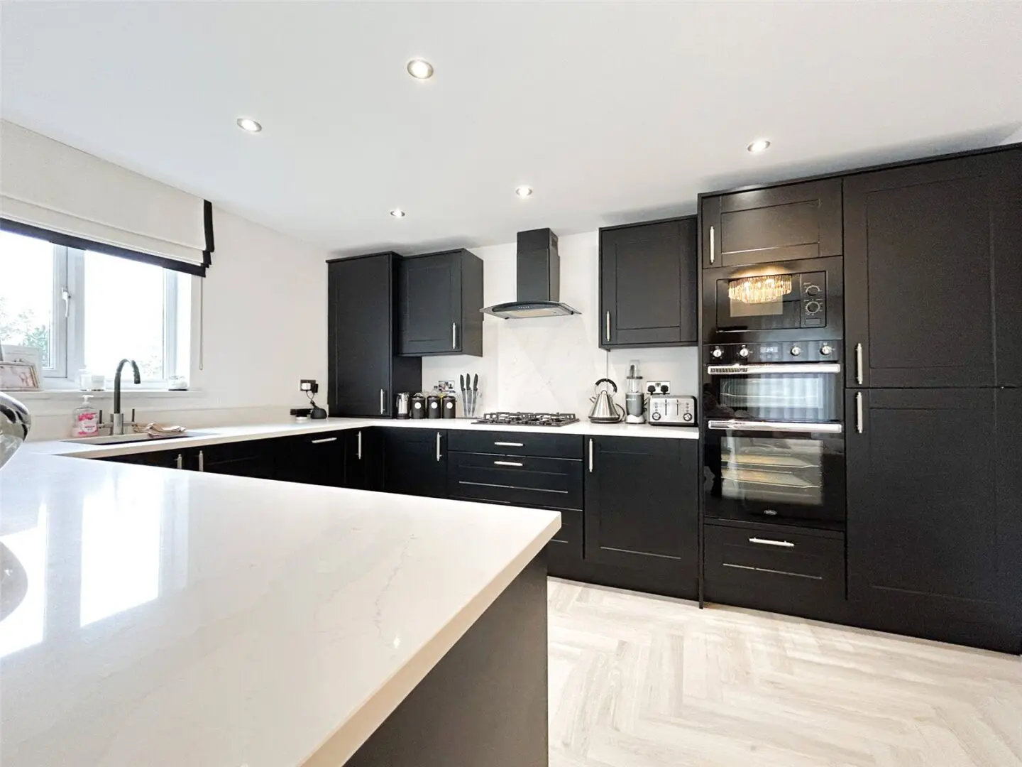 Step inside to find a spacious open-plan living and dining area, flooded with natural light from large windows, and complemented by a modern fitted kitchen with integrated appliances. The layout is ideal for both relaxing and entertaining, with clean lines and contemporary finishes creating a truly move-in-ready home.