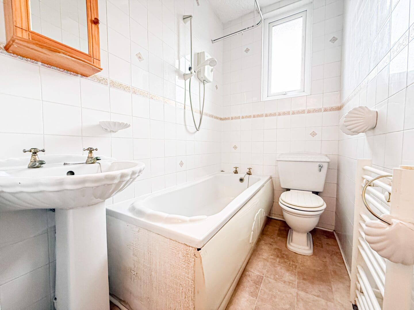 An entrance hall greets you into the property, leading through to a spacious bay-fronted family lounge, followed by a second reception room and fitted kitchen. The first floor is home to two generously sized double bedrooms, accompanied by a three-piece family bathroom suite.