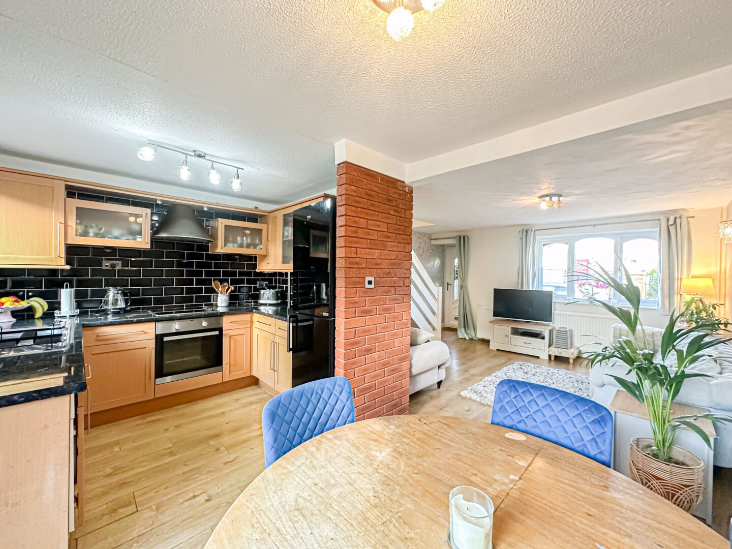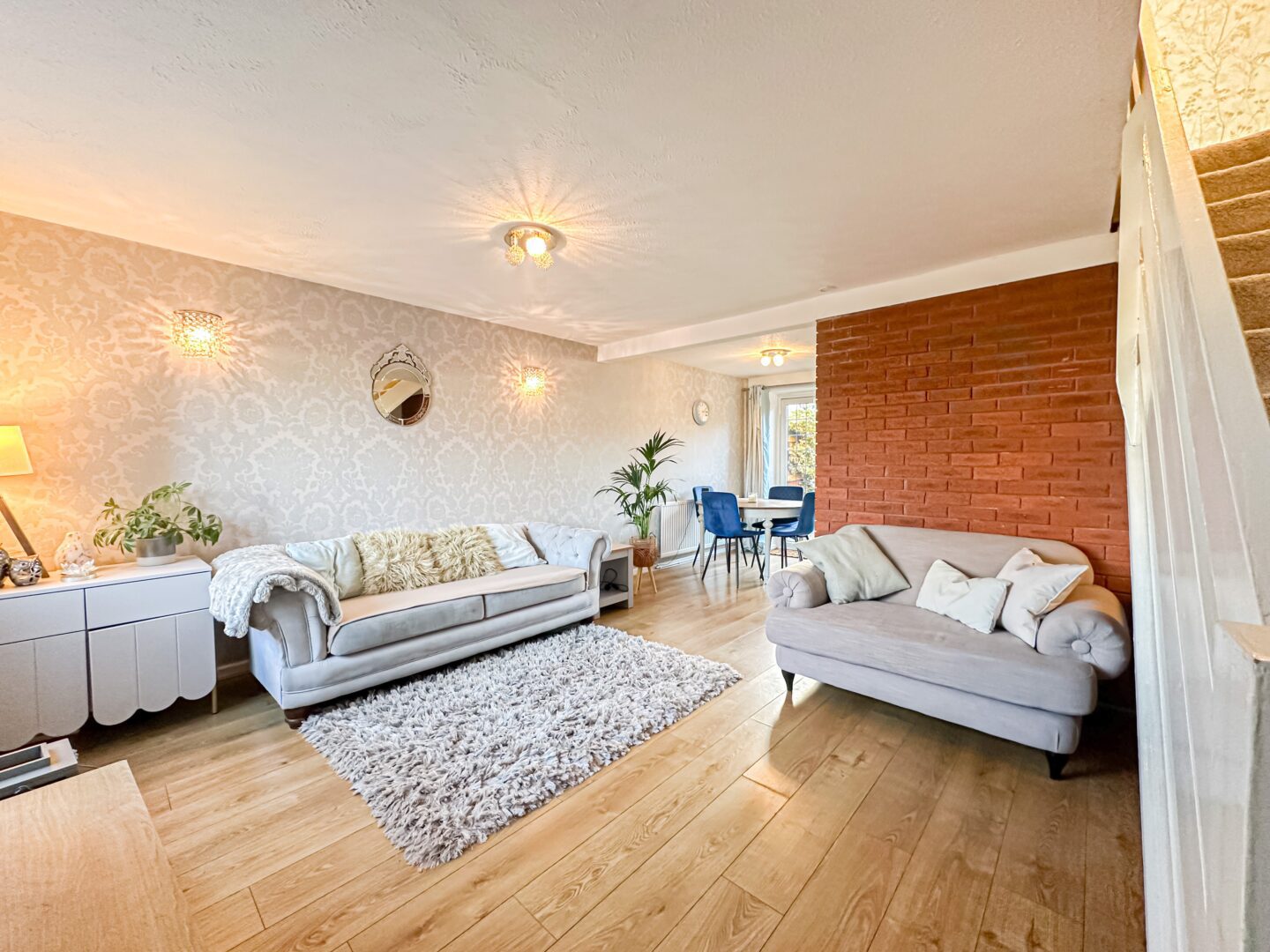 Upon entering the property, you are greeted by a bright and spacious lounge, which enjoys a tasteful décor and wood style flooring, flowing seamlessly through to a modern kitchen diner, creating a social open plan setting ideal for relaxing and enjoying mealtimes with family and friends. The kitchen is complete with a range of fitted base and wall units and plentiful worktop space, whilst the dining area enjoys a set of french doors which provide seamless access out to the garden and flood the space with natural light.