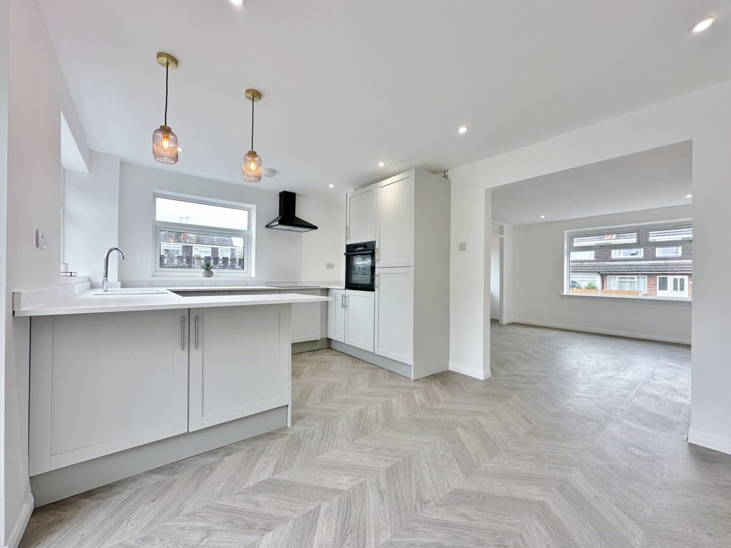 This impressive, fully renovated three bedroom semi detached property is situated on a generous corner plot in the highly sought after location of Pensby. Tastefully updated throughout, the home offers a perfect blend of modern living and traditional comfort, making it an ideal choice for families or first-time buyers alike. Finished to a high standard, the renovation includes a full re-wire, complete replastering and the installation of a stylish new kitchen and contemporary bathroom.