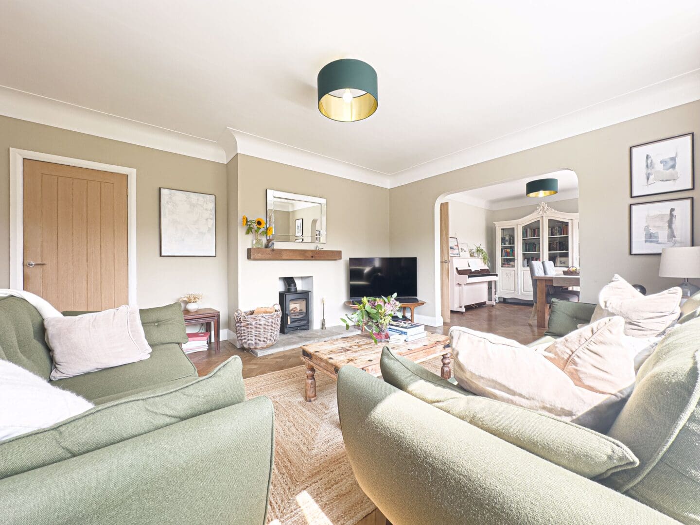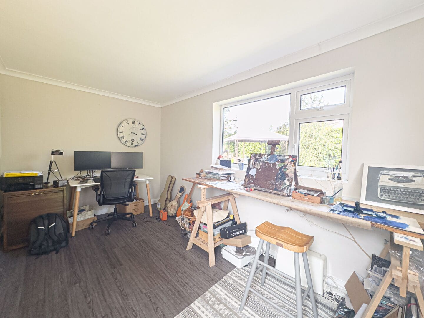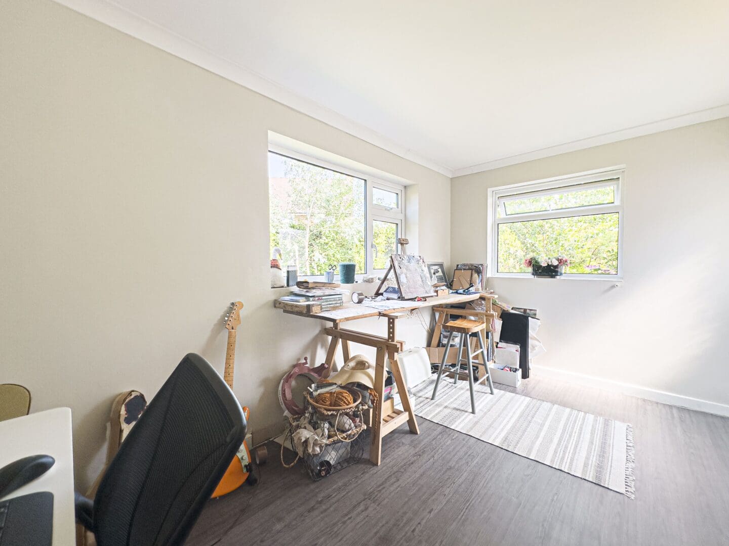 You are greeted into the residence by a tastefully decorated entrance hall which sets a precedent for the accommodation to follow, boasting attractive parquet style flooring which continues through to the spacious and beautifully finished family lounge. Flooded with natural light and featuring an eye-catching wood burner, this presents a welcoming space for relaxation, which exudes both a warm and stylish ambiance. The lounge flows seamlessly into a dining room where the tasteful presentation continues, offering a charming setting for enjoying family mealtimes and entertaining guests. Continuing through you will find a striking kitchen complete with a range of elegant fitted base and wall units, complementary worktops providing plentiful surface space, and a range of sleek integrated appliances, which also provides access into a well-equipped utility room. The first two generously sized double bedrooms are located to the ground floor, each immaculately presented and receiving plenty of daylight, with the primary room further benefitting from fitted wardrobes. Accompanying the bedrooms is a contemporary style three-piece family bathroom suite, and concluding the ground floor is a sizable studio room which offers potential for a wide variety of uses.