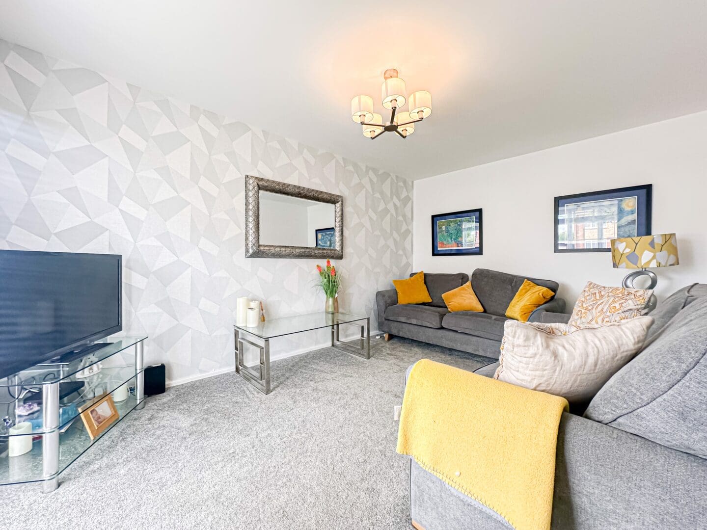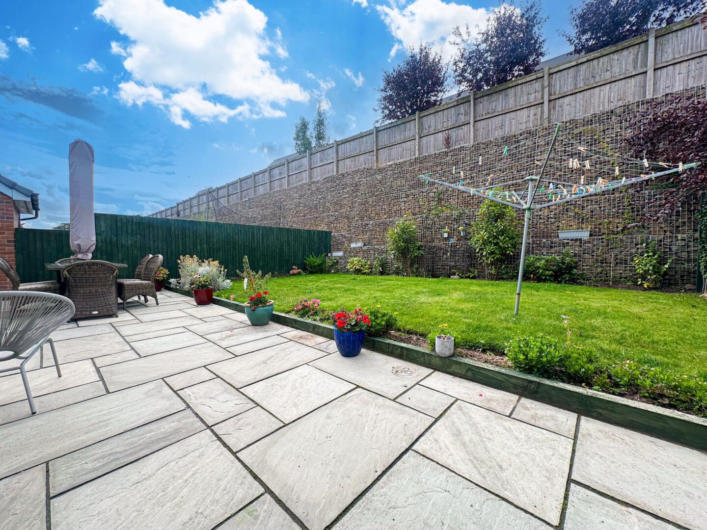 Externally, the property is further enhanced by a delightful rear garden which consists of a neatly maintained lawn and smartly flagged patio area, presenting an idyllic spot for enjoying al-fresco dining during the warmer months. To the front, a driveway provides off-road parking and a garage offers additional storage space.