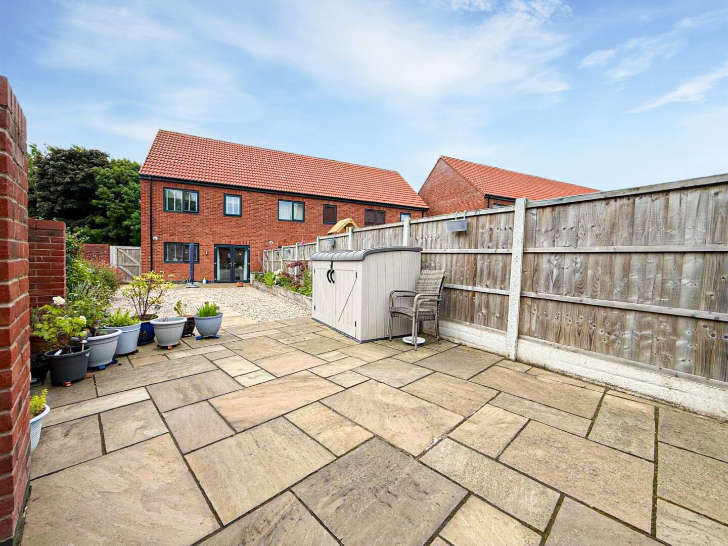 Externally, the property further benefits from a smartly flagged rear garden, which offers the perfect setting for al-fresco dining and entertaining, and to the front, a driveway provides off-road parking.