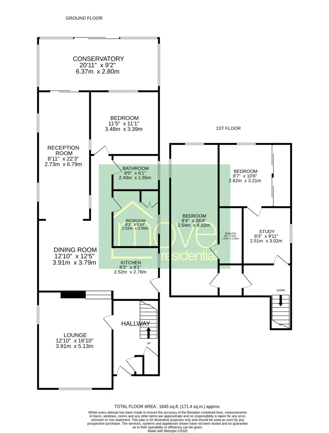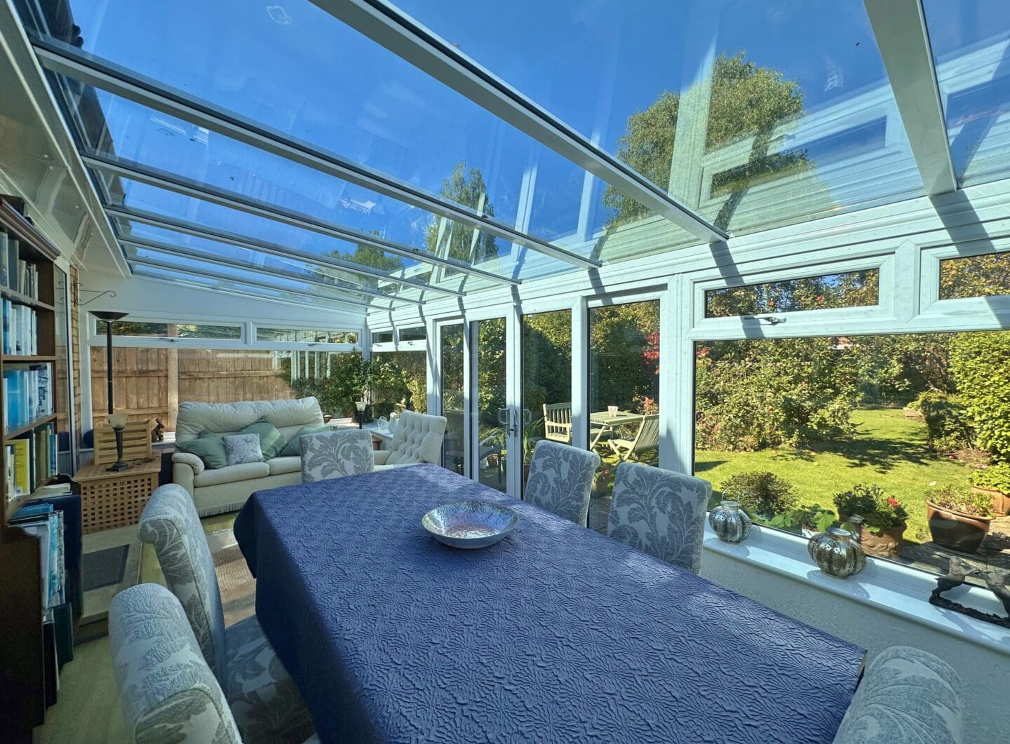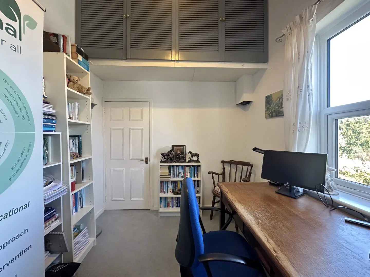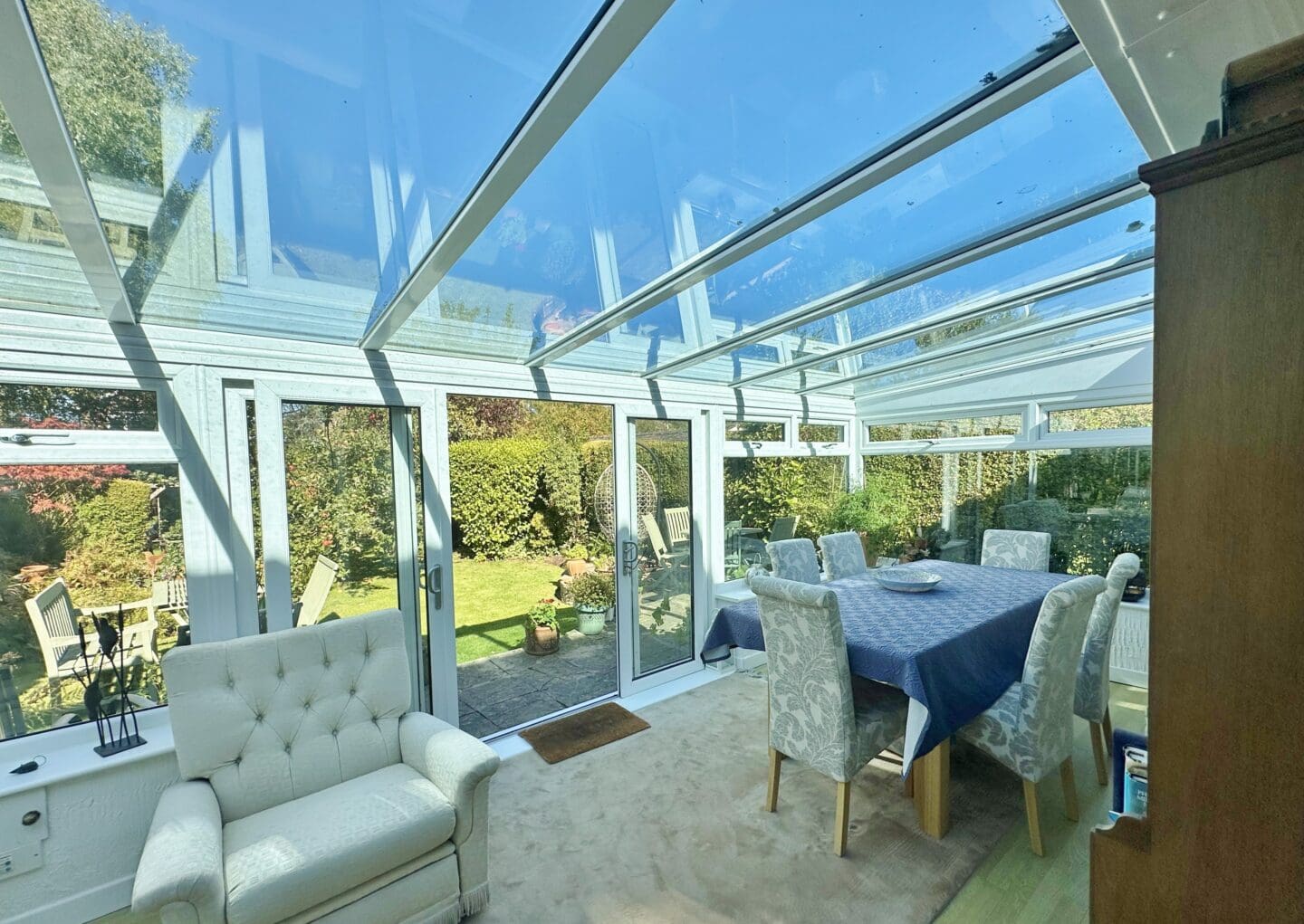 Upon entering, you are welcomed into a hallway that leads directly into the spacious lounge. This warm and inviting reception room, complete with a feature fireplace, exposed brick wall and double height ceiling, sets the tone for the rest of the home. From here, the space flows seamlessly into an open plan arrangement that combines the dining room, kitchen, and an additional reception area. This interconnected layout extends into a full width conservatory, where large windows frame wonderful views of the expansive gardens, allowing natural light to flood the interior and providing an ideal setting for family life and entertaining alike. The ground floor further benefits from two generously sized double bedrooms and a four piece family bathroom, offering both comfort and convenience. Upstairs, the property continues to impress with two additional bedrooms, a dedicated study, and a Jack and Jill en suite, making it well suited for growing families or those who require flexible living arrangements.