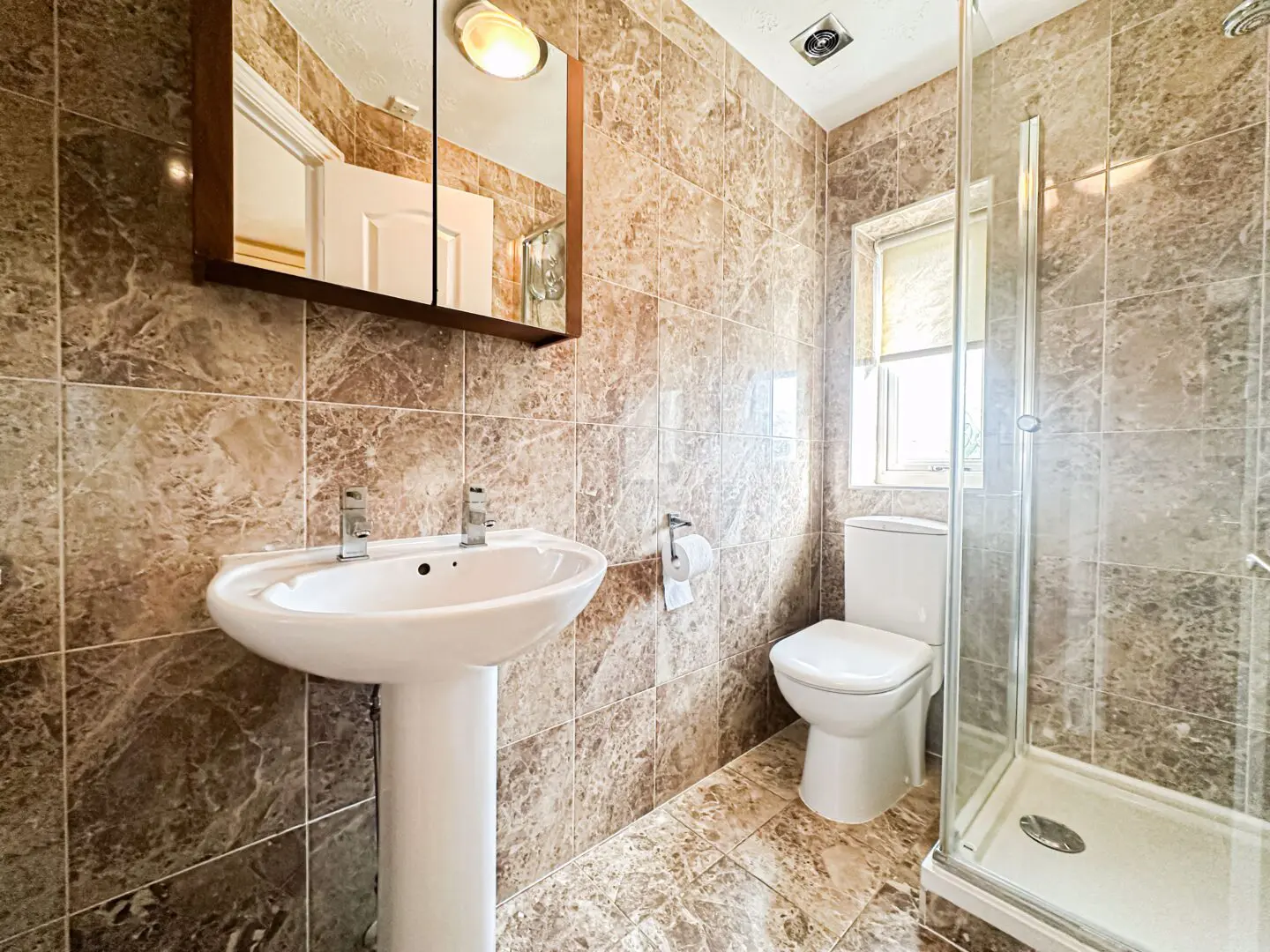 Ascending to the first floor, you will discover three generously sized double bedrooms and a well-proportioned single room, each receiving plenty of daylight and carpeted throughout. The master bedroom further benefits from fitted furniture and the added luxury of a contemporary style ensuite shower room, and serving the remaining bedrooms is a deluxe three-piece family bathroom suite.