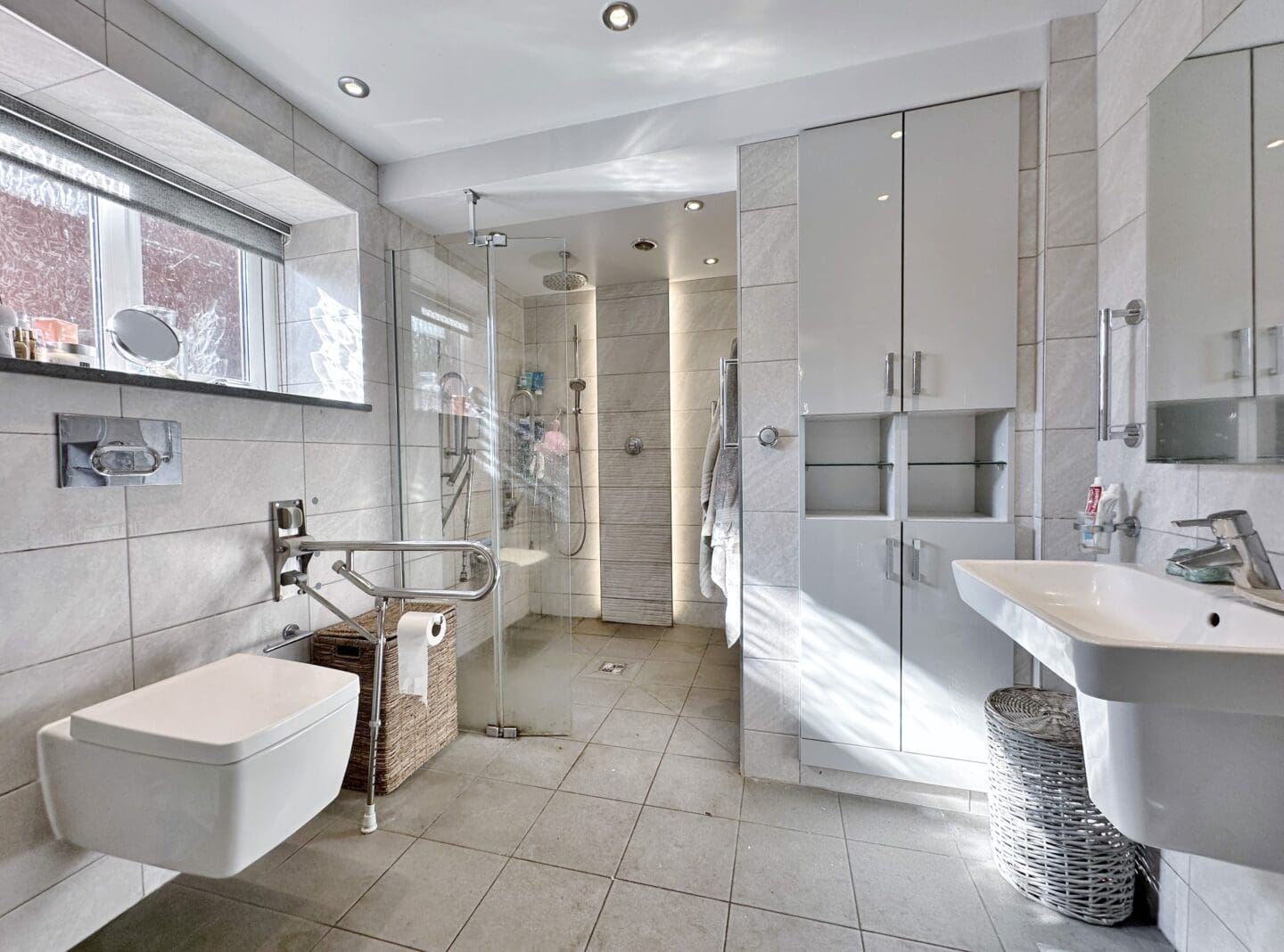 The ground floor features a welcoming hallway leading to a generous reception room, spacious lounge and an additional bedroom/reception room with ensuite, perfect for multi-generational living or guest accommodation. The modern kitchen/diner is ideal for family gatherings and connects seamlessly to a useful utility room. There is also an office/snug and a convenient W.C. Upstairs, the first floor offers five well proportioned bedrooms, including a primary bedroom with its own ensuite and access to a balcony which is shared with a further bedroom. A four piece family bathroom completes the upper level, providing comfort and flexibility for a growing family.