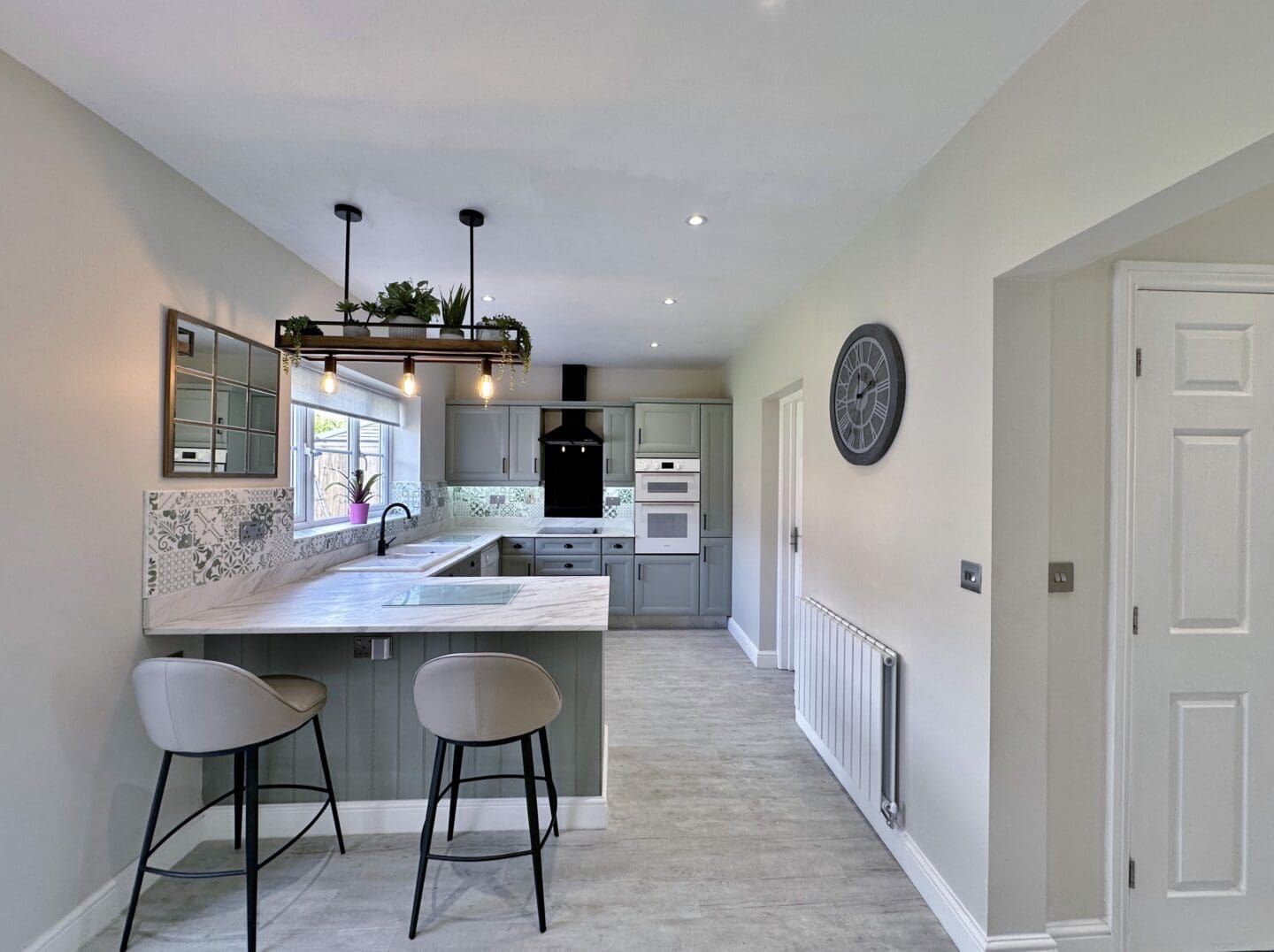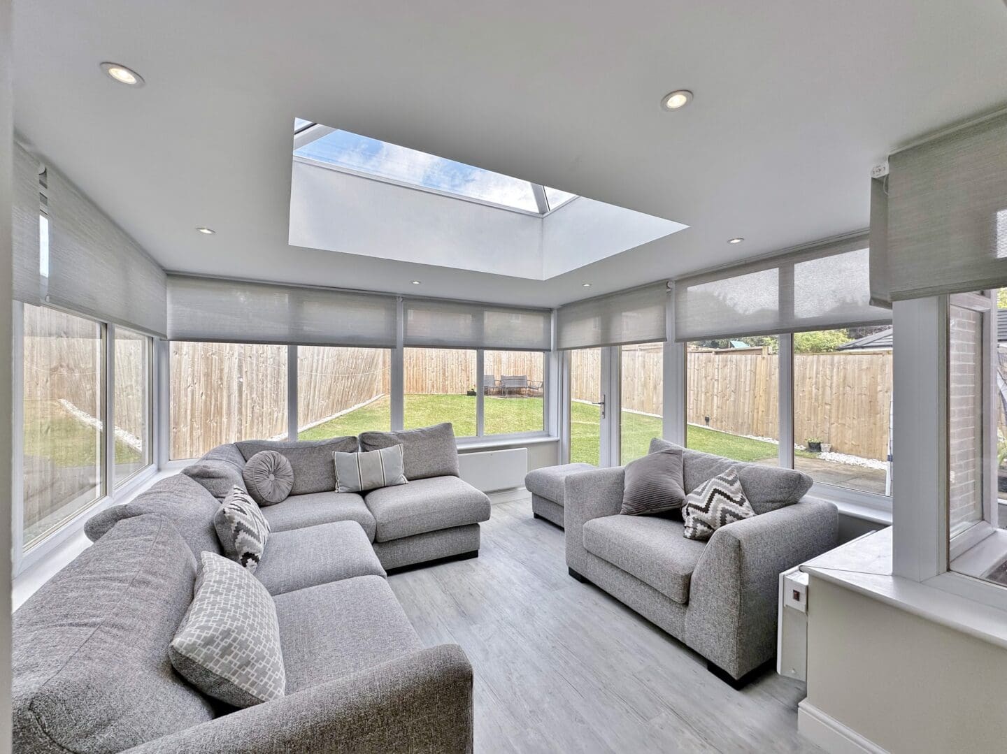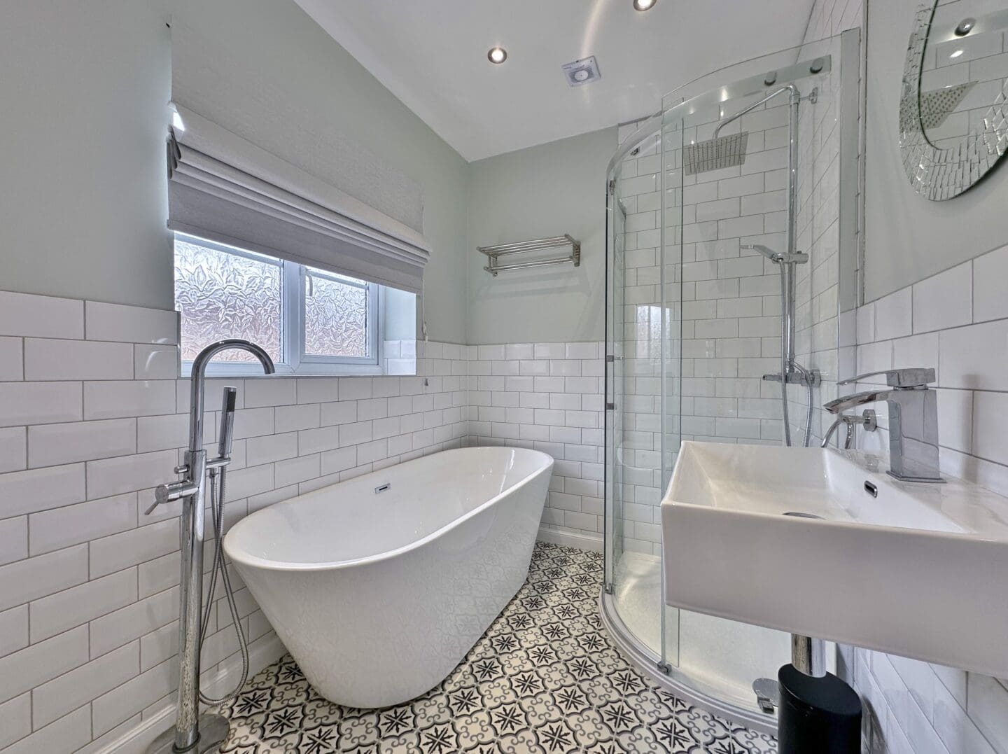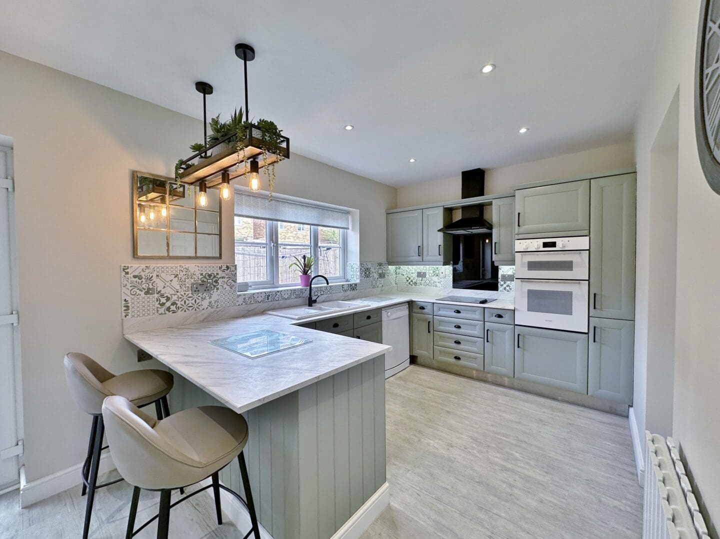 The spacious entrance hallway leads to a convenient downstairs W.C. and a beautifully styled bay fronted lounge, complete with a feature fireplace that adds charm and character. At the heart of the home lies a spectacular open plan kitchen and dining area, fitted with a bespoke range of wall and base units that seamlessly combine function and elegance. This space flows effortlessly into a bright orangery, topped with a striking sky lantern and offering lovely views over the rear garden, an ideal spot for entertaining or relaxing with family. Upstairs, the master bedroom benefits from a private en-suite shower room, while three further well proportioned bedrooms are served by a luxurious four piece family bathroom, featuring a free standing bath and a sleek walk in shower.