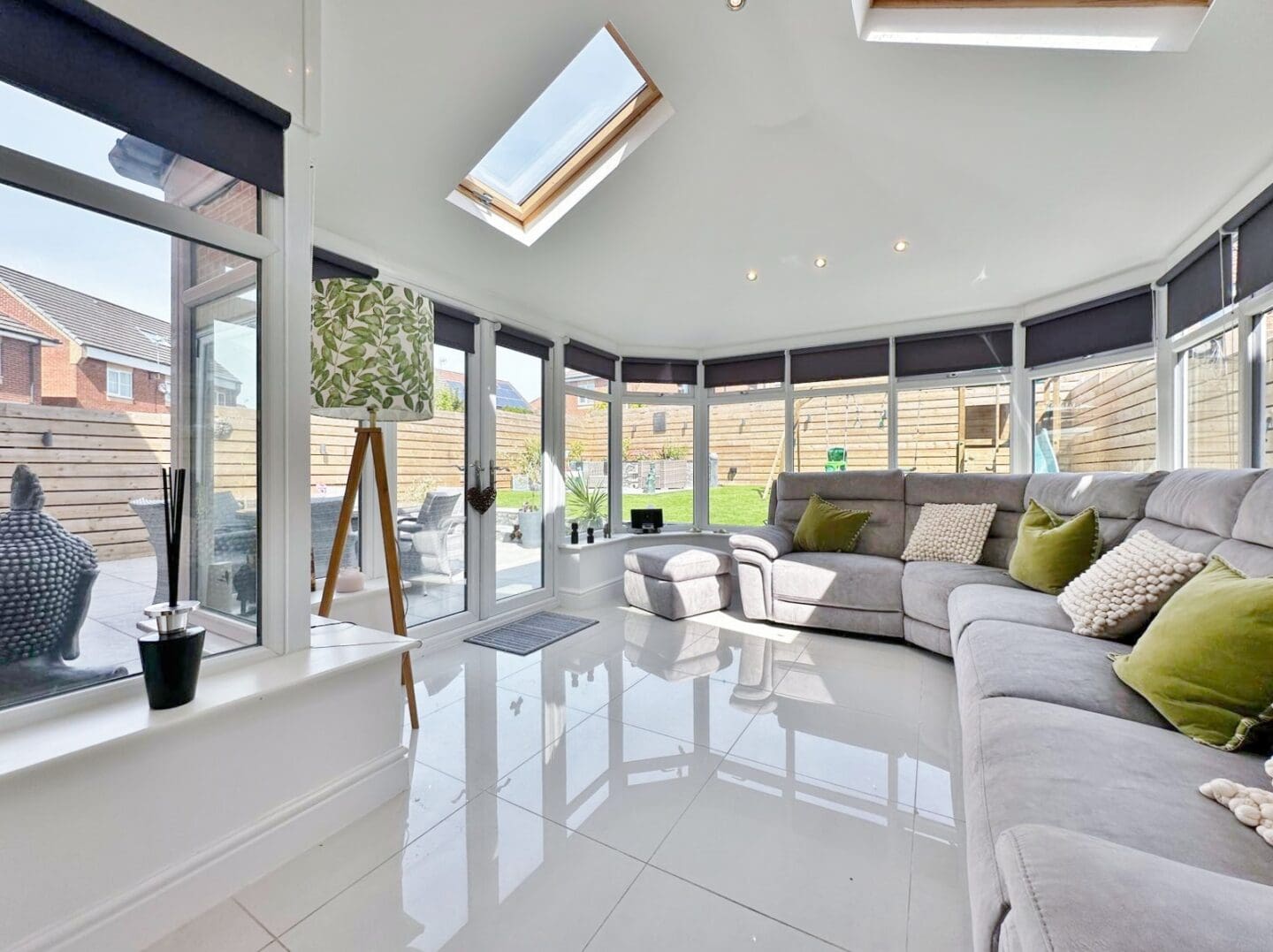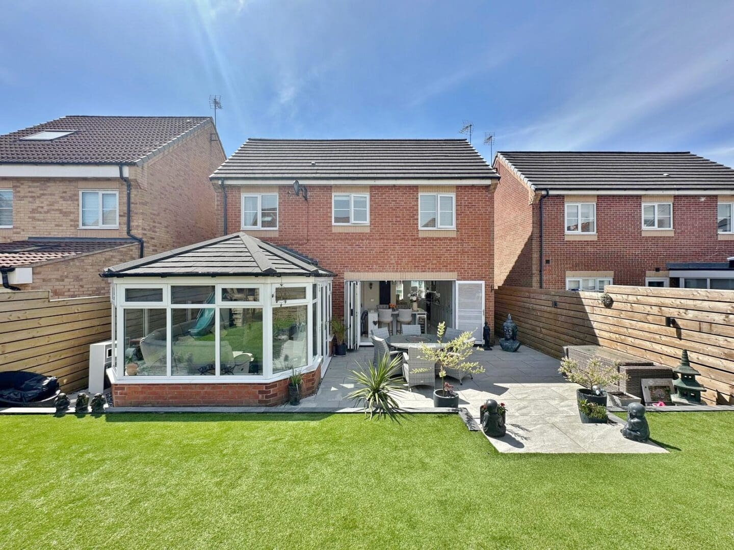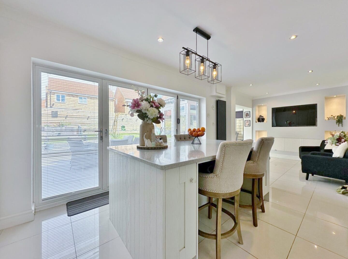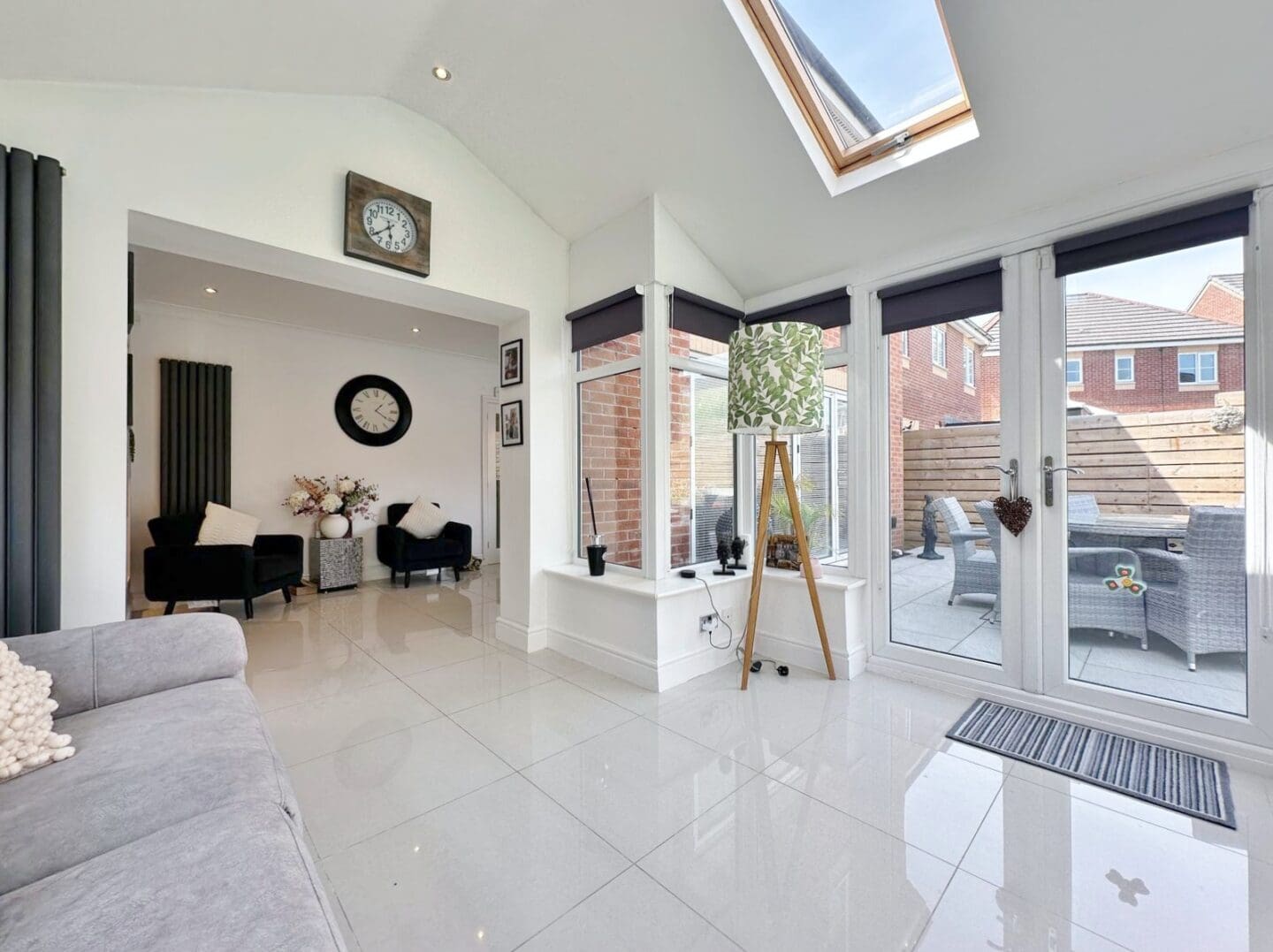 Finished to an outstanding standard throughout, in brief this impressive accommodation comprises a welcoming entrance hallway with stylish W.C off and a bay fronted lounge offering a cosy retreat with a newly installed bespoke media wall including a feature fireplace. At the heart of this home is a breathtaking open plan living kitchen diner, featuring a bespoke kitchen with full granite worktops, quality integrated appliances, and a large island. The lounge area boasts a further media wall, this space flows effortlessly into the conservatory, complete with a Thermolite roof and Velux windows, creating a light-filled environment perfect for entertaining or relaxing. Bi-fold doors open out onto a beautifully landscaped rear garden, featuring a decked area and generous lawn, ideal for summer gatherings.