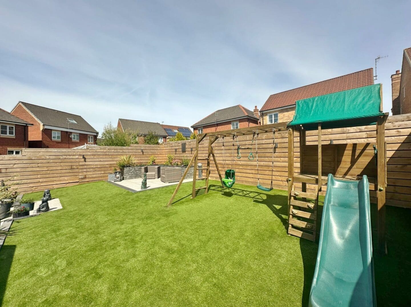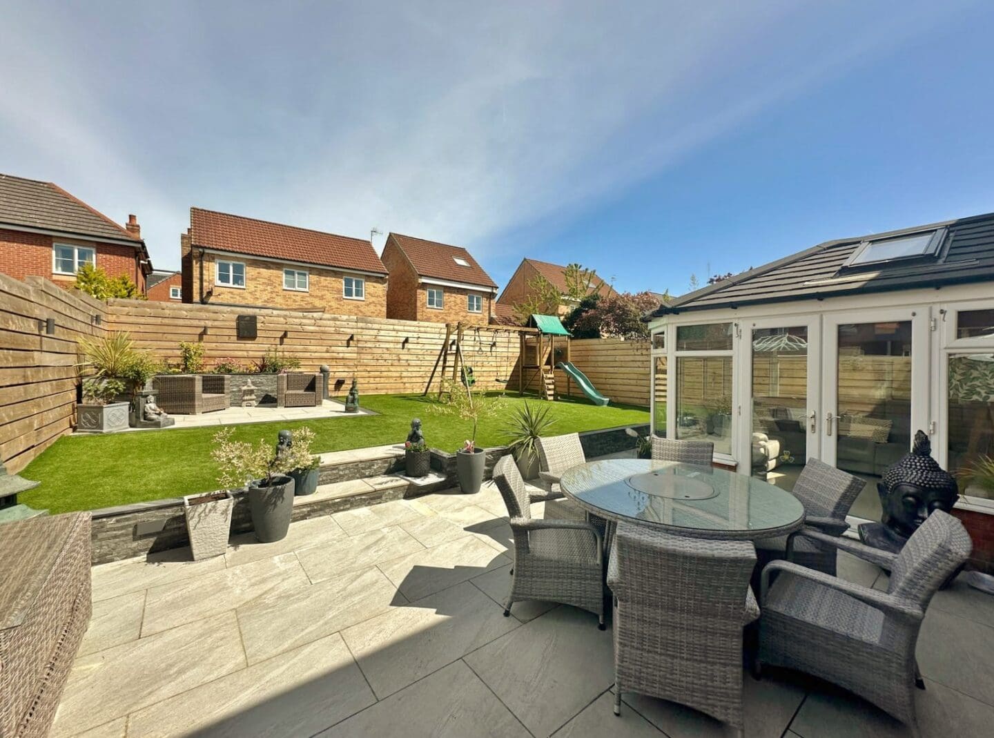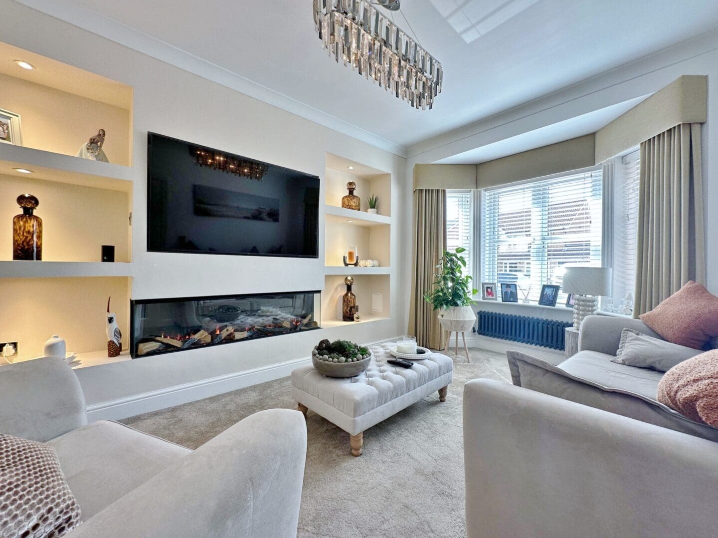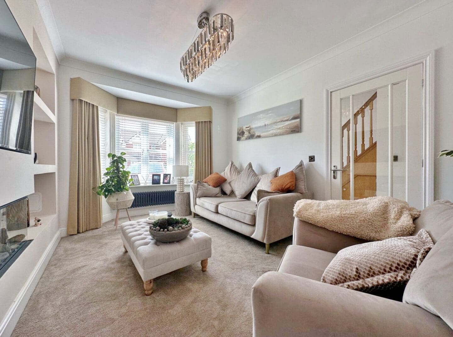 Finished to an outstanding standard throughout, in brief this impressive accommodation comprises a welcoming entrance hallway with stylish W.C off and a bay fronted lounge offering a cosy retreat with a newly installed bespoke media wall including a feature fireplace. At the heart of this home is a breathtaking open plan living kitchen diner, featuring a bespoke kitchen with full granite worktops, quality integrated appliances, and a large island. The lounge area boasts a further media wall, this space flows effortlessly into the conservatory, complete with a Thermolite roof and Velux windows, creating a light-filled environment perfect for entertaining or relaxing. Bi-fold doors open out onto a beautifully landscaped rear garden, featuring a decked area and generous lawn, ideal for summer gatherings.