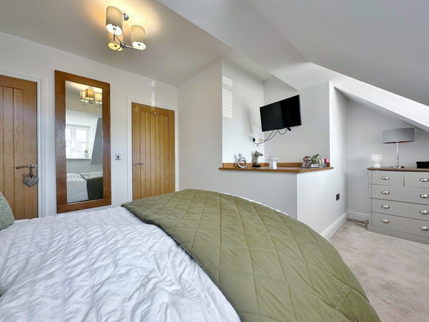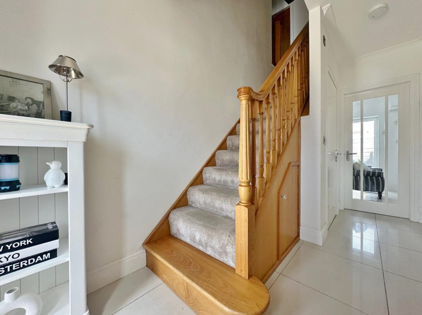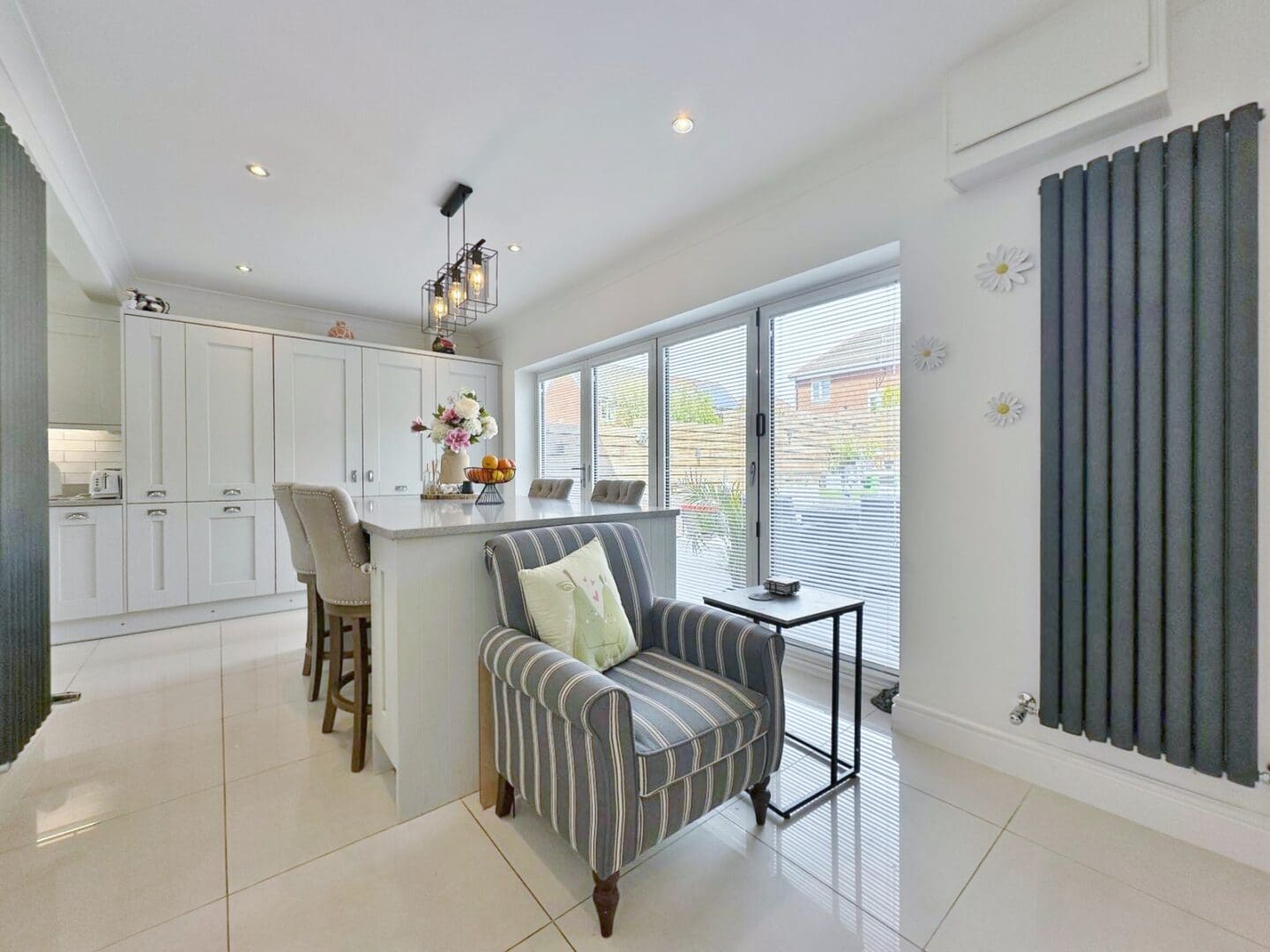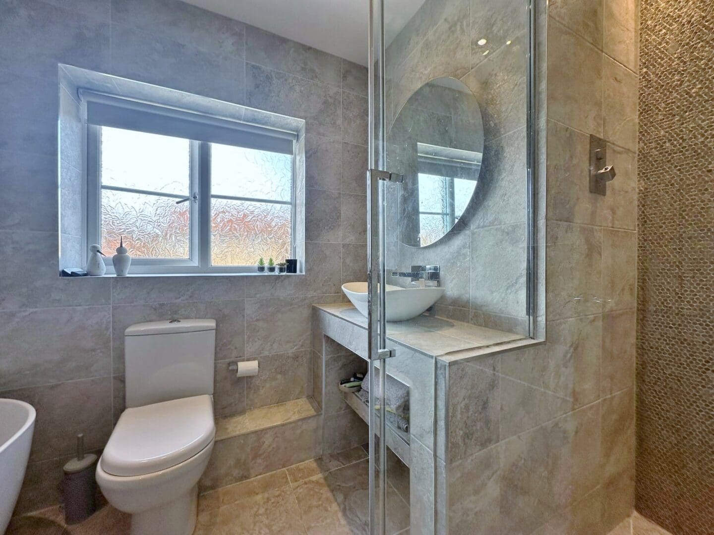 Upstairs, four generously sized bedrooms await, including a luxurious master with en-suite. The main bathroom is nothing short of spectacular, featuring a freestanding bath, Porcelanosa designer tiles, underfloor heating, a waterfall shower, and even a Waterview wall-mounted TV with Fire Stick. Additional highlights include a recently installed Worcester Bosch boiler and designer radiators, a solid oak staircase, FENSA-certified replacement windows and doors, plush new carpets, cavity wall insulation, and a sleek three-car resin-bound driveway edged with sandstone brick.