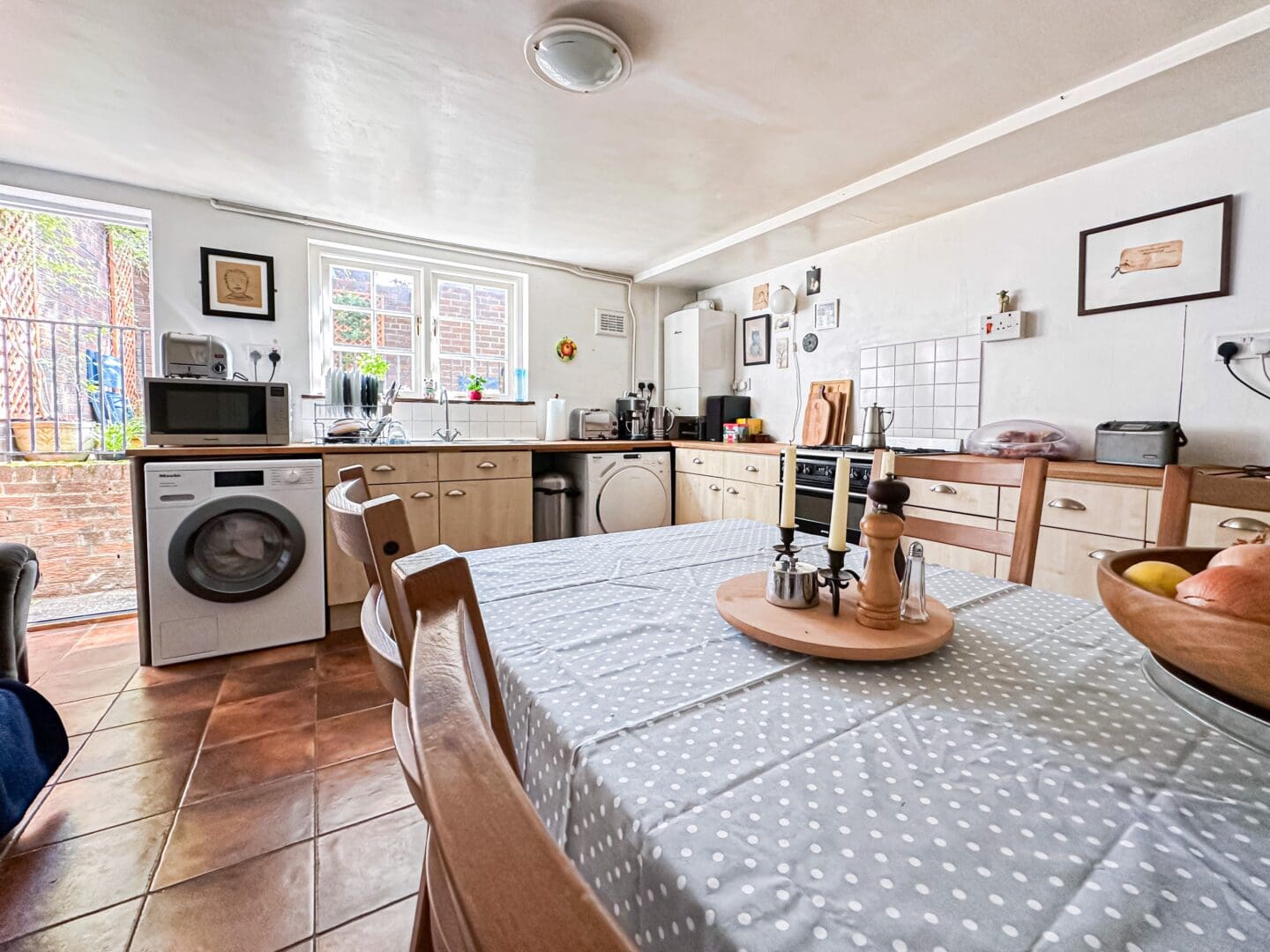 The lower ground level is home to the substantial kitchen complete with fitted units, plentiful worktop space, and ample room to accommodate a dining table, presenting a social space for cooking in company and sharing mealtimes. An airy and well-presented study, perfect for those who work remotely, concludes this floor.