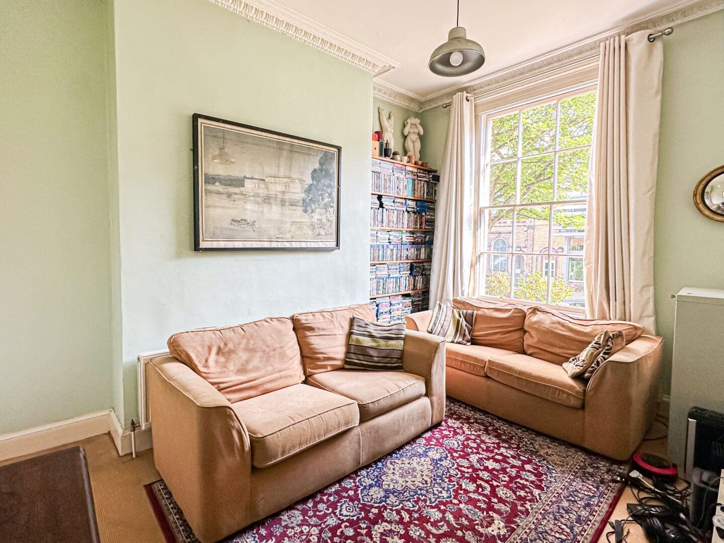 Upon entering the residence, you are greeted by an inviting entrance hall which leads through to a welcoming sitting room, awash with natural light courtesy of a tall sash window, presenting a tranquil space to relax and unwind. This is followed by a second bright and spacious reception room, which has been finished in a tasteful décor complementing the wood flooring and feature fireplace, offering a refined setting for entertaining guests.