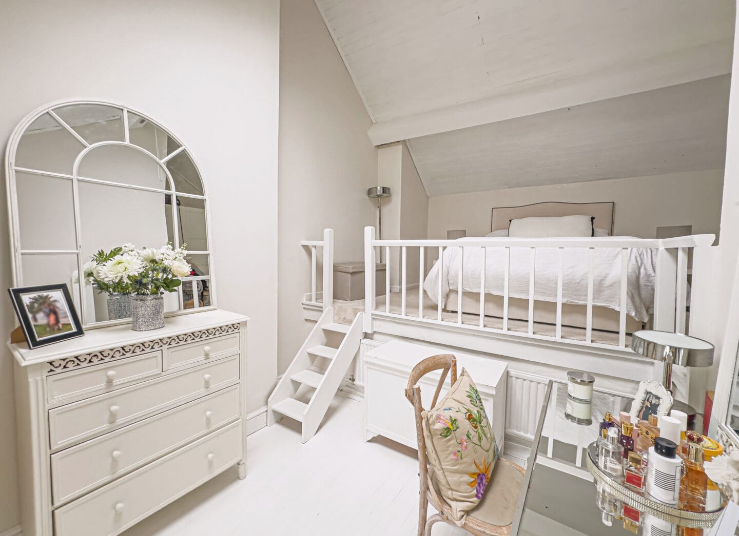 On the first floor, you will find two substantial double bedrooms, each offering excellent proportions and light filled spaces that feel both restful and refined. A contemporary four piece bathroom serves this level, featuring a freestanding bath and high quality fittings, adding to the luxurious feel of the home. A truly unique feature of the property is the mezzanine bedroom on the second floor, an expansive, open plan suite with a comfortable seating area, W.C., and a raised sleeping space. Perfect as a master retreat, guest suite, or creative studio, this floor offers a wonderful sense of privacy and sophistication.